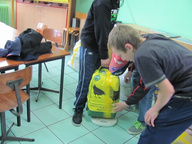 Dziekuję wszystkim uczniom i nauczycielom, którzy włączyli się bardzo aktywnie w zbiórkę, a także dyżurnym, którzy kontrolowali poprawność ważenia i skrupulatnie notowali każdy przynieiony kilogram. Szczególne podziękowania należą się rodzicom, którzy jak zwykle chętnie włączyli się w tą akcję i pomagali szczególnie w transporcie.