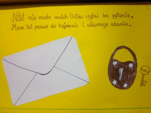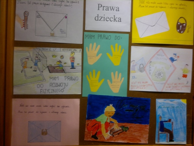 W dniu 10 grudnia uczniowie z klas IV-VI zaprezentowali swoje prace plastyczne. Było to podsumowanie projektu edukacyjnego "Dziecko ma swoje prawa". Projekt realizowano w ramach pilotażowego programu "Szkoła demokracji- szkoła samorządności".