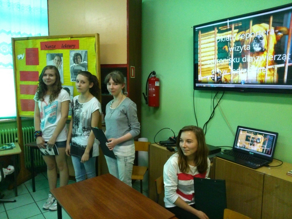 do realizacji projektu pt: „Okiem reportera – wizyta w Schronisku dla Zwierząt w Jędrzejewie”. Przedstawiły one uczniom ciekawy reportaż, który zawierał również te historie psów,