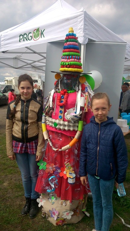 Do jej wykonania dziewczynki użyły lekkich odpadów nadających się do recyklingu, takich jak: kartony, gazety, wytłoczki do jajek, butelki PET, kolorowy papier, nakrętki, stare ubrania.