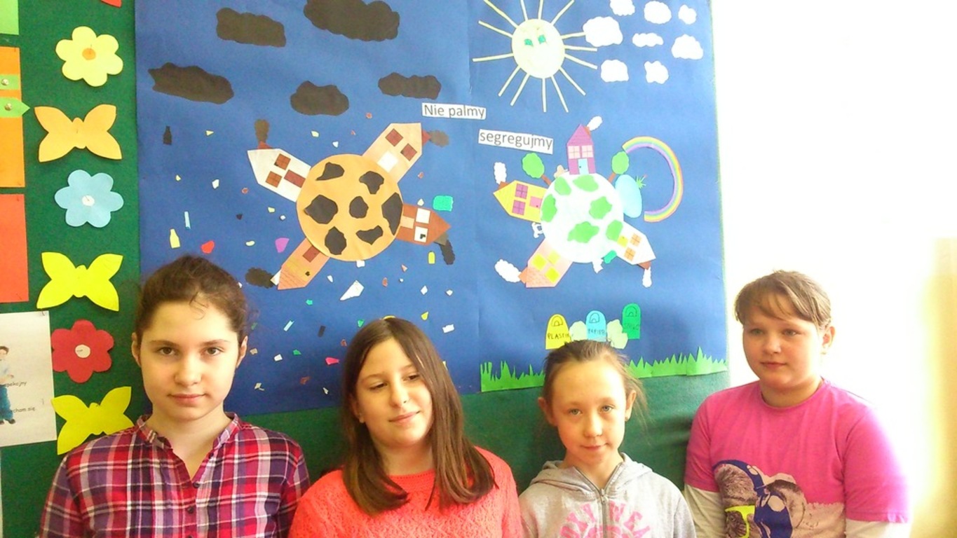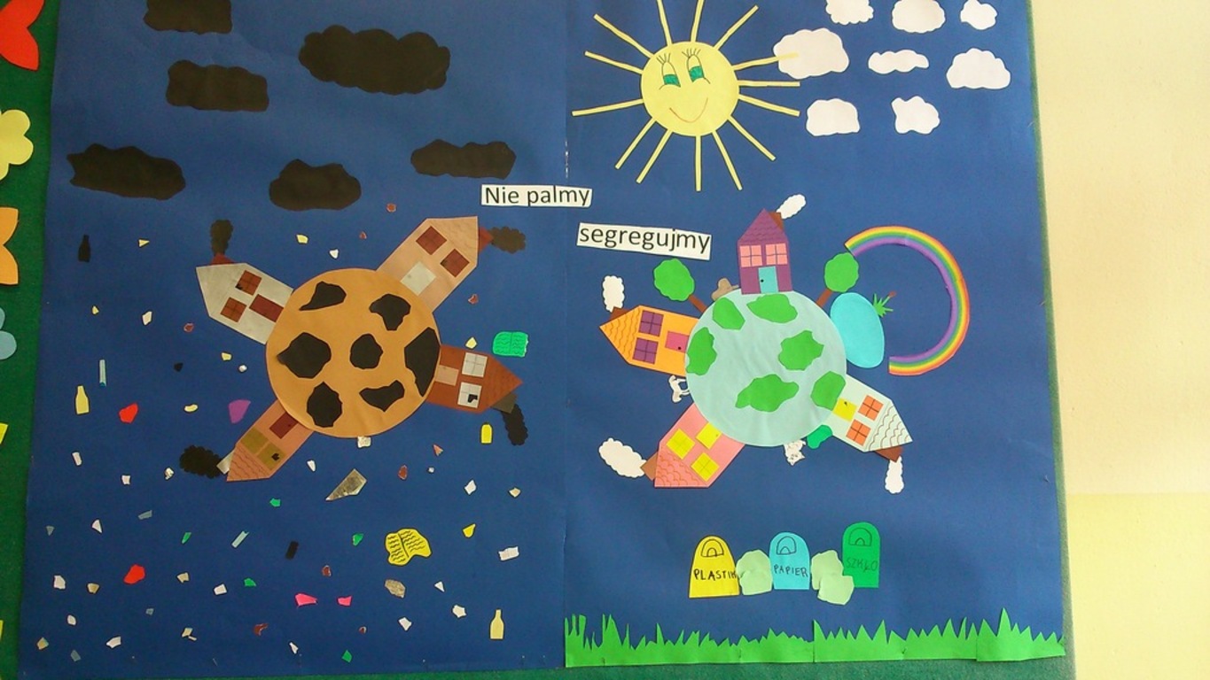 Pierwsze zadanie konkursowe polegało na przygotowaniu instalacji lub gazetki szkolnej pod hasłem „NIE PALMY!- SEGREUJMY!”. Wszyscy uczniowie naszej szkoły przystąpili do realizacji tego zadania w zespołach czteroosobowych. Szkolne jury wybrało najlepszą pracę a zespół autorski przeszedł do realizacji zadania drugiego.