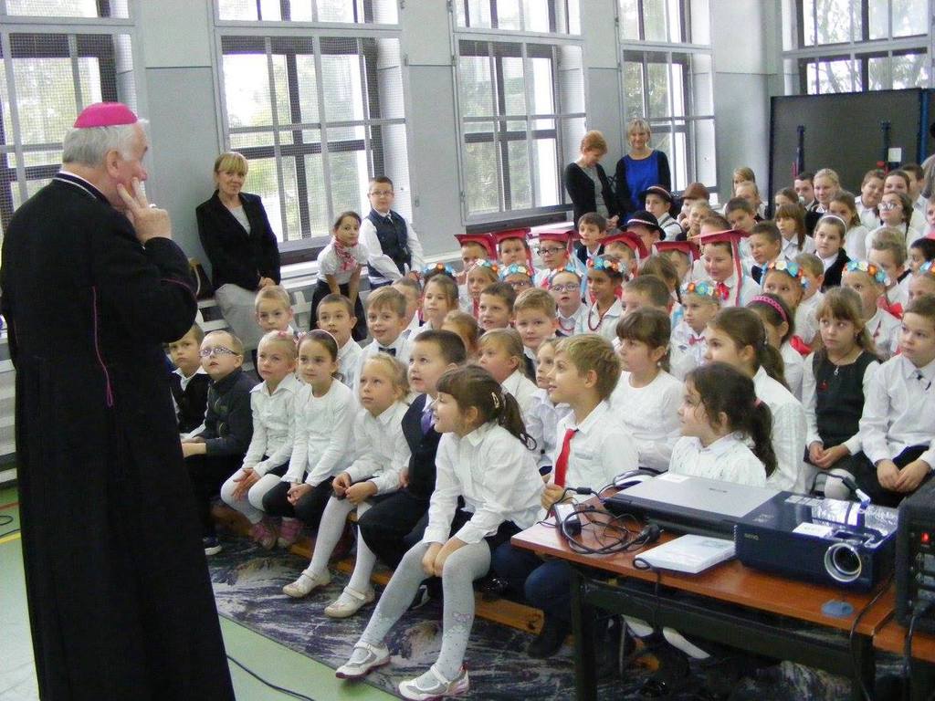 ,,OTO JEST DZIEŃ, KTÓRY DAŁ NAM PAN". SŁOWAMI TEJ PIEŚNI UCZNIOWIE NASZEJ SZKOŁY POWITALI GOŚCIA JEGO EKSCELENCJĘ KSIĘDZA BISKUPA ZDZISŁAWA FORTUNIAKA.