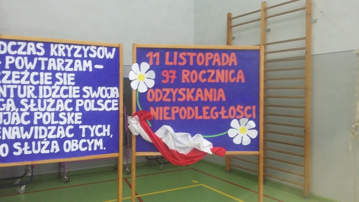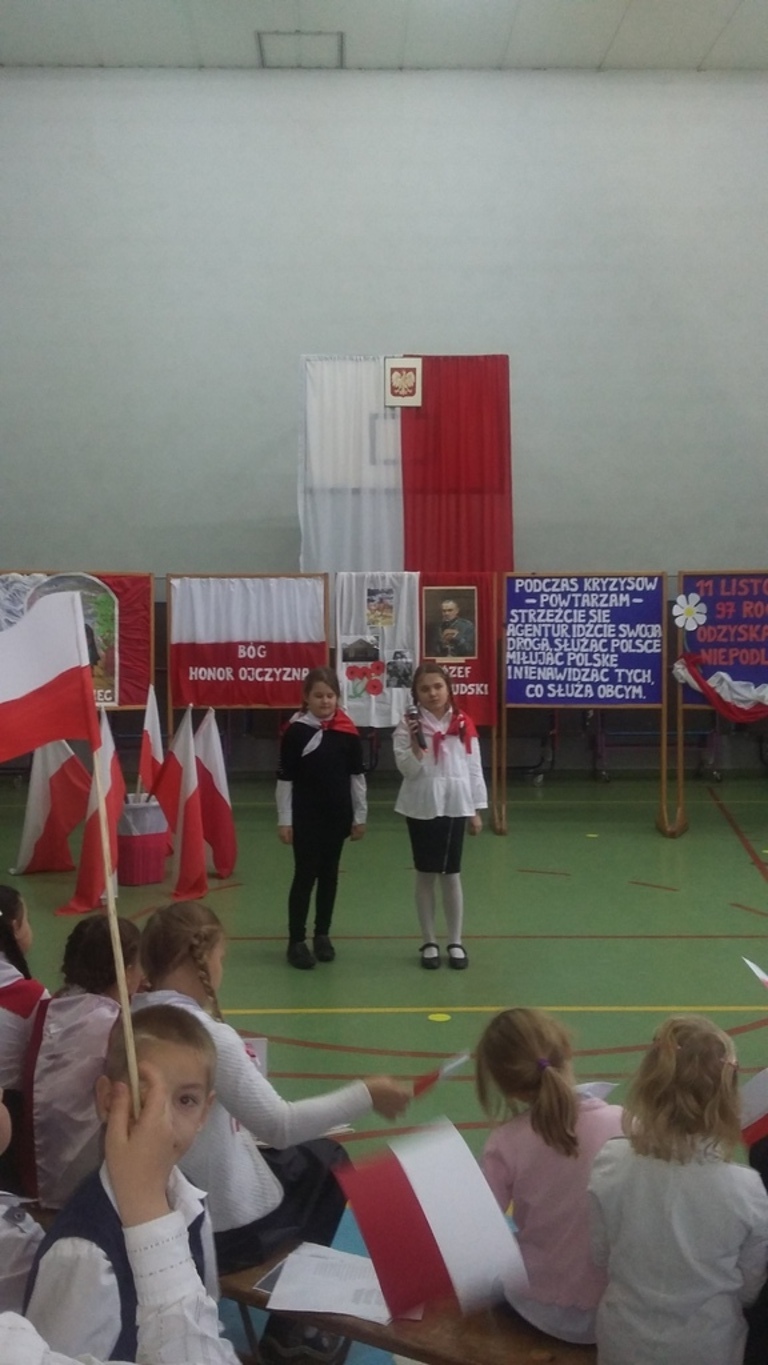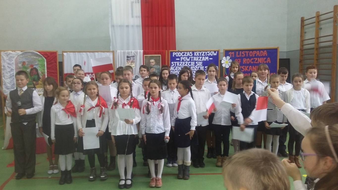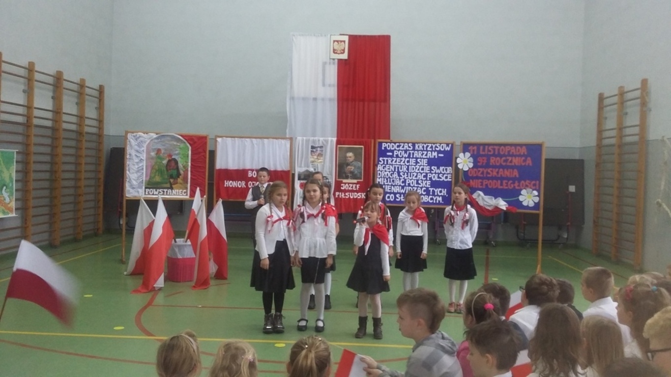 10 listopada w naszej szkole odbył się poranek poświęcony Narodowemu Świętu Niepodległości. W uroczystości udział wzięła cała społeczność szkolna. Towarzyszyły nam biało-czerwone barwy. Śpiewaliśmy pieśni legionowe, hymny i piosenki żołnierskie. Przedstawiliśmy krótką lekcję historii na temat okresu zaborów i odzyskania niepodległości. Przybliżyliśmy postać naczelnego wodza- Józefa Piłsudskiego, który jest symbolem walki Polaków o odzyskanie niepodległej ojczyzny.