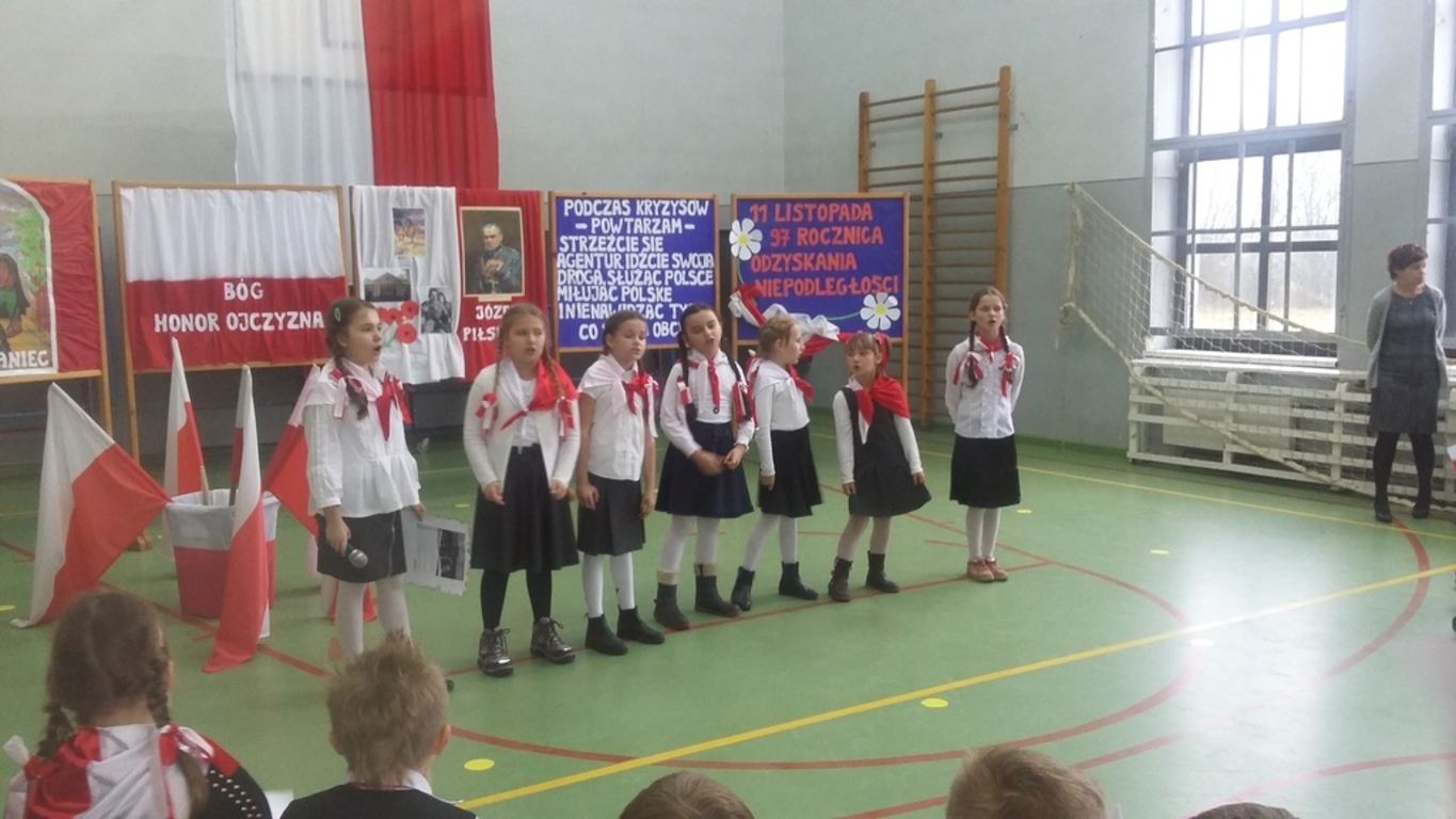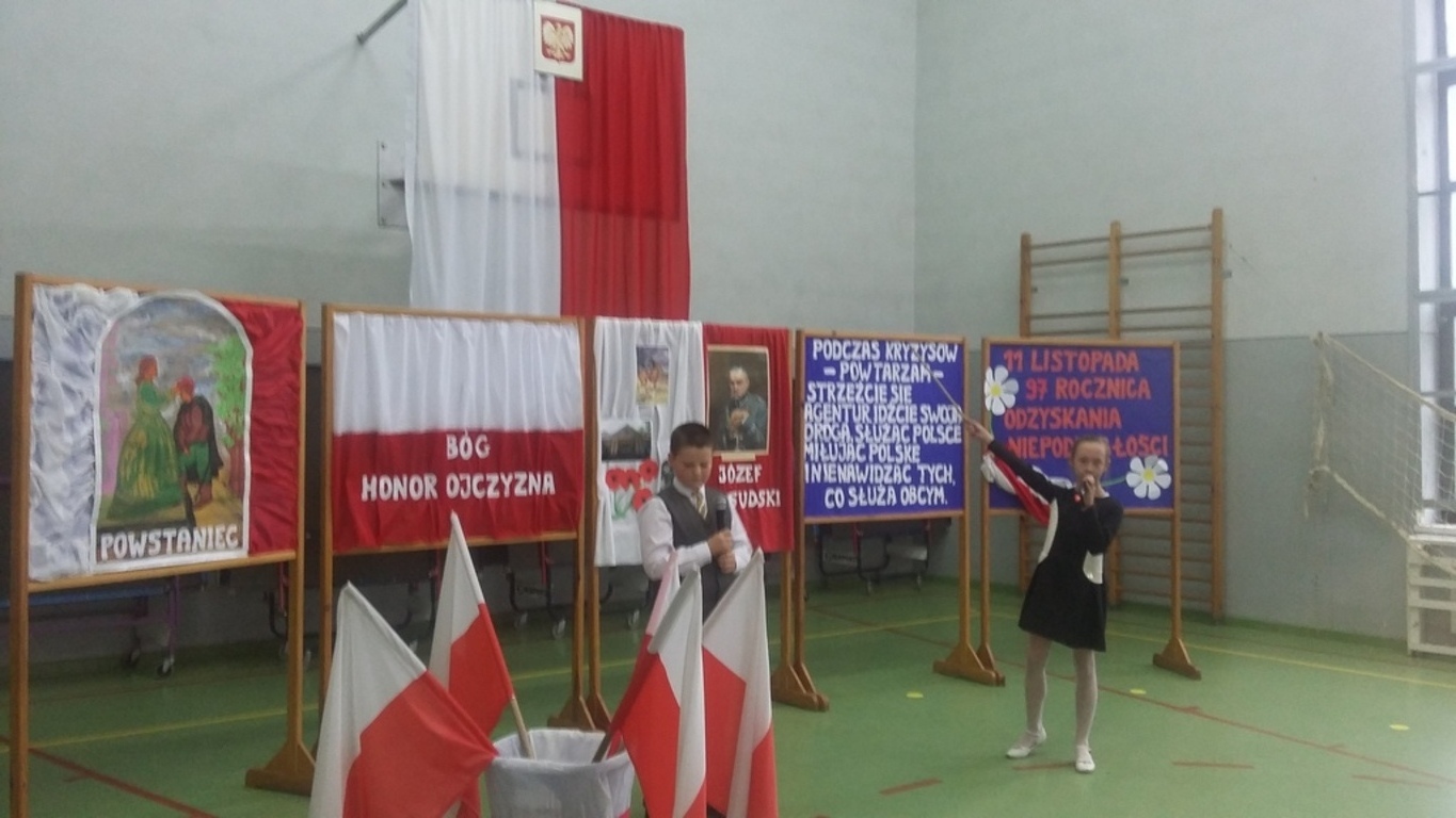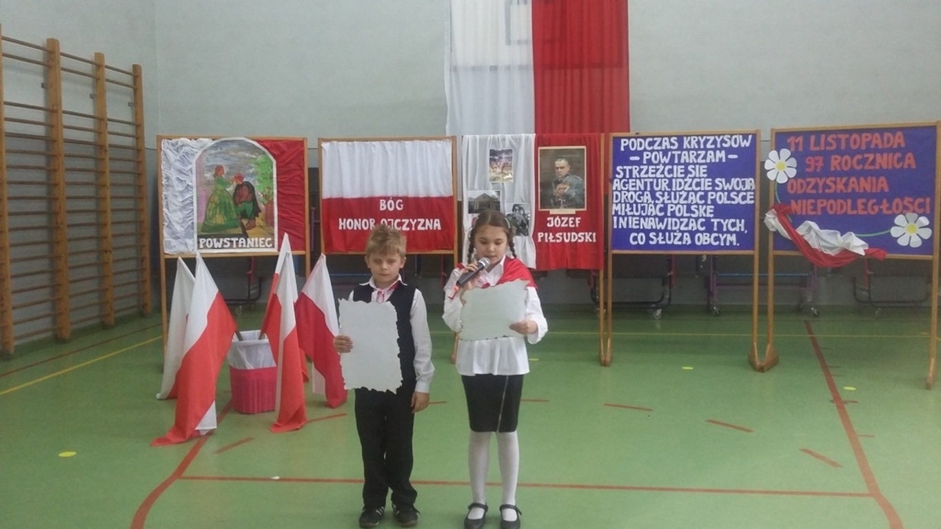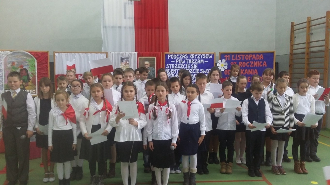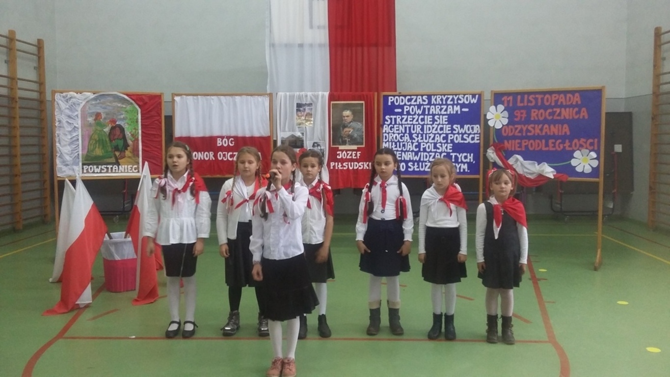 10 listopada w naszej szkole odbył się poranek poświęcony Narodowemu Świętu Niepodległości. W uroczystości udział wzięła cała społeczność szkolna. Towarzyszyły nam biało-czerwone barwy. Śpiewaliśmy pieśni legionowe, hymny i piosenki żołnierskie. Przedstawiliśmy krótką lekcję historii na temat okresu zaborów i odzyskania niepodległości. Przybliżyliśmy postać naczelnego wodza- Józefa Piłsudskiego, który jest symbolem walki Polaków o odzyskanie niepodległej ojczyzny.