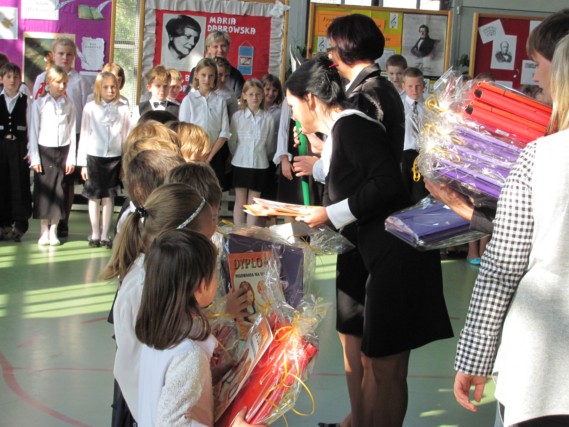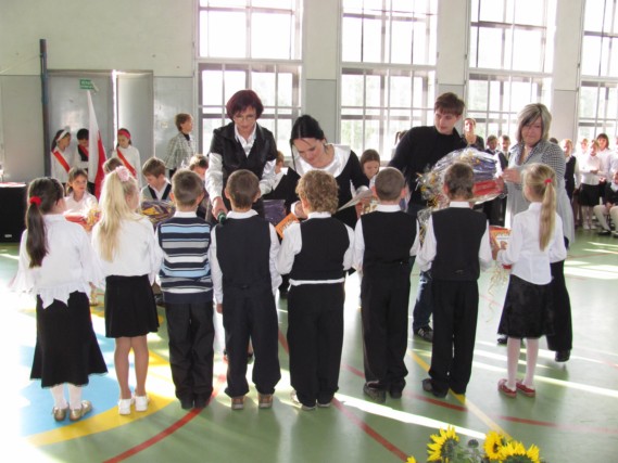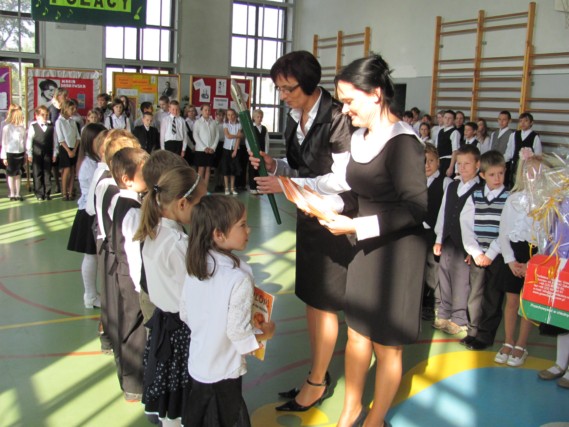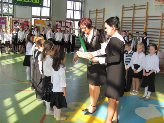 Klasa I zostala uroczyście przyjeta do społecznosci uczniowskiej naszej szkoły. dzieci ubrane odświętnie złożyły ślubowanie, a pani dyrektor przeprowadziła pasowanie. Każdy uczeń otrzymał akt pasowania i upominek przygotowany przez Radę Rodziców. Na koniec uczniowie klasy I popisali się wiadomościami o Marii Dąbrowskiej oraz przedstawili część artystyczną przygotowaną na Święto Szkoły. Był to dzień pełen wrażeń, wzniosłości i dumy.
