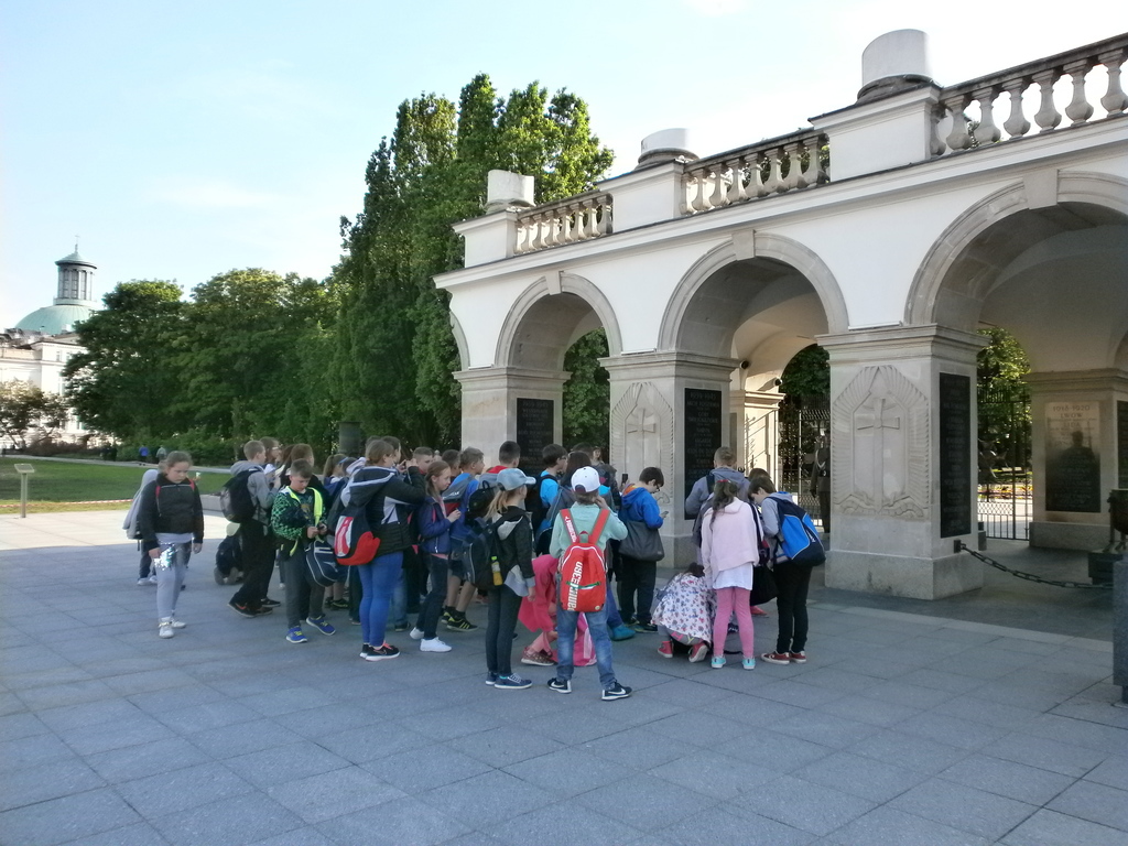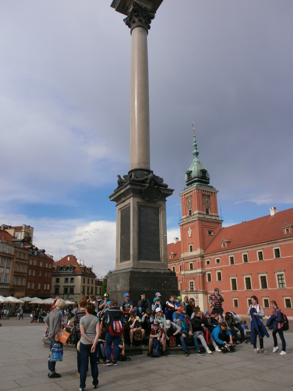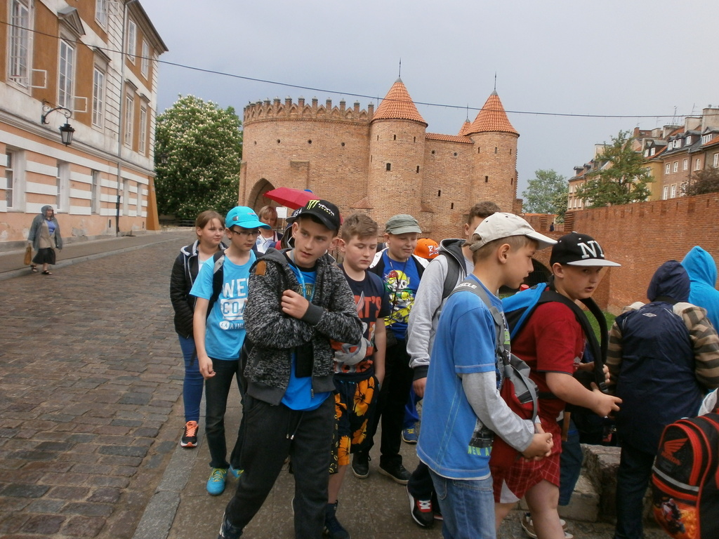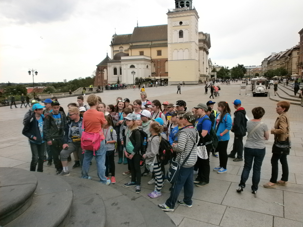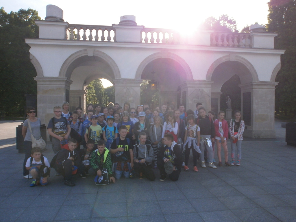 Wędrówkę po mieście rozpoczęliśmy od Placu Zamkowego i Zamku Królewskiego- niegdyś rezydencji królów, obecnie muzeum. Następnie udaliśmy się na Rynek Starego Miasta, gdzie podziwialiśmy kamienice oraz pomnik Syrenki, który stoi w centrum Rynku. Jest on otoczony fontanną, przy której można ochłodzić się w gorące dni. Potem wąskimi uliczkami dotarliśmy do średniowiecznych murów obronnych i najciekawszego ich fragmentu – Barbakanu oraz Pomnika Małego Powstańca. Po drodze zwiedziliśmy również Katedrę Św. Jana i Plac Kanonia, którego nazwa nawiązuje do mieszkających w tamtejszych XVII - wiecznych kamieniczkach księży kanoników. Na Kanonii znajduje się najwęższy dom w Warszawie. Następnym punktem wycieczki był Pałac Prezydencki. Zmęczeni, ale spragnieni kolejnych wrażeń udaliśmy się na Plac Marszałka Józefa Piłsudskiego, gdzie znajduje się Grób Nieznanego Żołnierza – symboliczna mogiła upamiętniająca bezimiennych żołnierzy poległych w obronie ojczyzny. Mieliśmy ogromne szczęście, ponieważ mogliśmy zobaczyć zmianę warty. Oczywiście nie mogło zabraknąć pamiątkowych zdjęć w Parku Saskim.