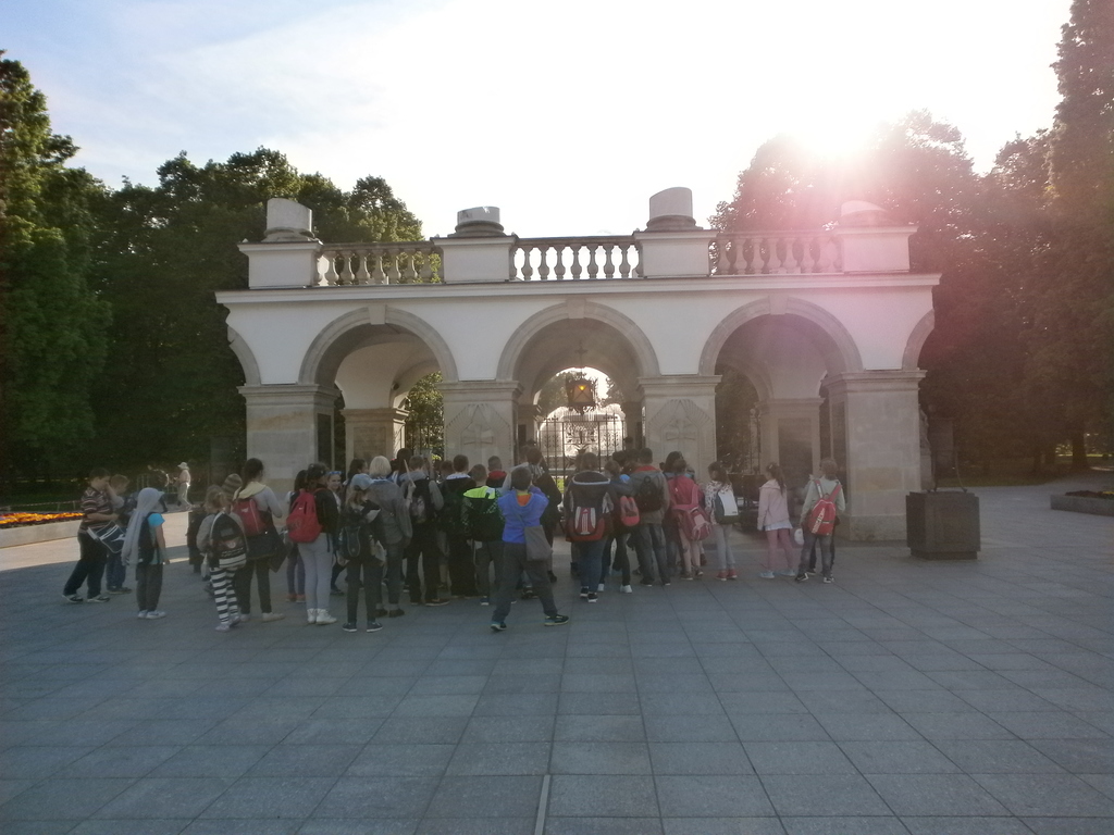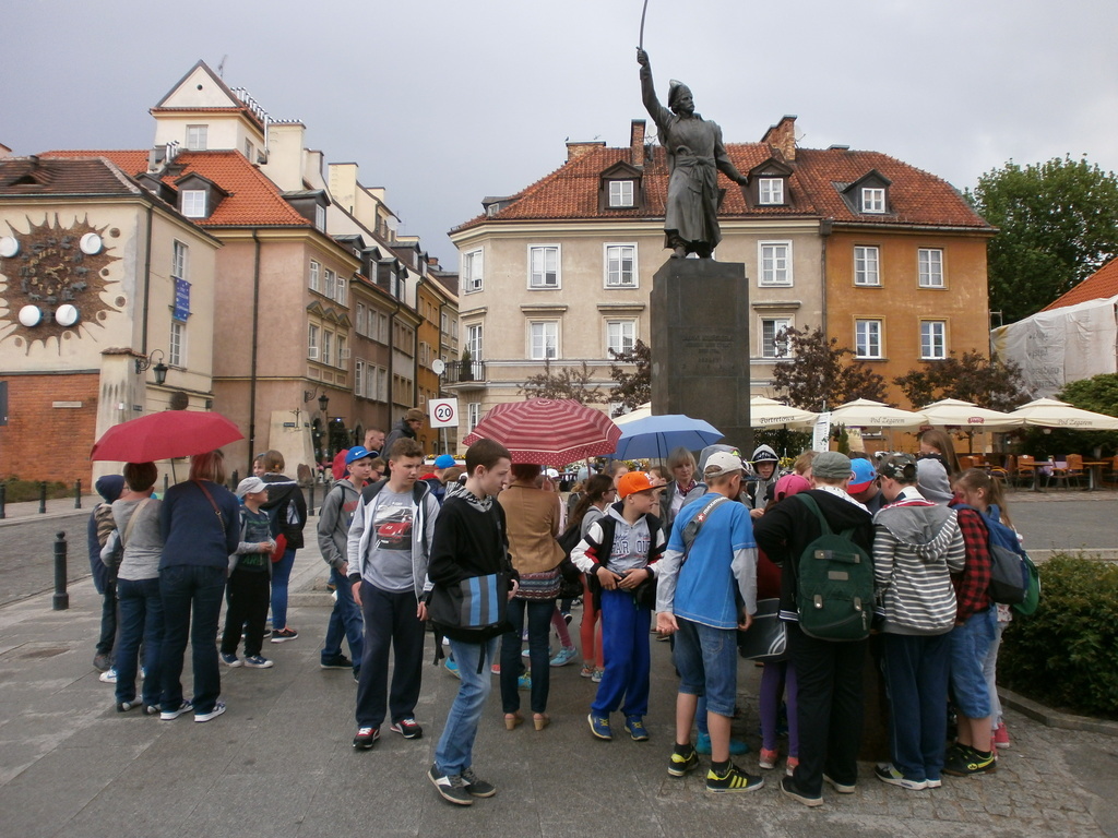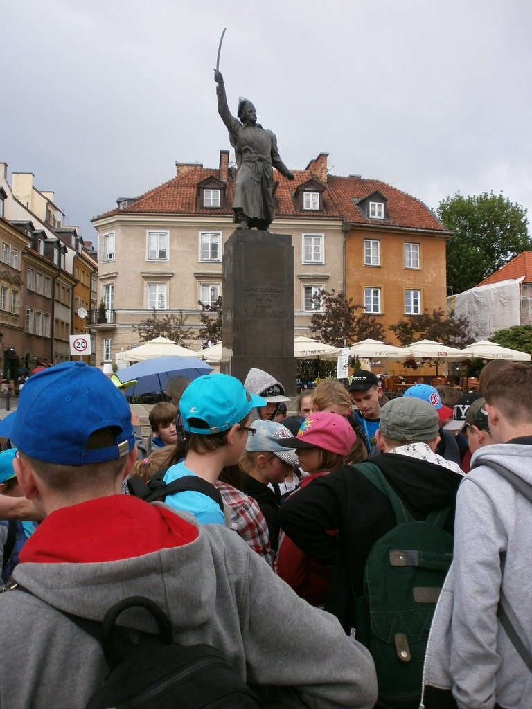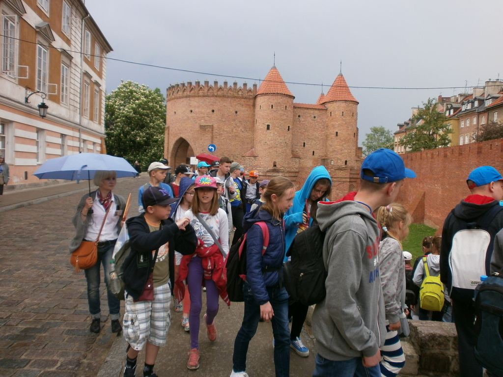 Wędrówkę po mieście rozpoczęliśmy od Placu Zamkowego i Zamku Królewskiego- niegdyś rezydencji królów, obecnie muzeum. Następnie udaliśmy się na Rynek Starego Miasta, gdzie podziwialiśmy kamienice oraz pomnik Syrenki, który stoi w centrum Rynku. Jest on otoczony fontanną, przy której można ochłodzić się w gorące dni. Potem wąskimi uliczkami dotarliśmy do średniowiecznych murów obronnych i najciekawszego ich fragmentu – Barbakanu oraz Pomnika Małego Powstańca. Po drodze zwiedziliśmy również Katedrę Św. Jana i Plac Kanonia, którego nazwa nawiązuje do mieszkających w tamtejszych XVII - wiecznych kamieniczkach księży kanoników. Na Kanonii znajduje się najwęższy dom w Warszawie. Następnym punktem wycieczki był Pałac Prezydencki. Zmęczeni, ale spragnieni kolejnych wrażeń udaliśmy się na Plac Marszałka Józefa Piłsudskiego, gdzie znajduje się Grób Nieznanego Żołnierza – symboliczna mogiła upamiętniająca bezimiennych żołnierzy poległych w obronie ojczyzny. Mieliśmy ogromne szczęście, ponieważ mogliśmy zobaczyć zmianę warty. Oczywiście nie mogło zabraknąć pamiątkowych zdjęć w Parku Saskim.