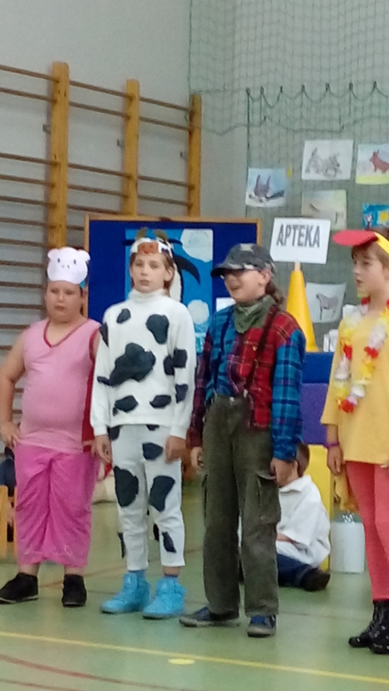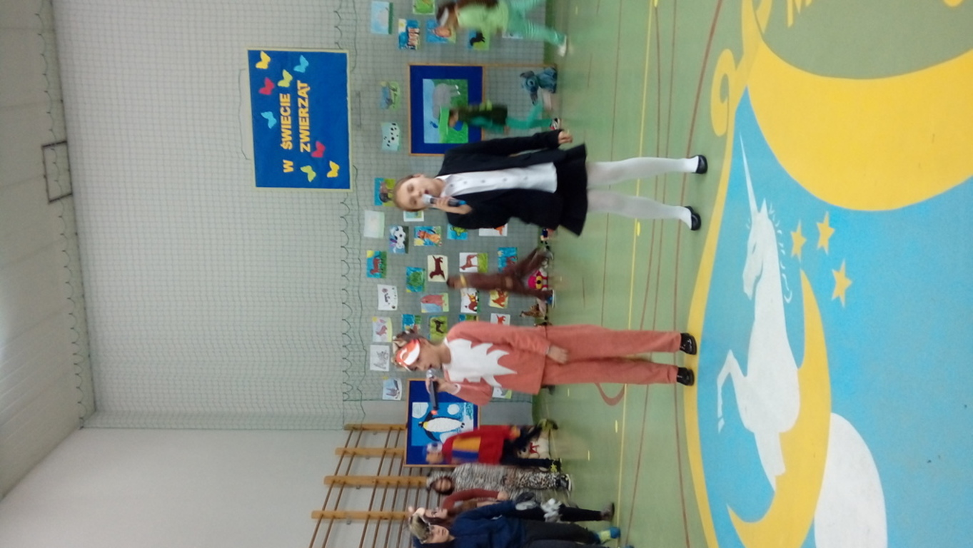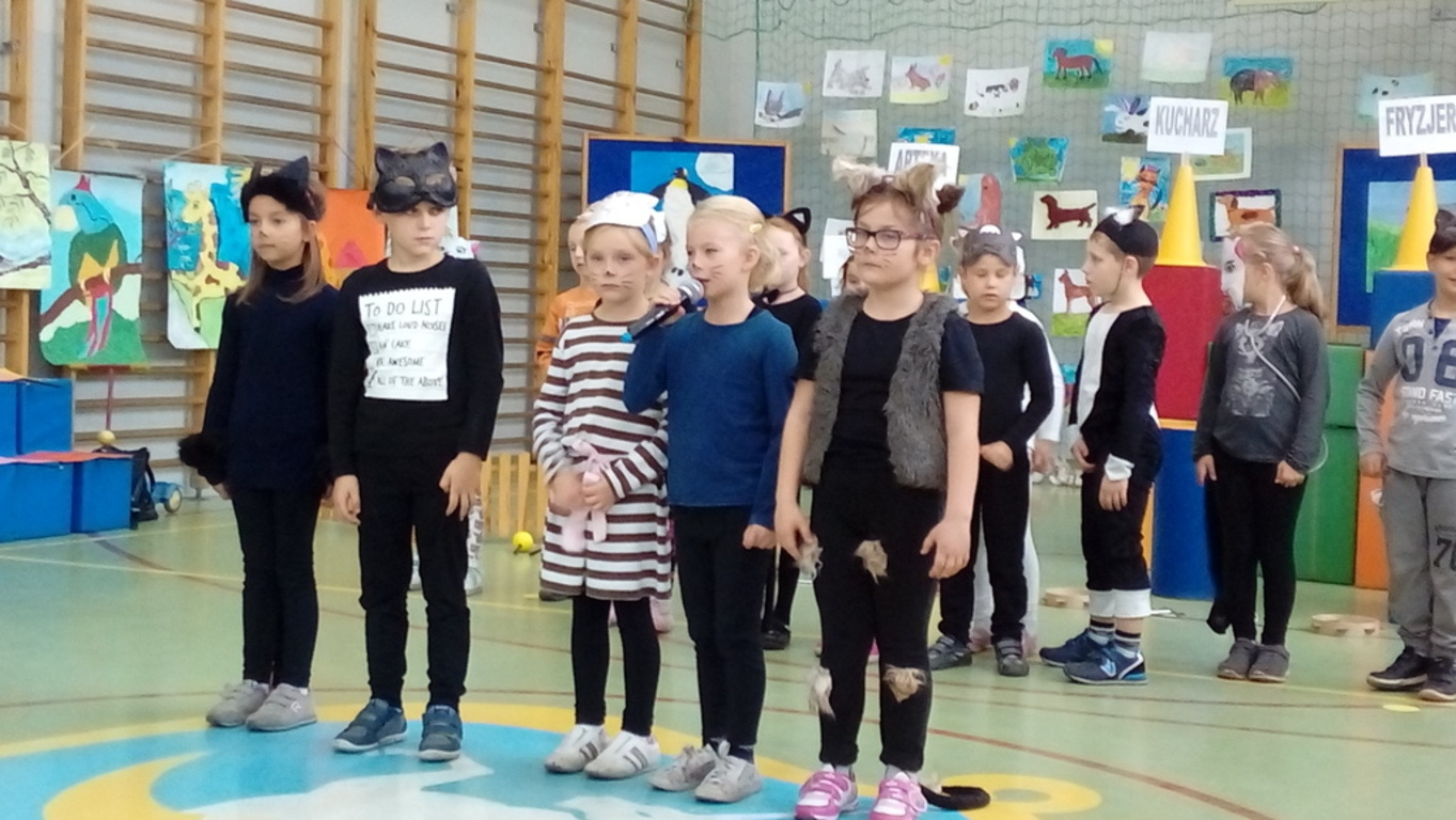 Uczniowie w pięknych przebraniach popisywali się na scenie przy ogromnym aplauzie publiczności. Klasa II a zaprezentowała się w występie tematycznie związanym z kotami, klasa II b w programie o pieskach zaś klasa III w zabawny sposób opowiedziała o zwierzętach domowych. Starsze klasy zabrały nas na wycieczkę do ZOO.