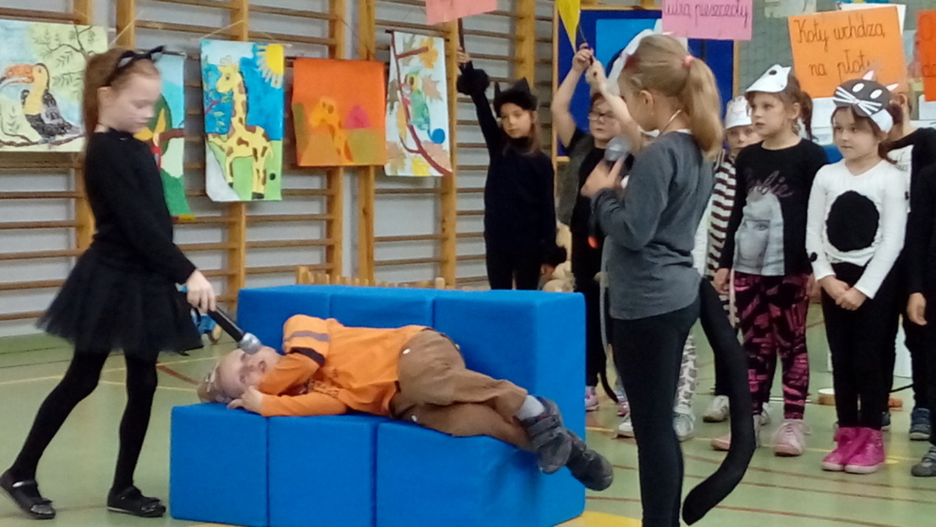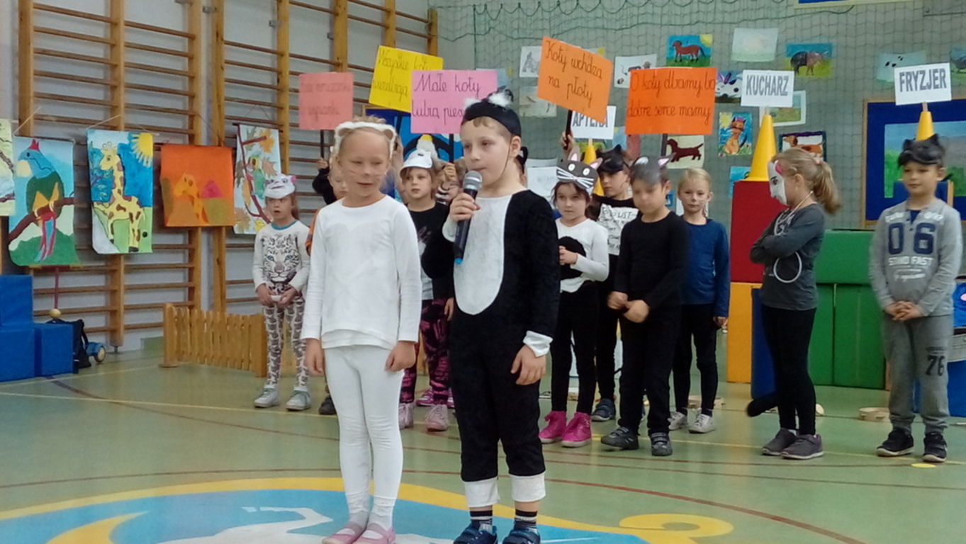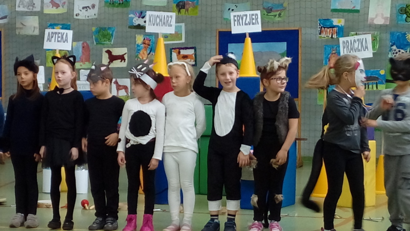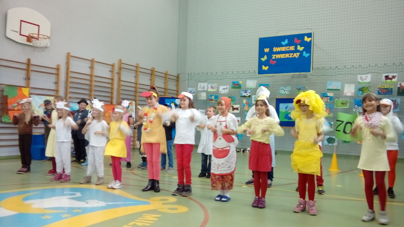 Uczniowie w pięknych przebraniach popisywali się na scenie przy ogromnym aplauzie publiczności. Klasa II a zaprezentowała się w występie tematycznie związanym z kotami, klasa II b w programie o pieskach zaś klasa III w zabawny sposób opowiedziała o zwierzętach domowych. Starsze klasy zabrały nas na wycieczkę do ZOO.