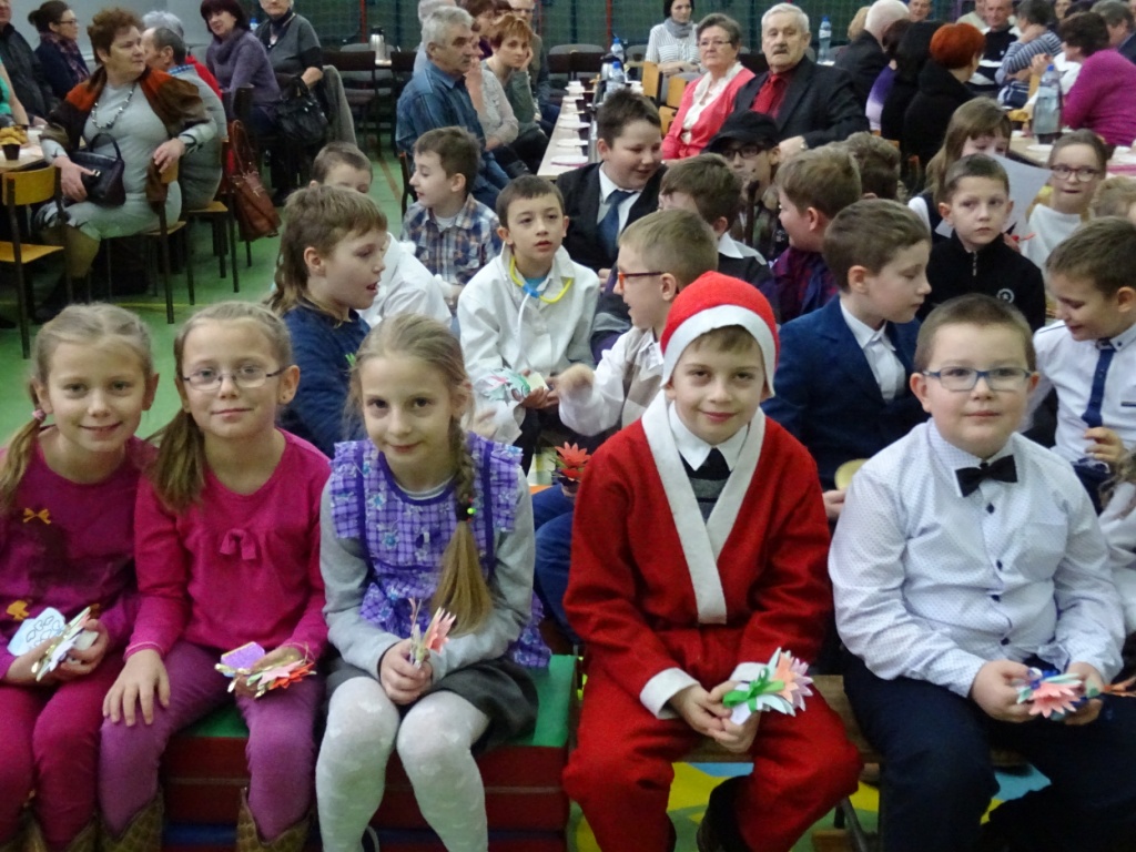 „Moc życzeń dla Babci i Dziadka” to hasło wiodące imprezy jaka odbyła się 24 stycznia 2017 roku w naszej szkole. Właśnie w tym dniu uczniowie klasy II a, II b i III gościli w szkole swoje babcie i dziadków z okazji ich święta. Były życzenia, własnoręcznie wykonane upominki, wiersze, piosenki, inscenizacje oraz wspólne pląsy. Dziadkowie podziwiali swoje piękne portrety wykonane przez wnuczęta. Mogli także zrobić sobie pamiątkowe zdjęcie z wnukami. Całość odbywała się przy tradycyjnej kawce i pysznych rogalikach.