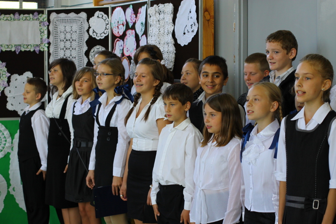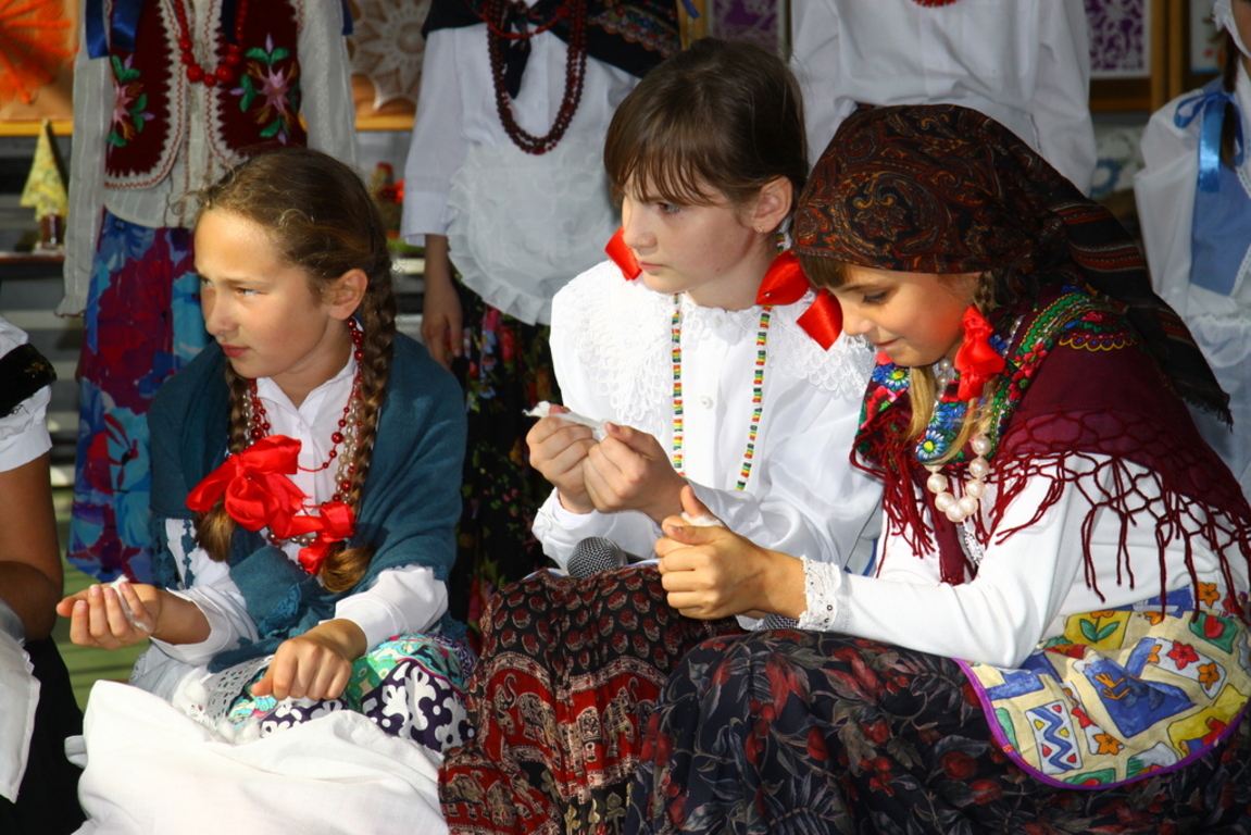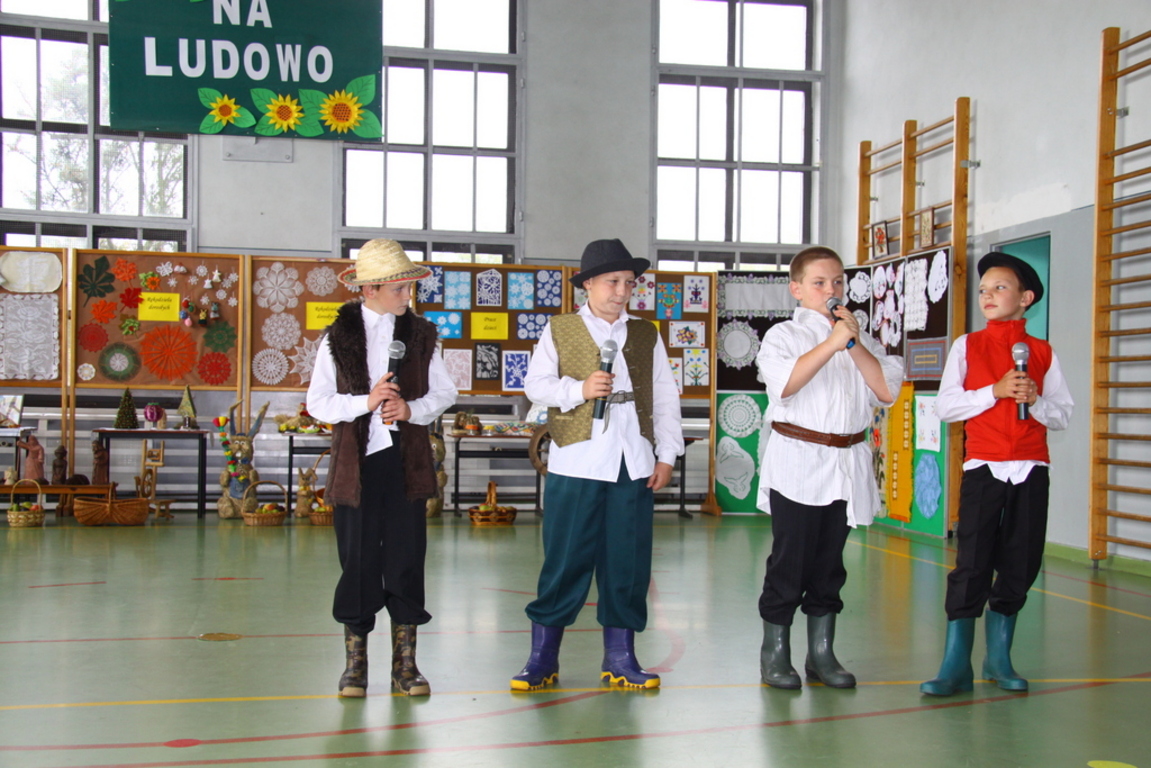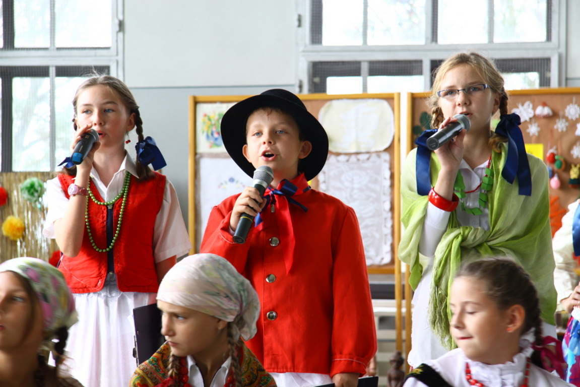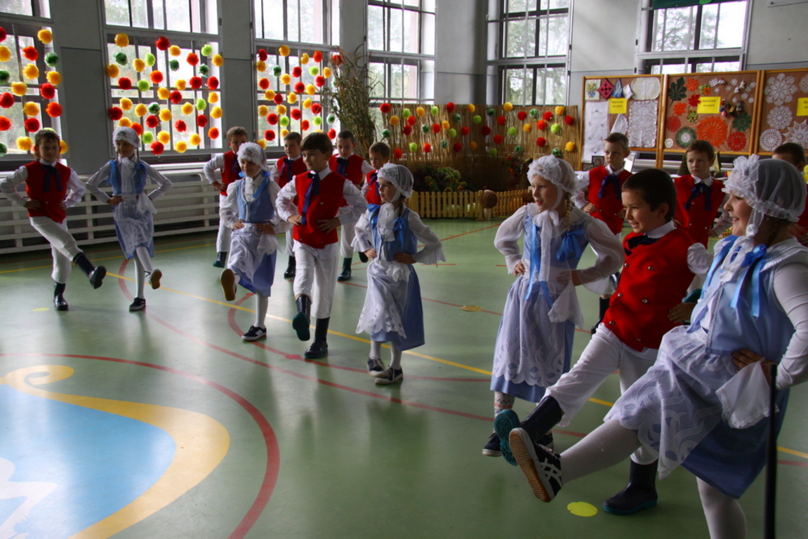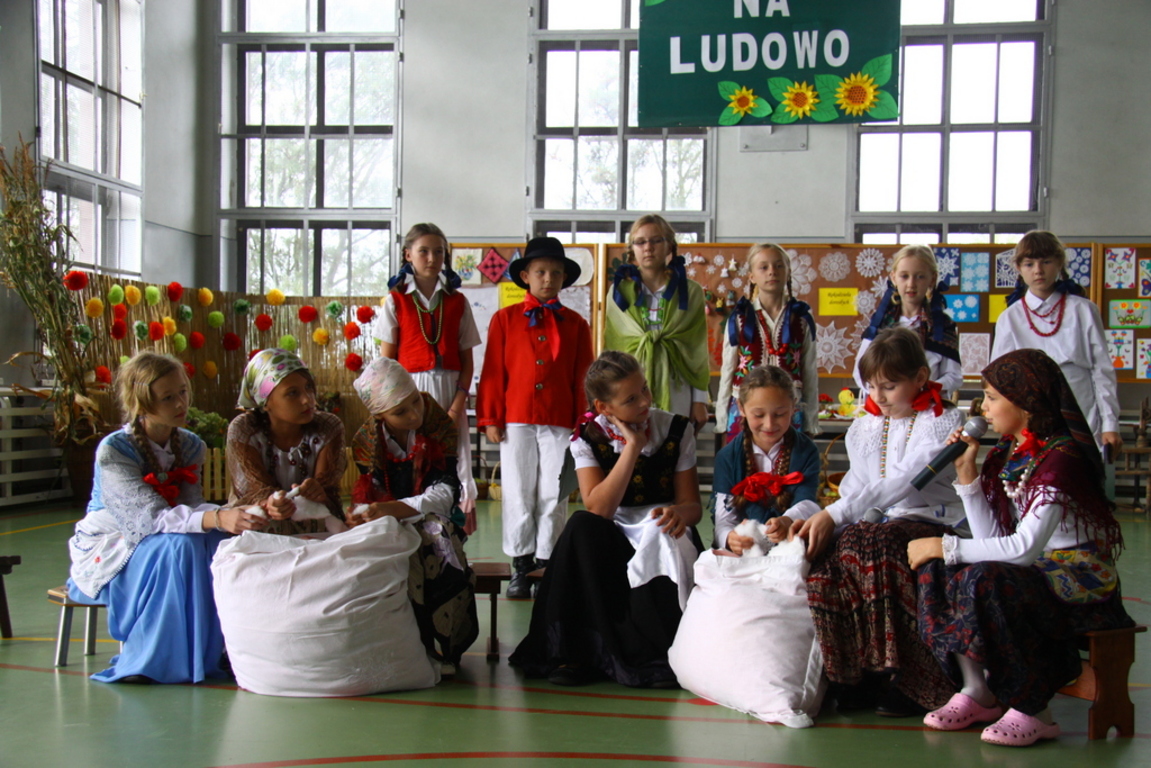 Wszyscy uczniowie zaangażowali się gorliwie w ten projekt. Klasa czwarta wystąpiła w inscenizacji zatytułowanej „Darcie pierza”, a klasa szósta przypomniała wszystkim, w jaki sposób w nie tak odległych czasach kisiło się w domach kapustę. W wykonaniu uczniów tych klas usłyszeliśmy również zabawne dialogi , oczywiście w gwarze wielkopolskiej, oraz dobrze wszystkim znane z dzieciństwa wierszyki, które zabrzmiały zupełnie inaczej, gdy słuchało się ich w gwarze. Przerywnikami, które dopełniały całości , były piękne piosenki ludowe w wykonaniu zespołu muzycznego, składającego się z uzdolnionych muzycznie uczniów naszej szkoły oraz tańce ludowe zaprezentowane przez uczniów klasy drugiej.