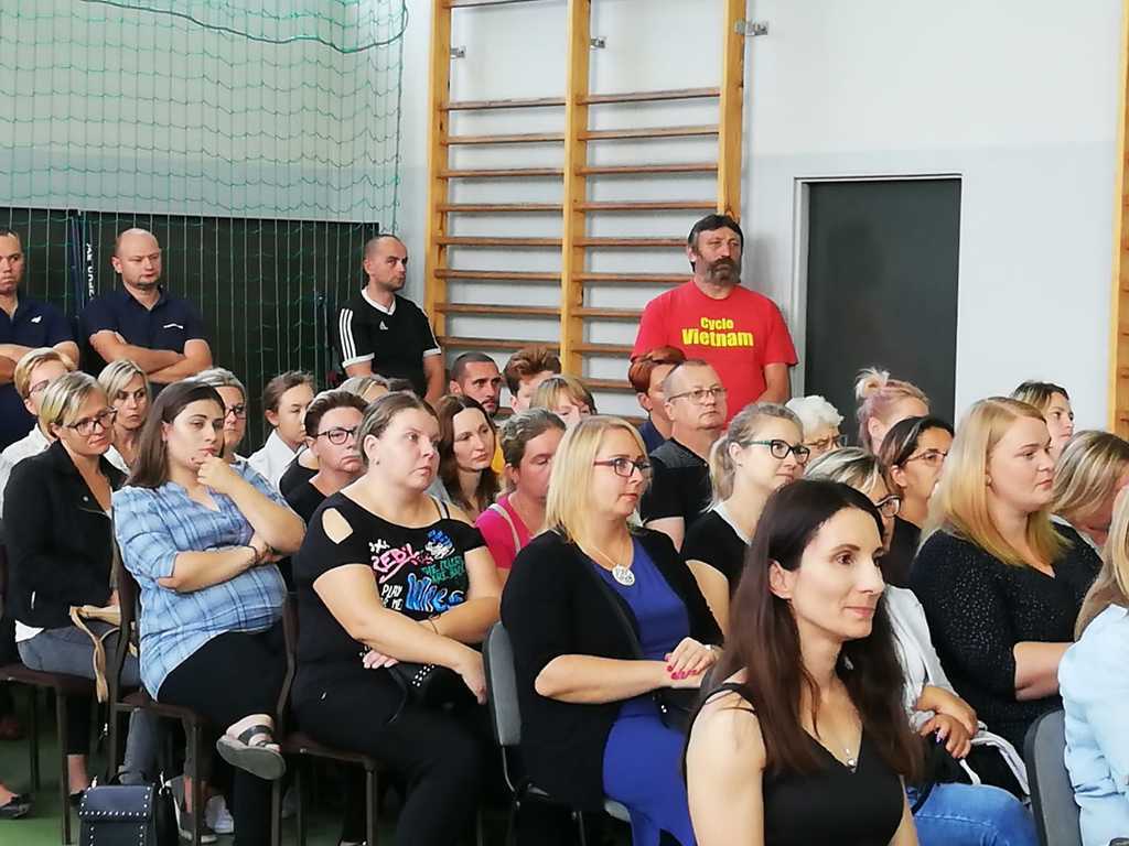 Tegoroczna uroczystość rozpoczęcia roku szkolnego 2019/2020 rozpoczęła się od odśpiewania hymnu państwowego. Następnie głos zabrała dyrektor szkoły Pani Jolanta Zmyślona, która gorąco powitała zgromadzonych gości, uczniów, ich rodziców oraz grono pedagogiczne.