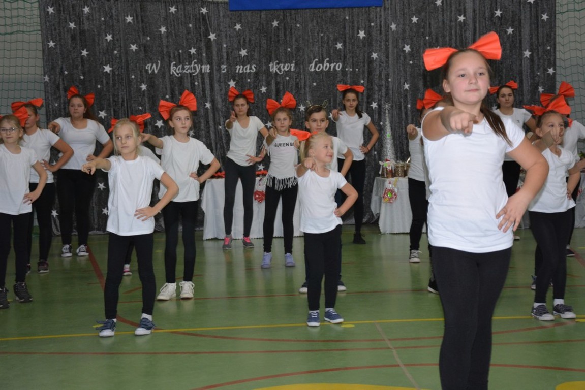 W pierwszej części uroczystości mogliśmy wysłuchać oraz czynnie uczestniczyć we wspaniałych aranżacjach pieśni, kolęd i pastorałek bożonarodzeniowych w wykonaniu Trębaczy Myśliwskich z Zespołu Szkół Leśnych w Goraju, absolwentów szkoły i szkolnego zespołu muzycznego. Oprócz akcentów muzycznych, można było także podziwiać układy taneczne zaprezentowane przez uczniów naszej szkoły.