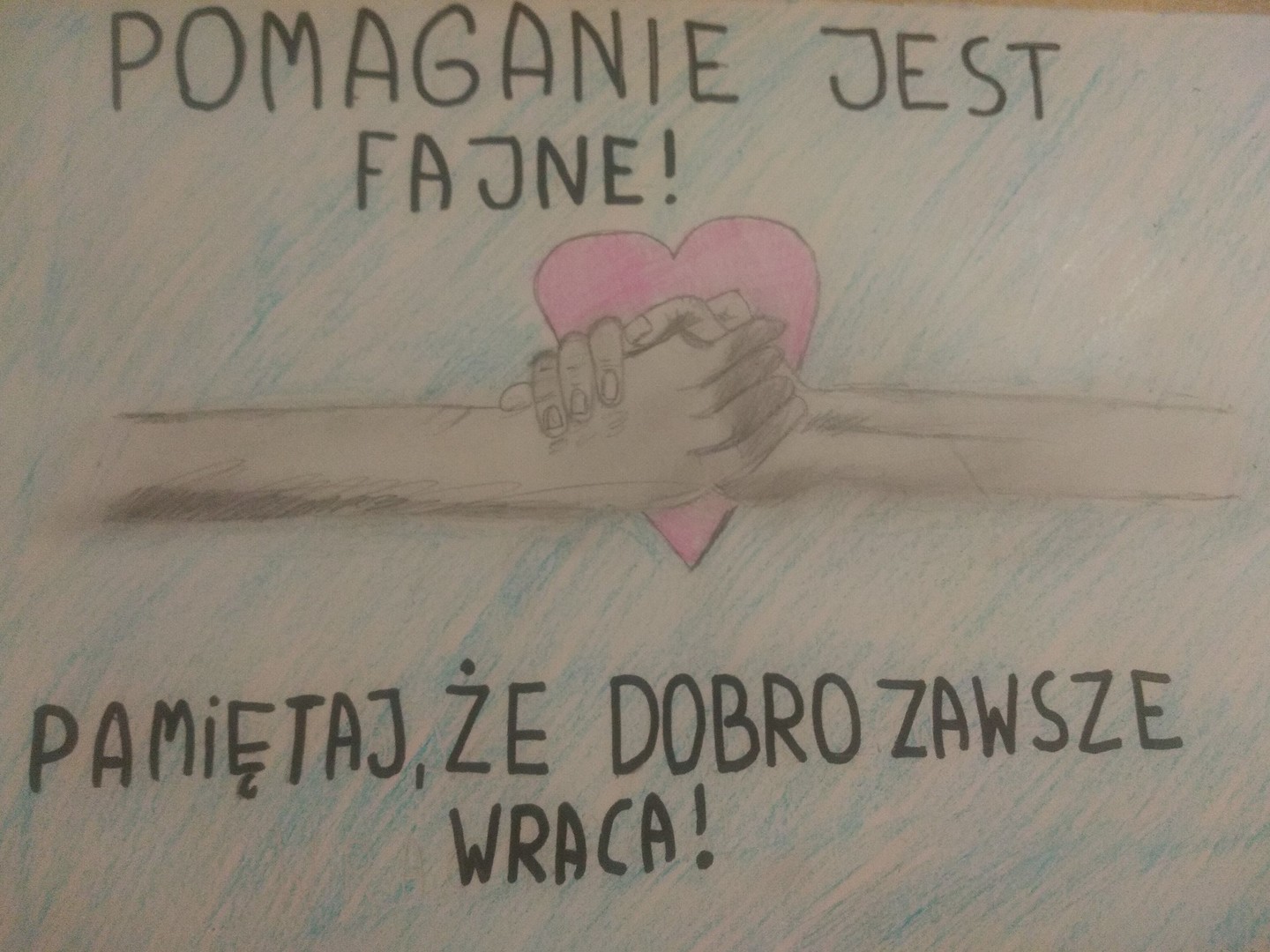 Członkowie Szkolnego Koła Wolontariatu, w miesiącu grudniu, wykonywali plakaty promujące pomaganie. Głównym hasłem było zawołanie: „Pomaganie jest fajne”. W tych trudnych dla nas wszystkich czasach, pamiętajmy o innych.
