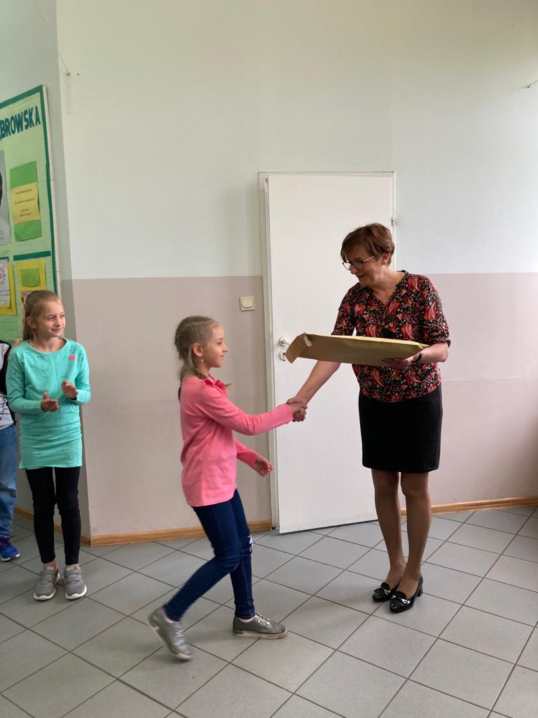 Uczniowie naszej szkoły aktywnie odpowiedzieli na XI edycję Ogólnopolskiego Konkursu Plastycznego „Bezpiecznie na wsi mamy – od 30 lat z KRUS wypadkom zapobiegamy”. Oto relacja fotograficzna z wręczenia przez panią dyrektor Jolantę Zmyśloną upominków dla naszych artystów ufundowanych przez KRUS w Czarnkowie.