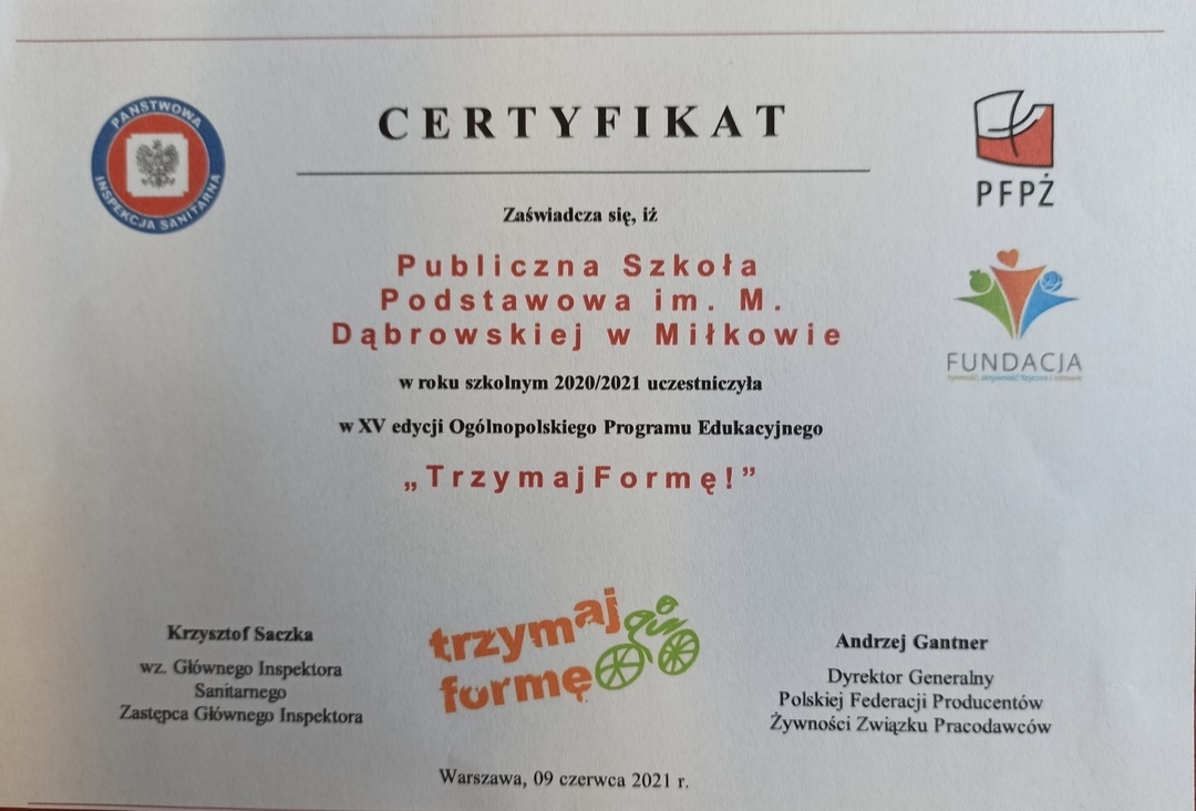 Nasza szkoła wzięła udział w Ogólnopolskim Programie Edukacyjnym „Trzymaj Formę!” – XV edycja.