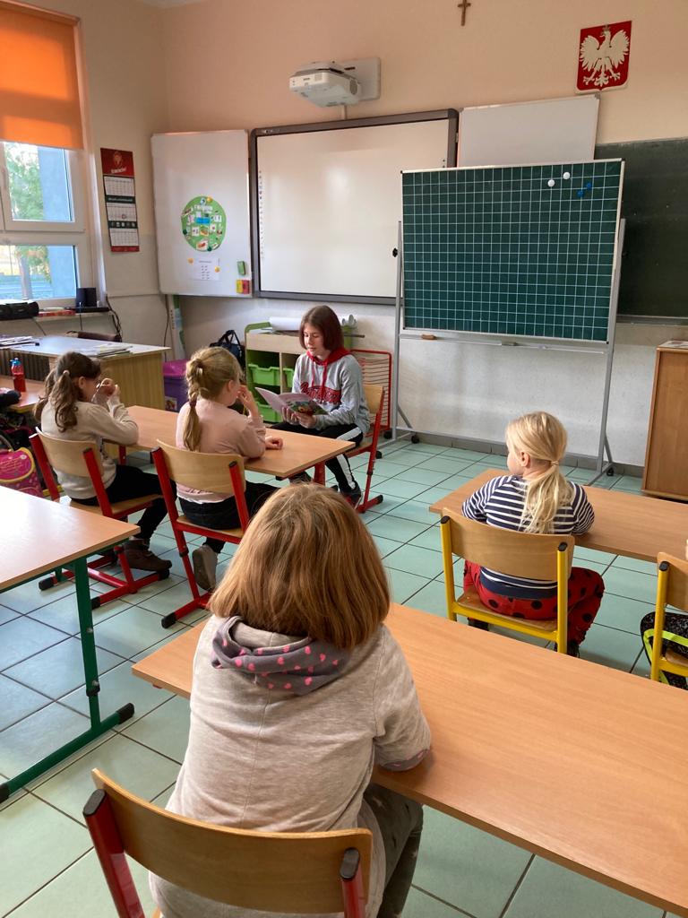 - Głośne i piękne czytanie fragmentów utworów Marii Dąbrowskiej na Szkolny Dzień Patrona.
