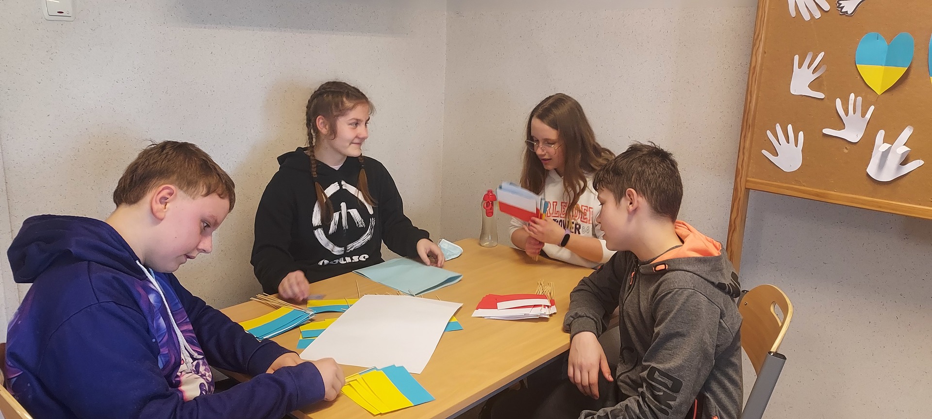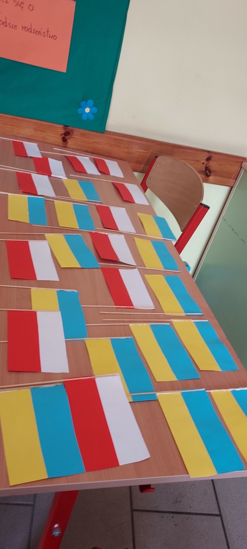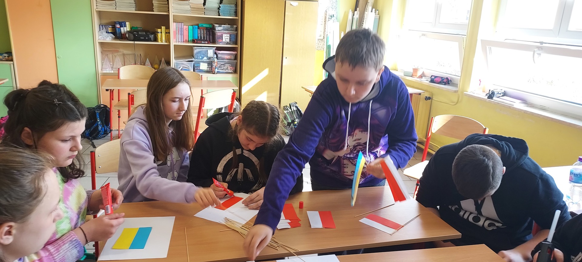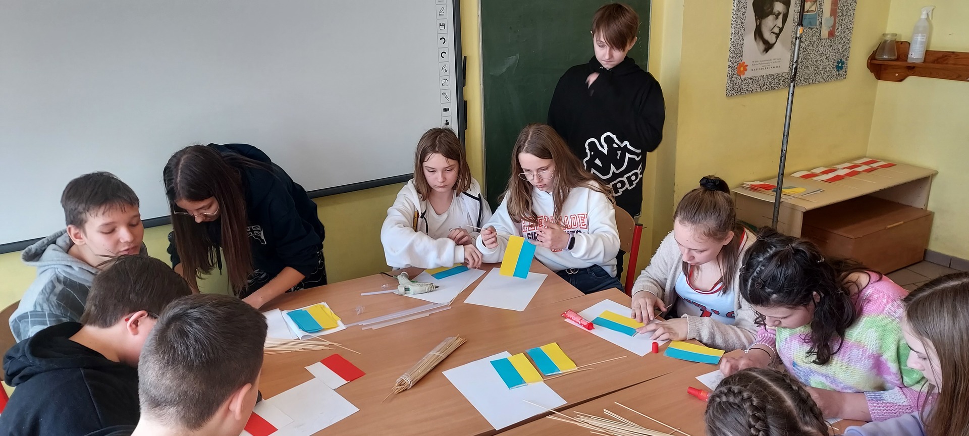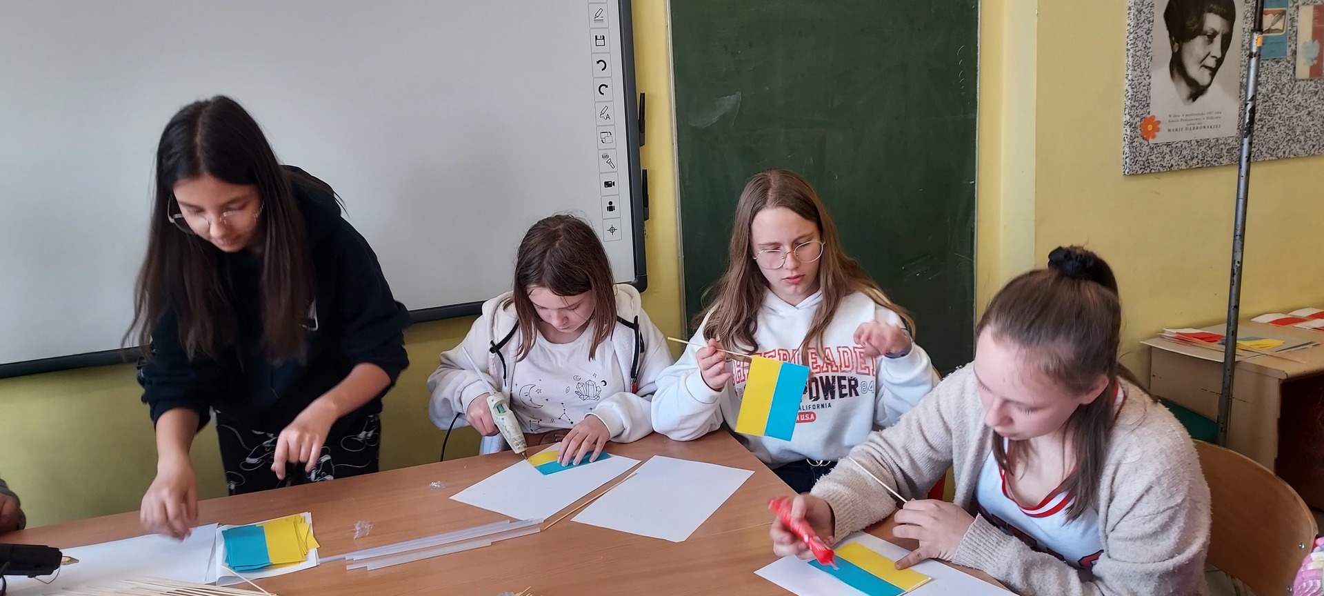 Solidarni z Ukrainą- wykonanie flag dla społeczności szkolnej.
