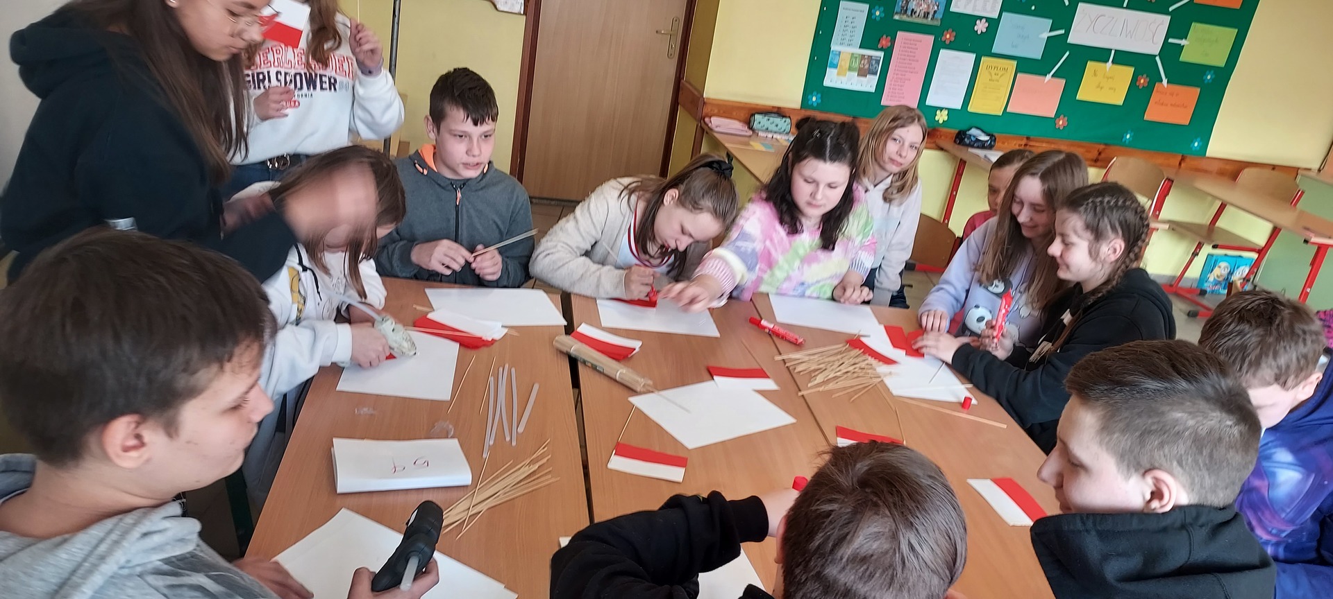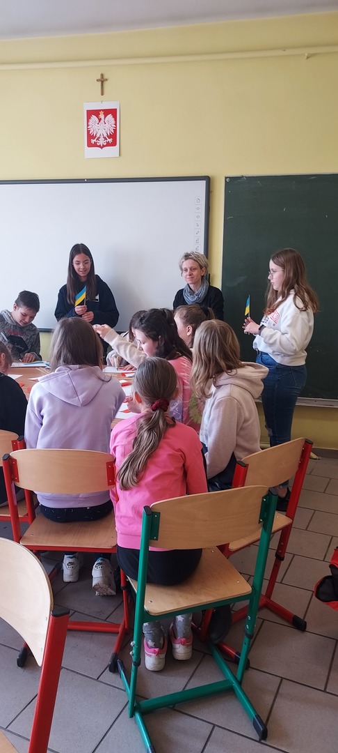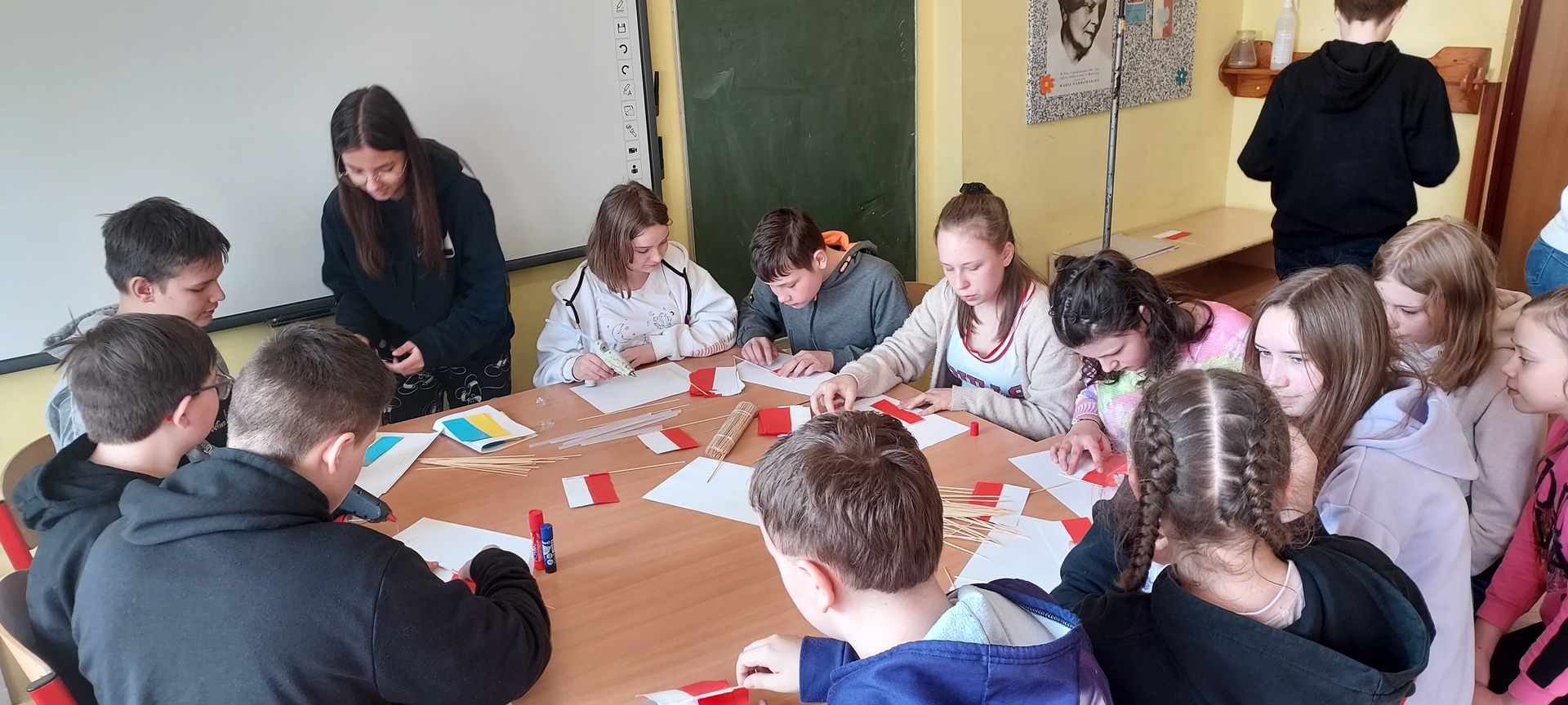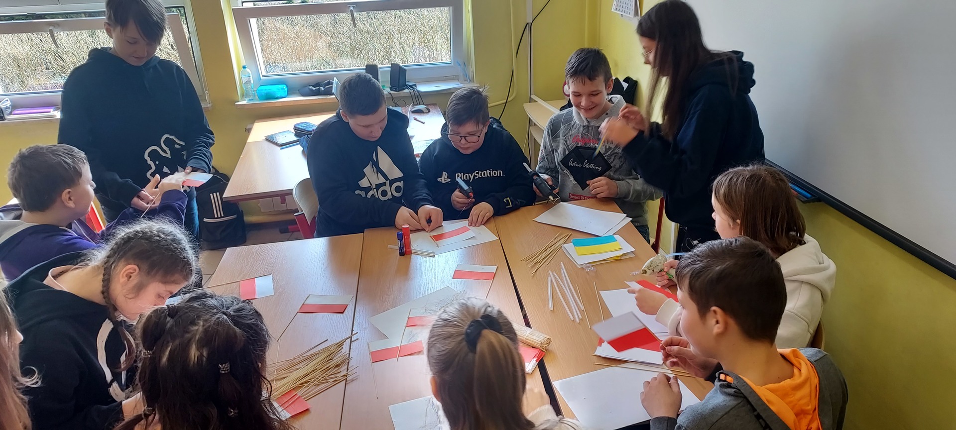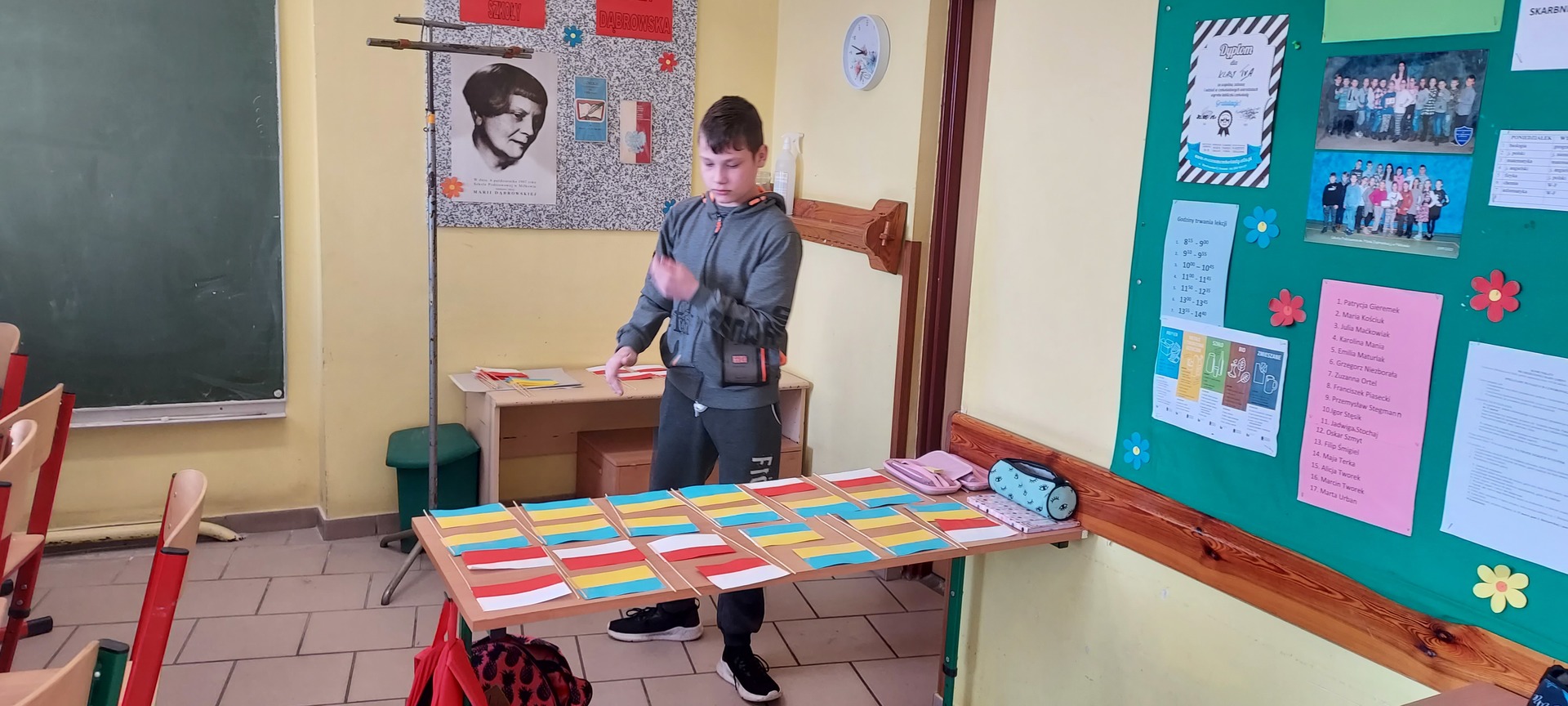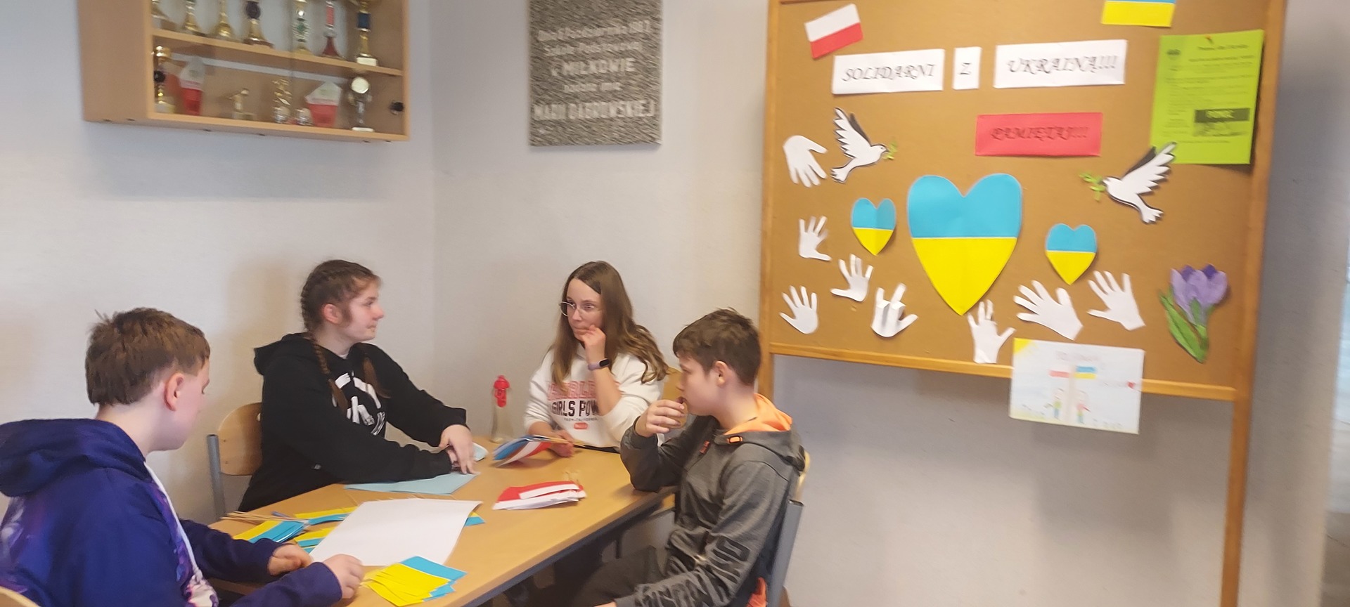 Solidarni z Ukrainą- wykonanie flag dla społeczności szkolnej.