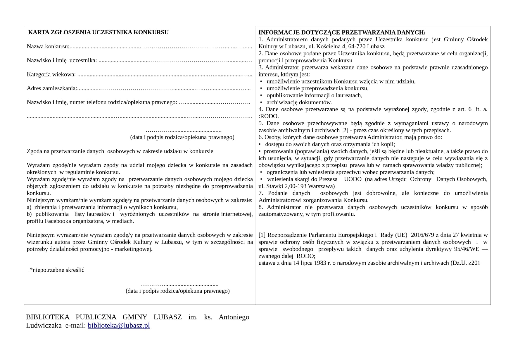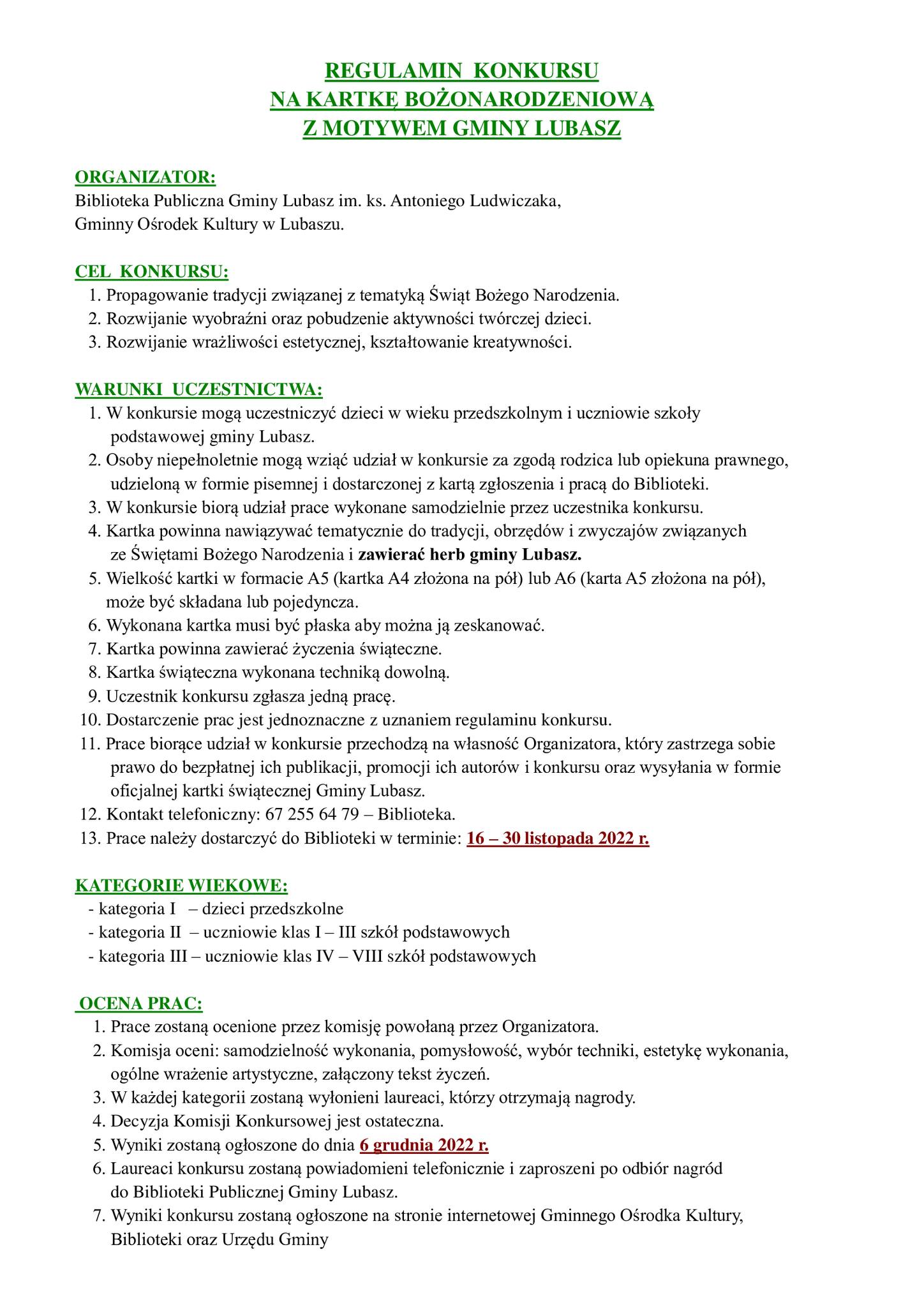 Biblioteka Publiczna Gminy Lubasz zaprasza do udziału w konkursie.
