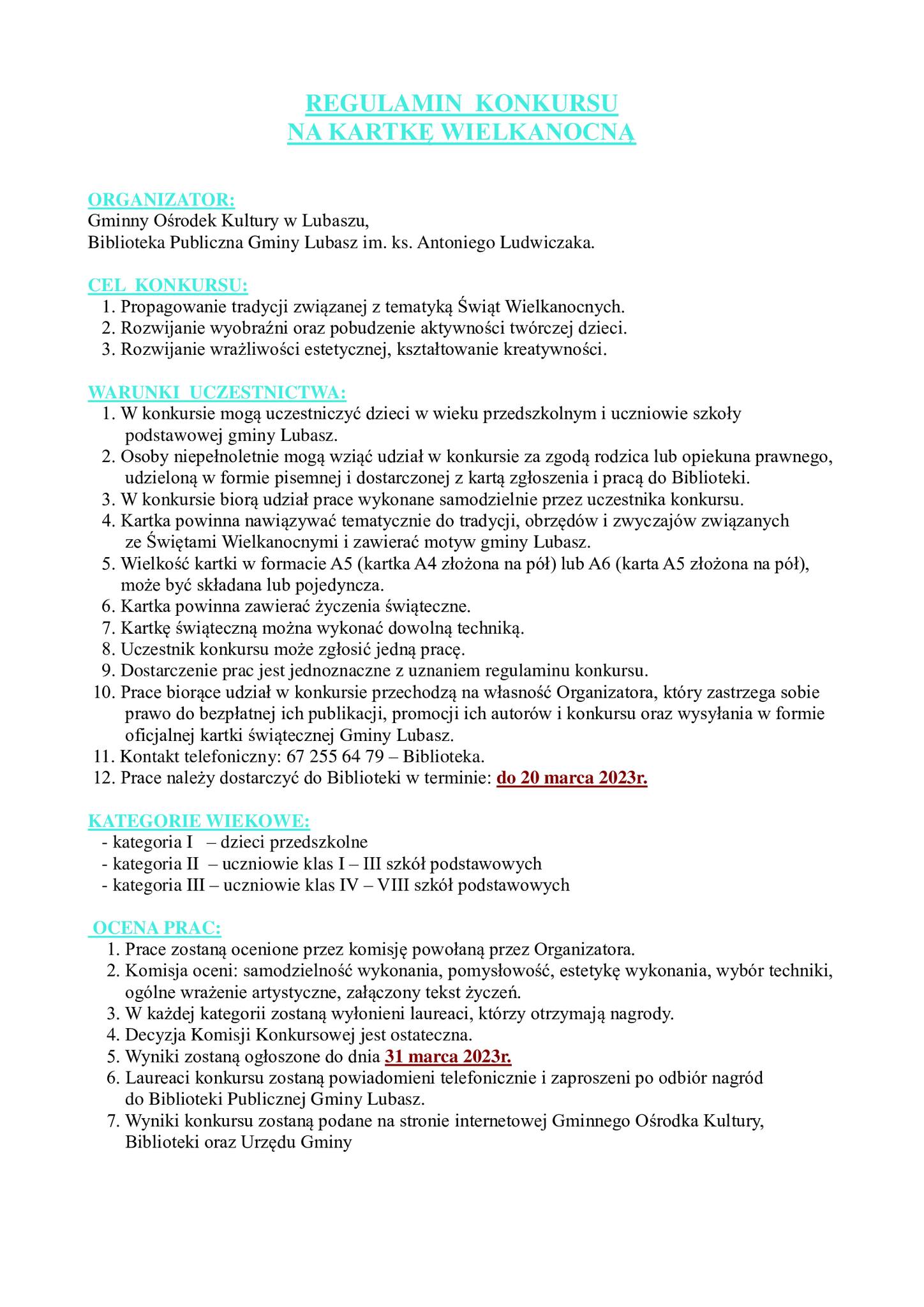 Zapraszamy do udziału w konkursie plastycznym.