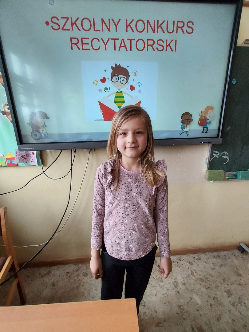 Dzisiaj odbyły się szkolne eliminacje konkursu recytatorskiego uczniów klas 1-3. Uczniowie recytowali wiersze Jana Brzechwy. Komisja w składzie: Jadwiga Stochaj - polonistka, Iwona Wleklak i Anna Plewińska - nauczycielki edukacji wczesnoszkolnej wyłoniła 6 uczniów , którzy będą reprezentowali naszą szkołę na konkursie w Jędrzejewie: Alicja Nurczyk, Nikola Pawlaczyk, Aleksandra Dmytrasz, Franciszek Kałuziak, Karolina Jany, Emilia Noji. Dziękujemy wszystkim uczniom za piękne recytacje na szczeblu szkolnym .
