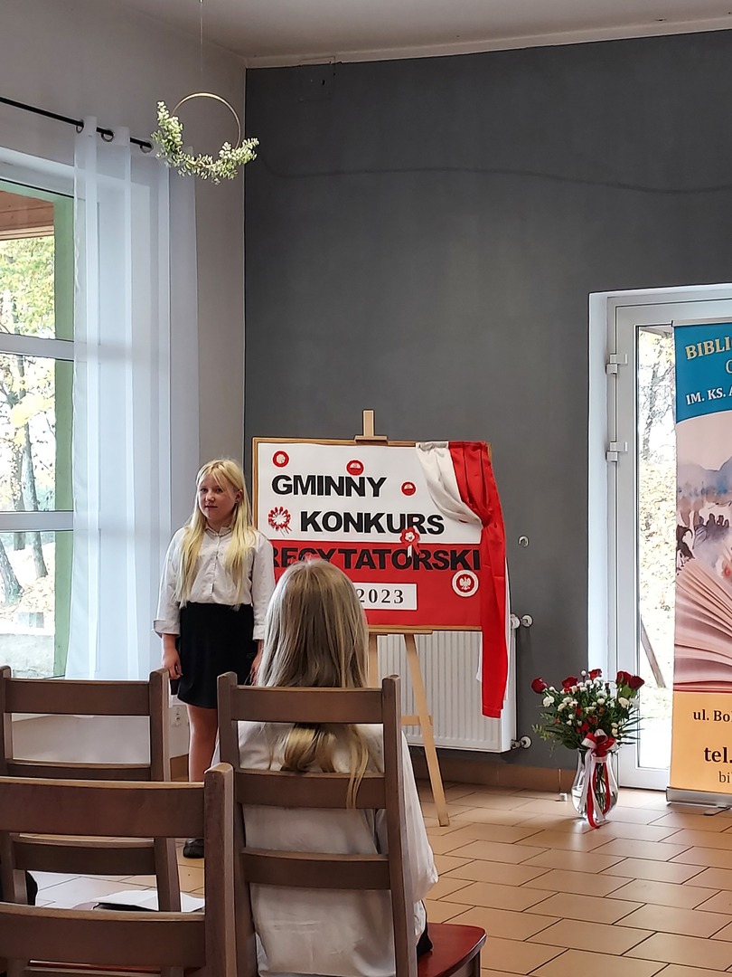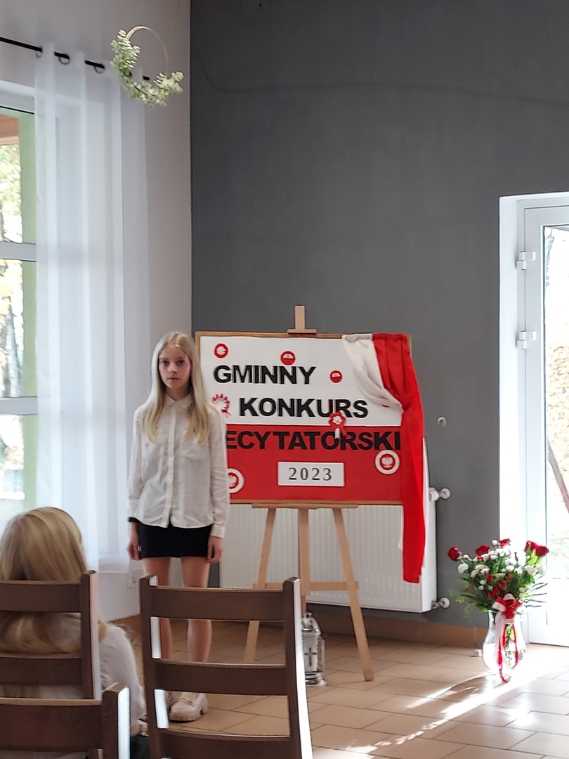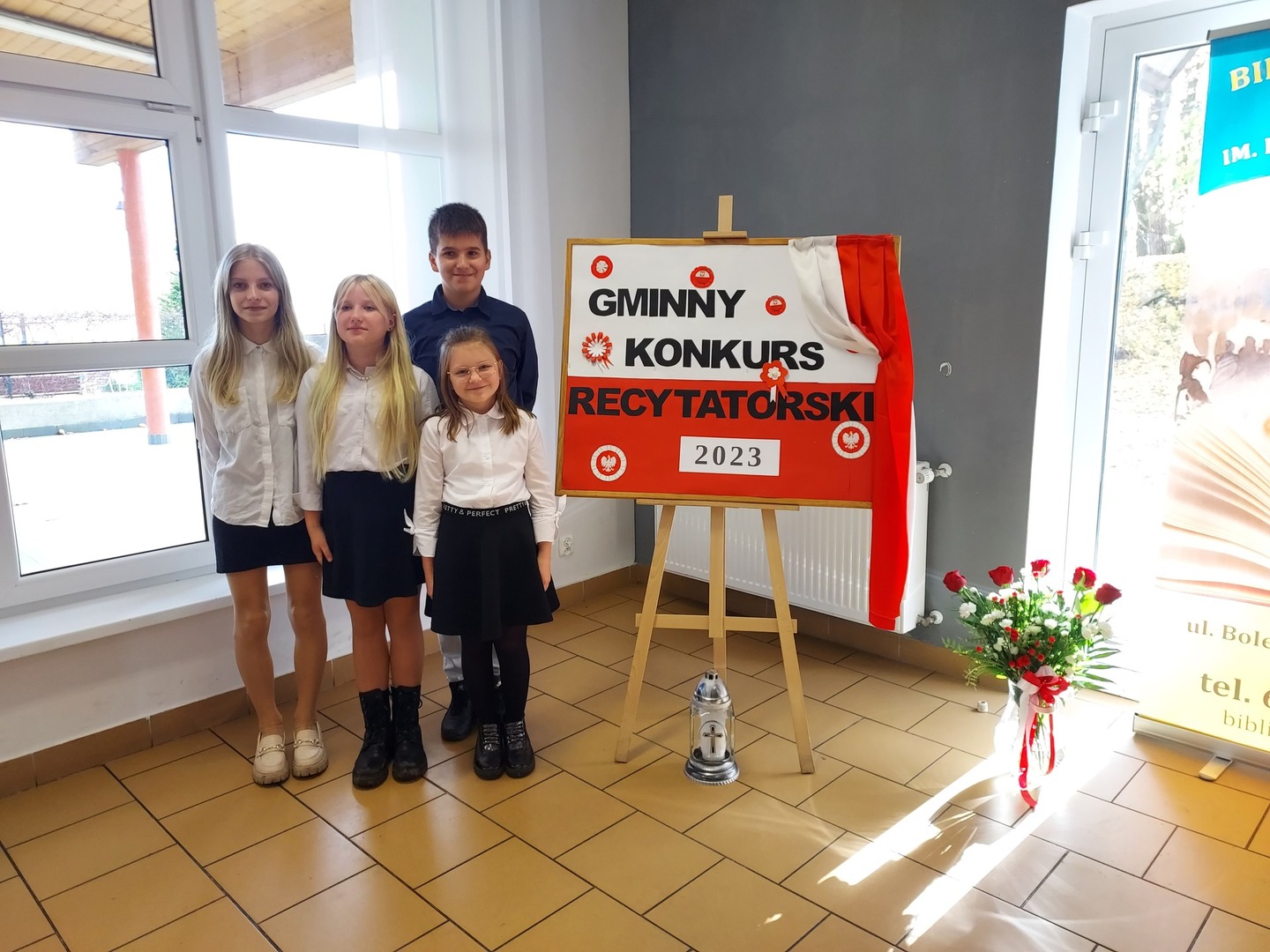 6 listopada br. uczniowie naszej szkoły wzięli udział w Gminnym Konkursie Recytatorskim o tematyce patriotycznej. Naszą placówkę reprezentowali: Karolina Jany, Olga Dłużak, Stanisław Papaj i Judyta Sotek.