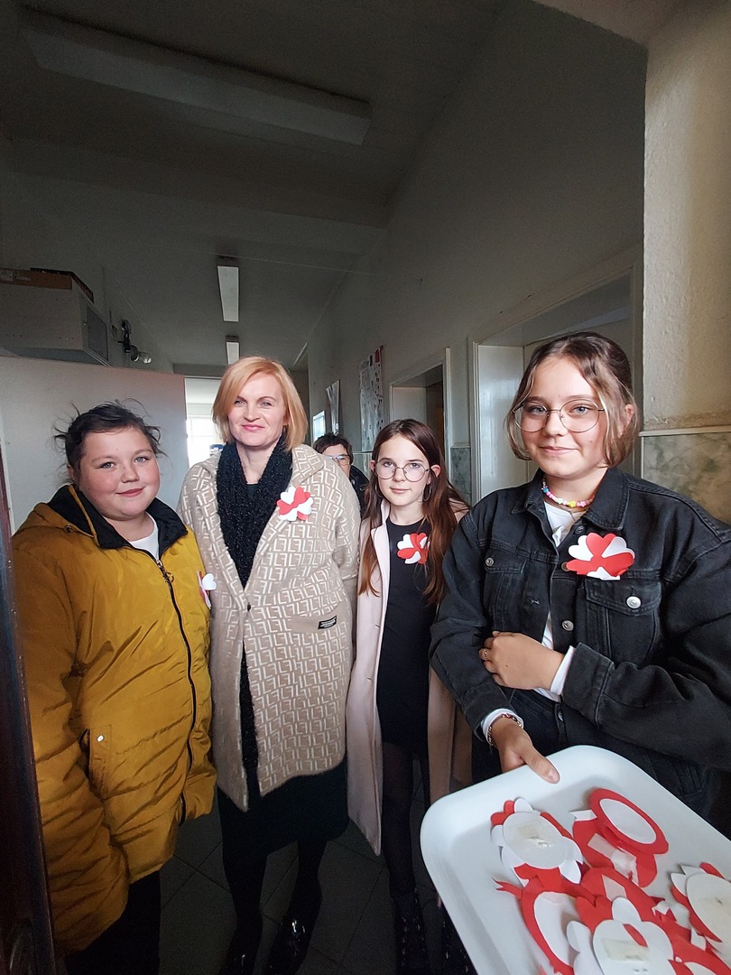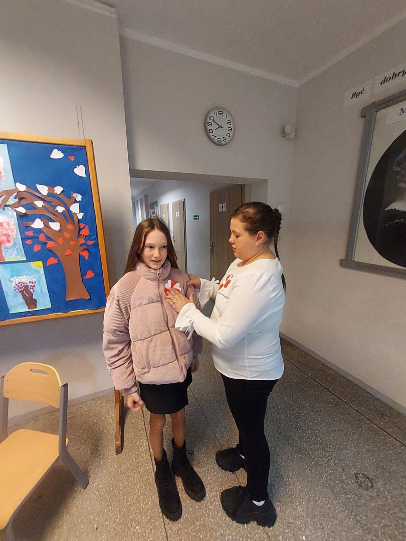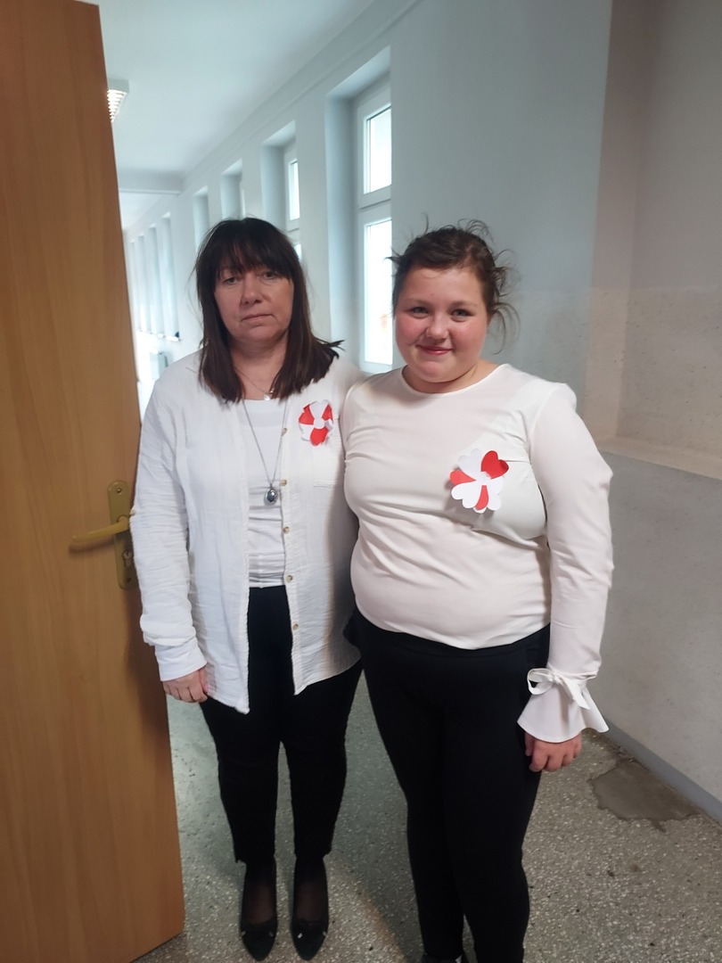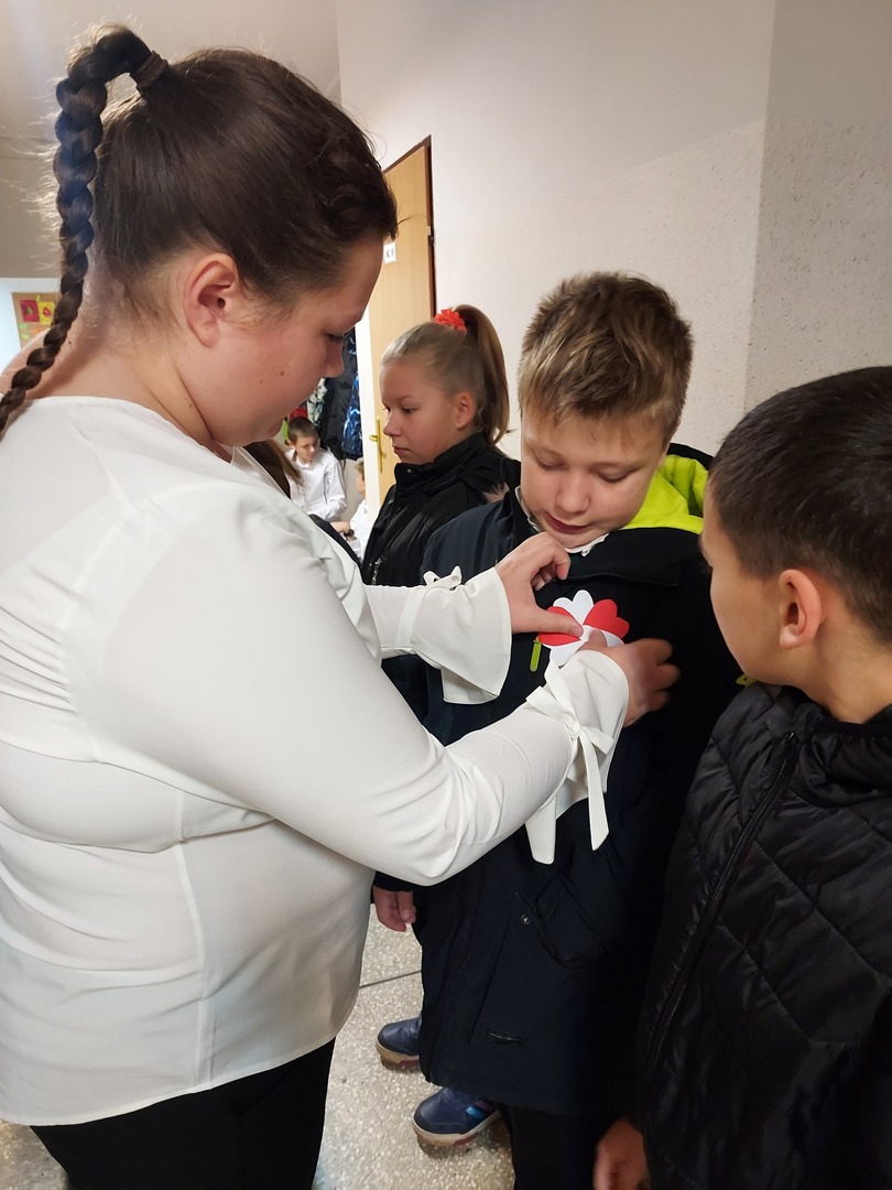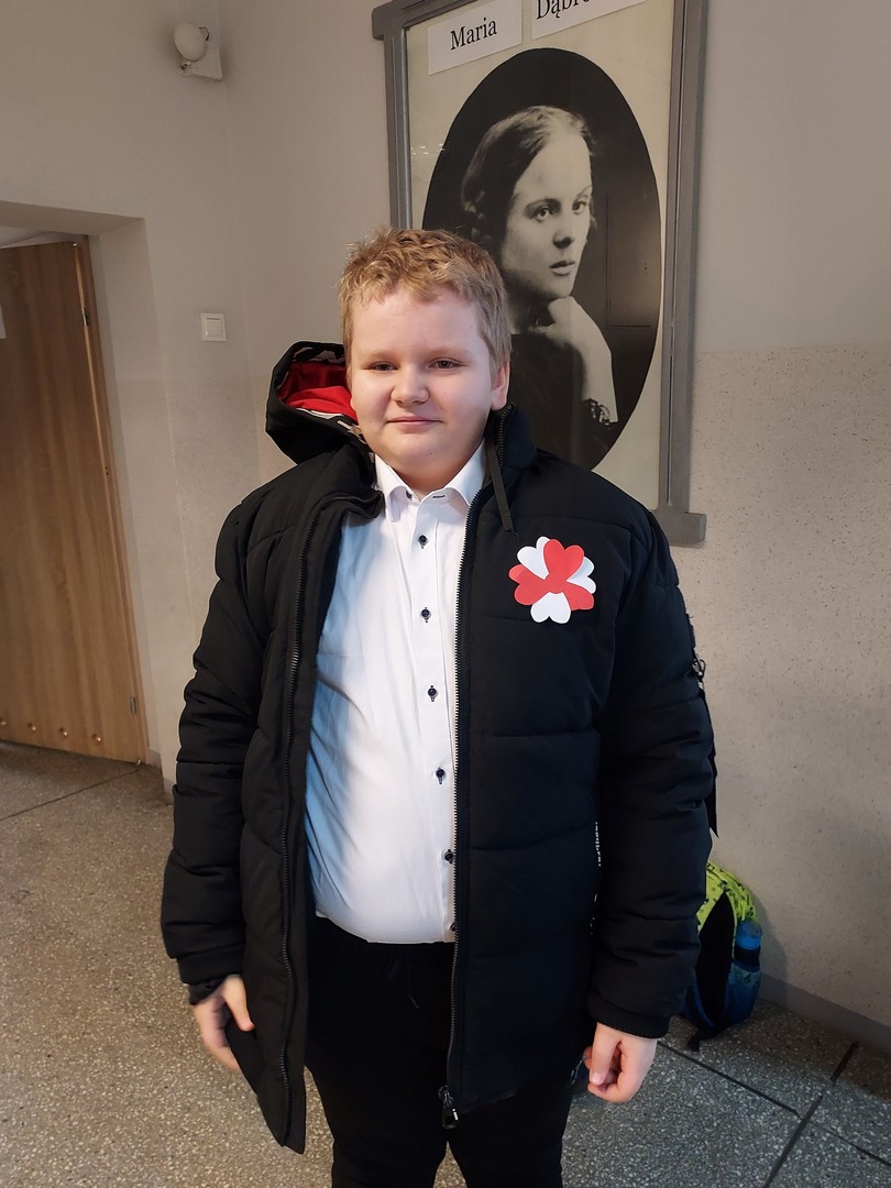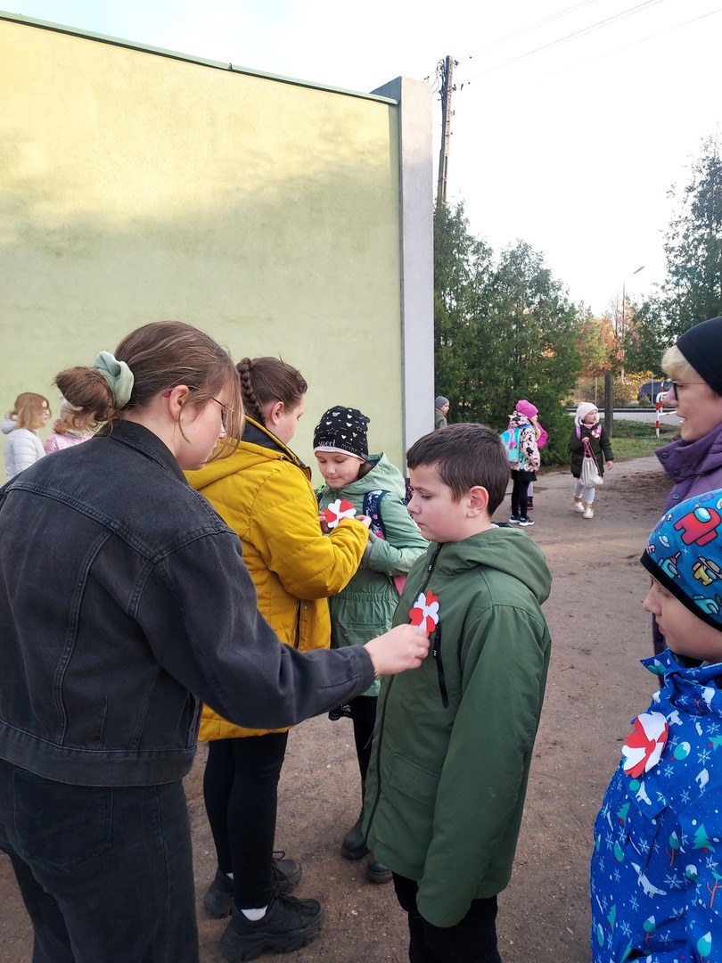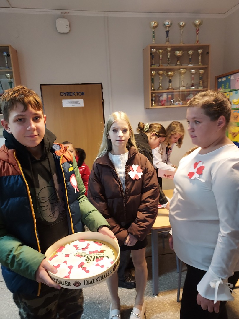 Członkowie Szkolnego Koła Wolontariatu zadbali, aby biel i czerwień - barwy narodowe były widoczne na ubraniach całej społeczności szkolnej🤍❤