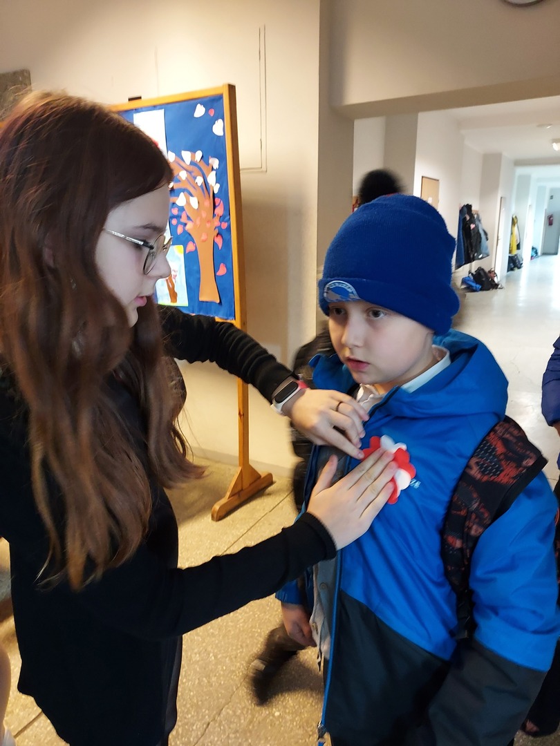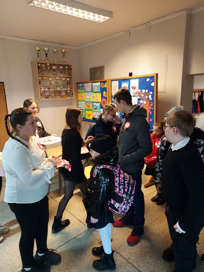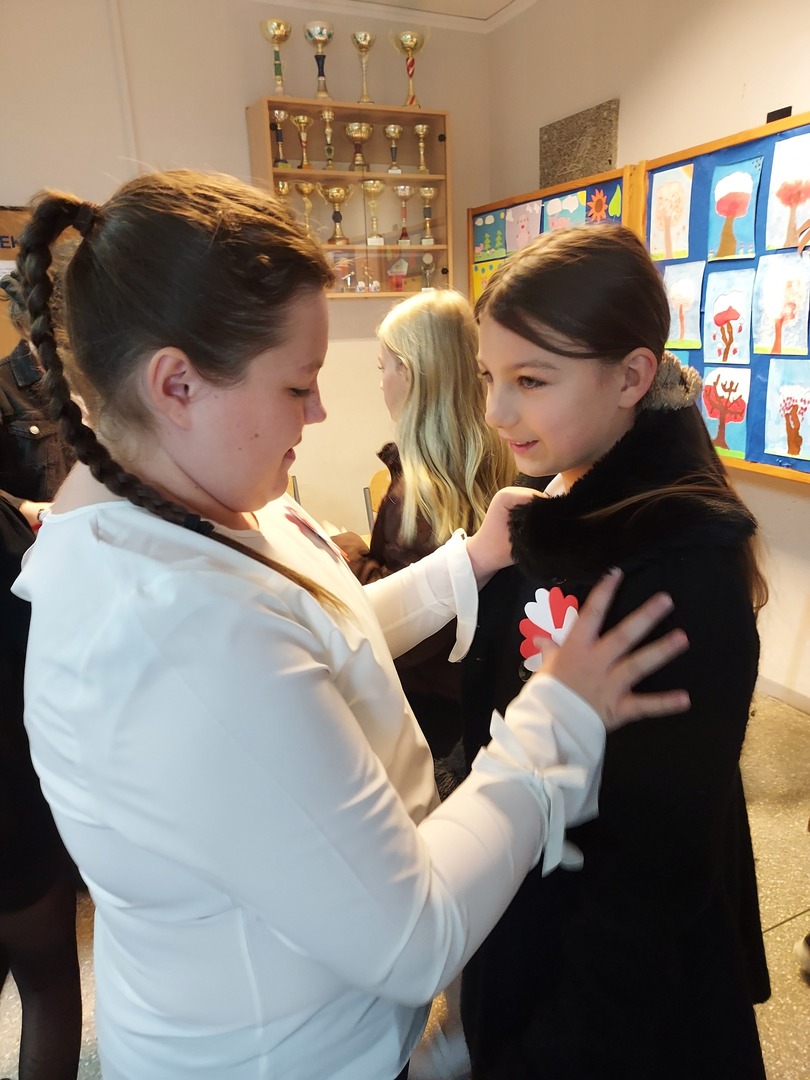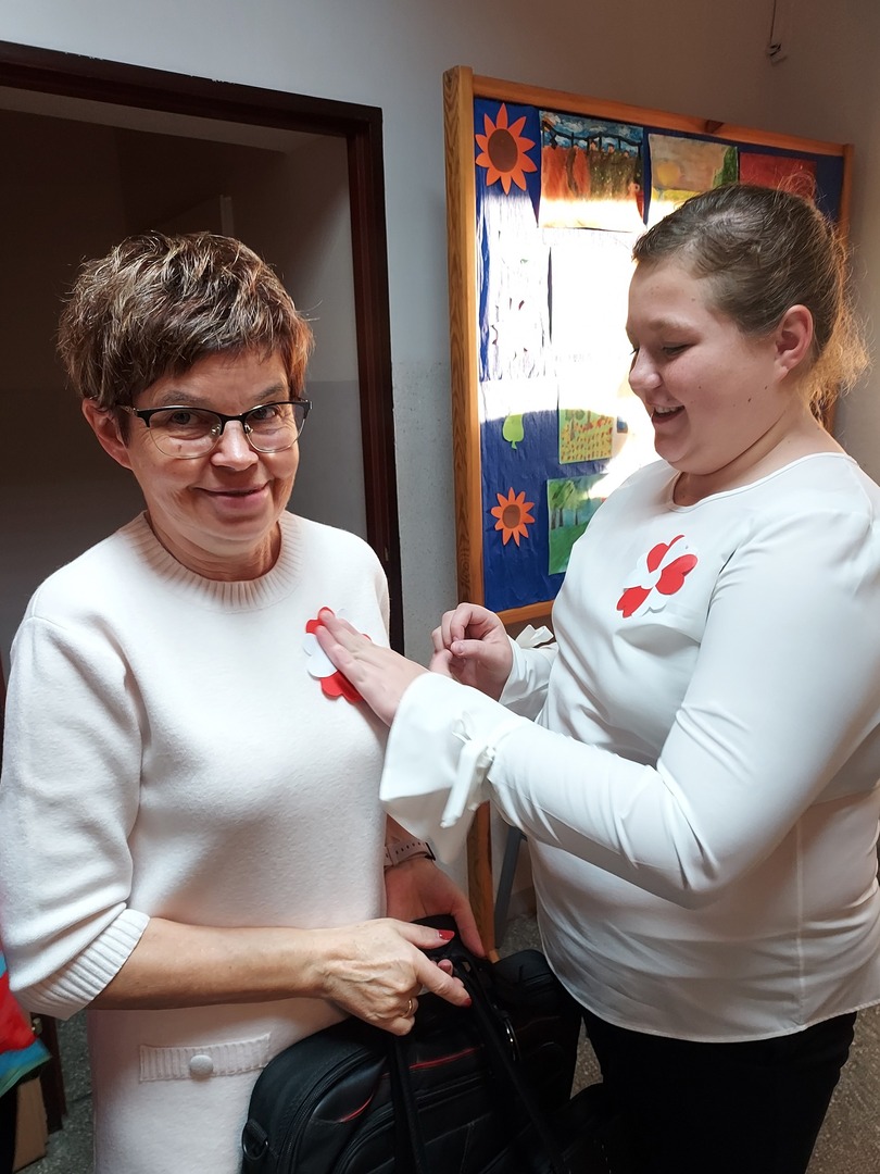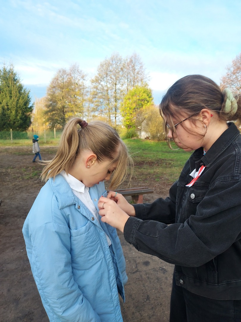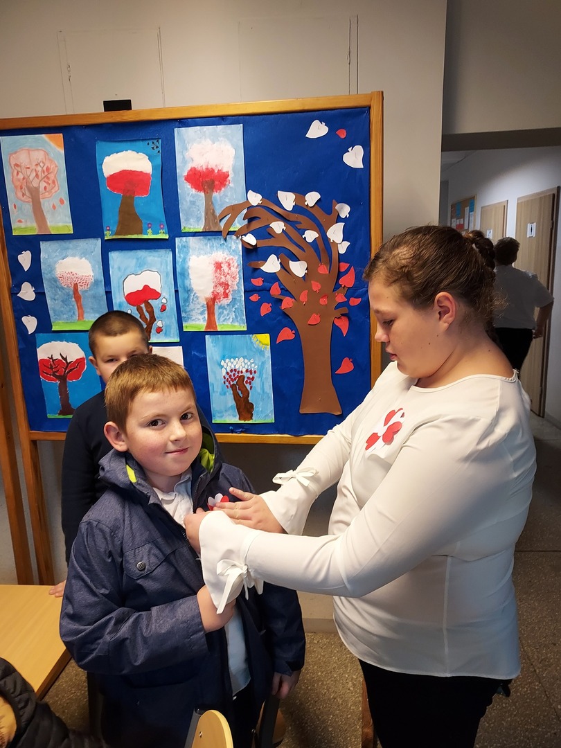 Członkowie Szkolnego Koła Wolontariatu zadbali, aby biel i czerwień - barwy narodowe były widoczne na ubraniach całej społeczności szkolnej🤍❤