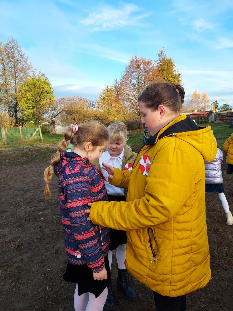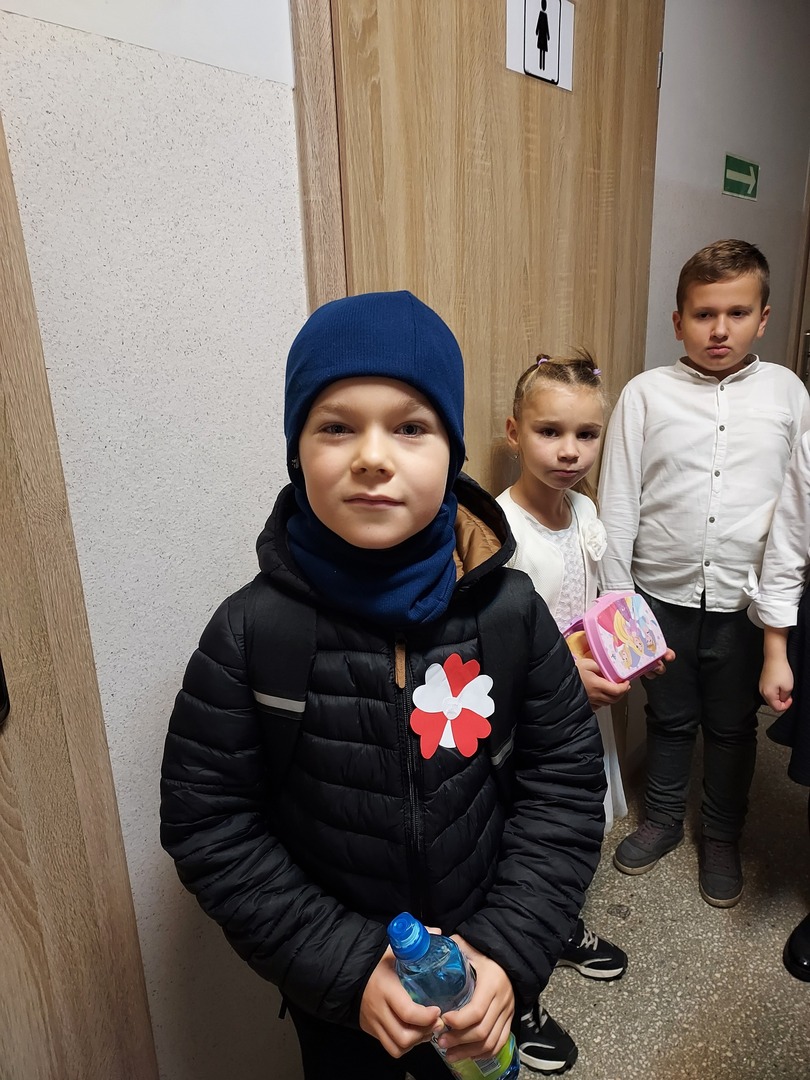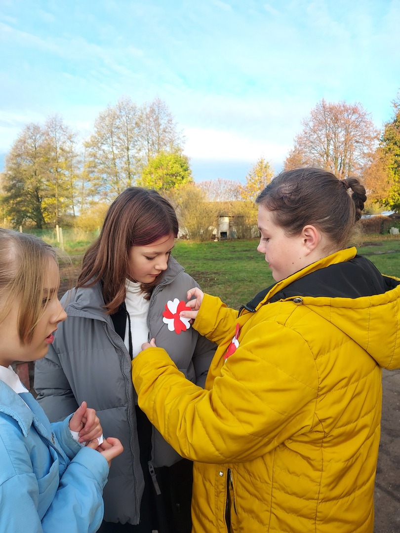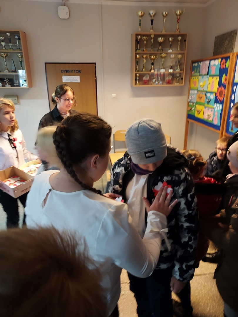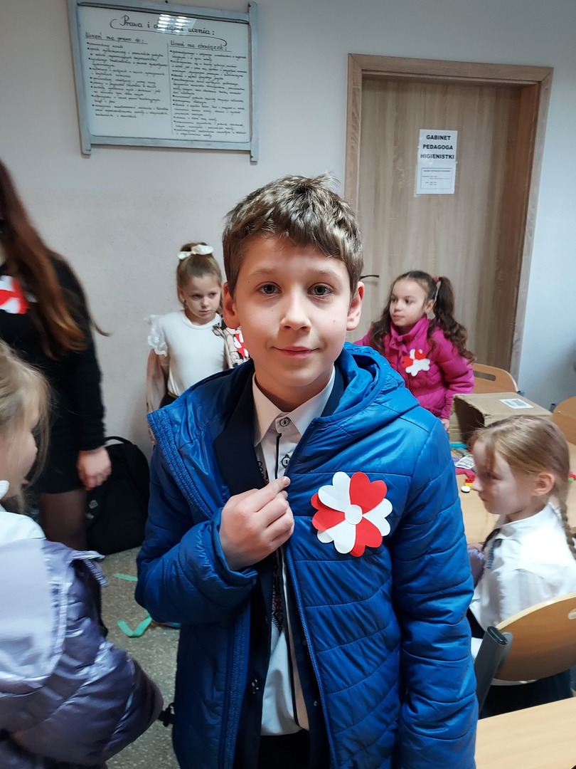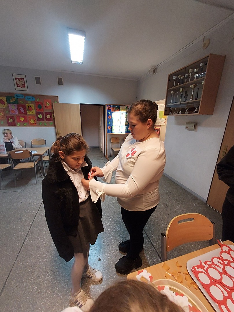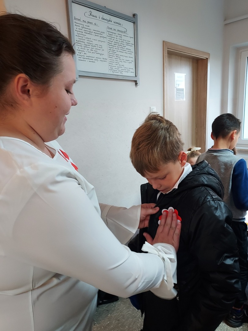 Członkowie Szkolnego Koła Wolontariatu zadbali, aby biel i czerwień - barwy narodowe były widoczne na ubraniach całej społeczności szkolnej🤍❤
