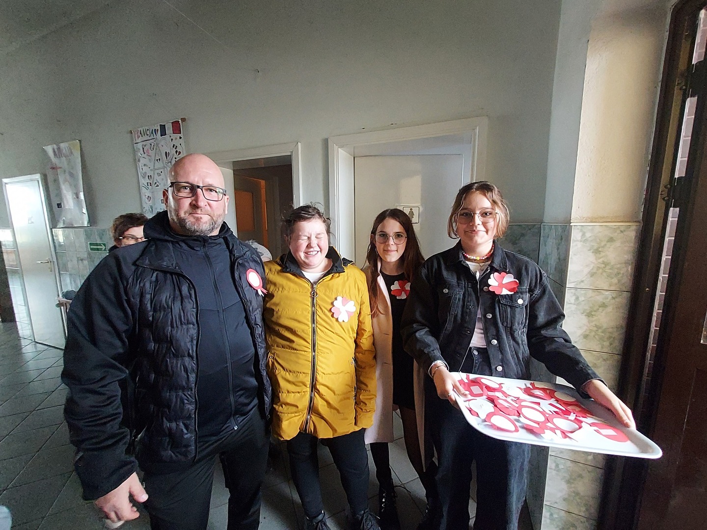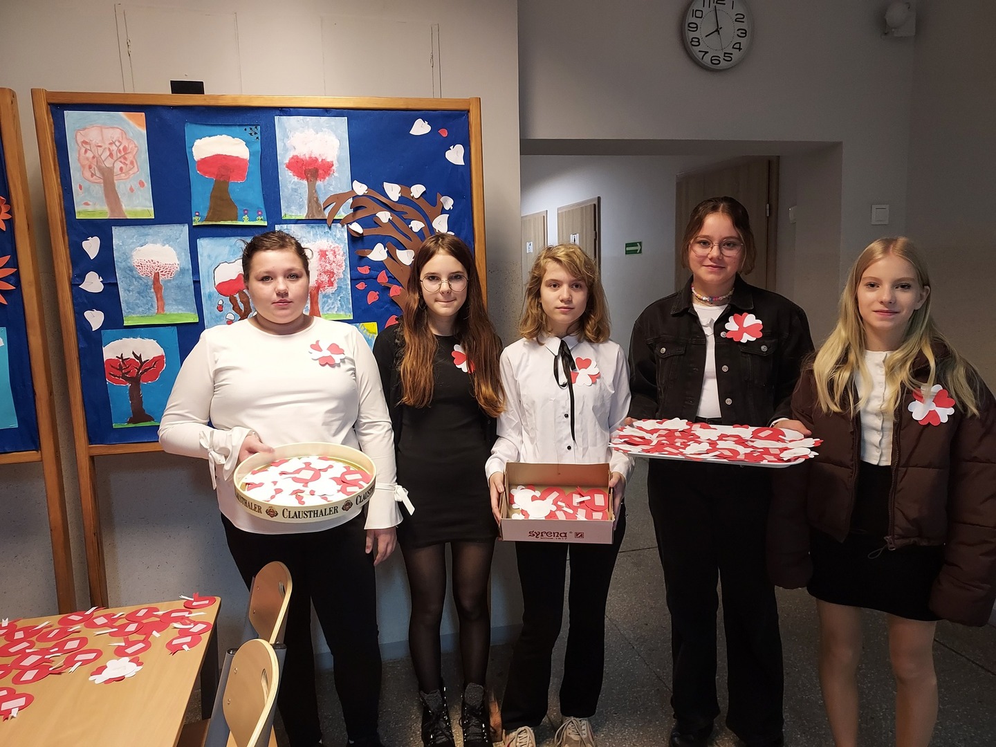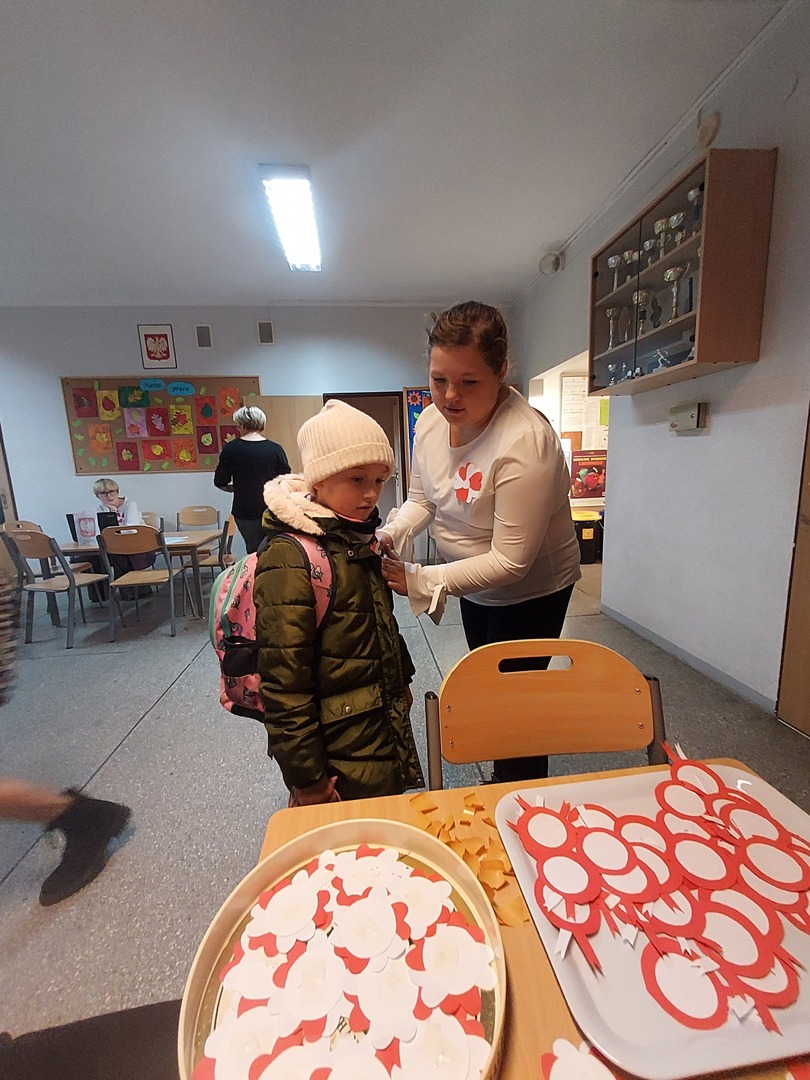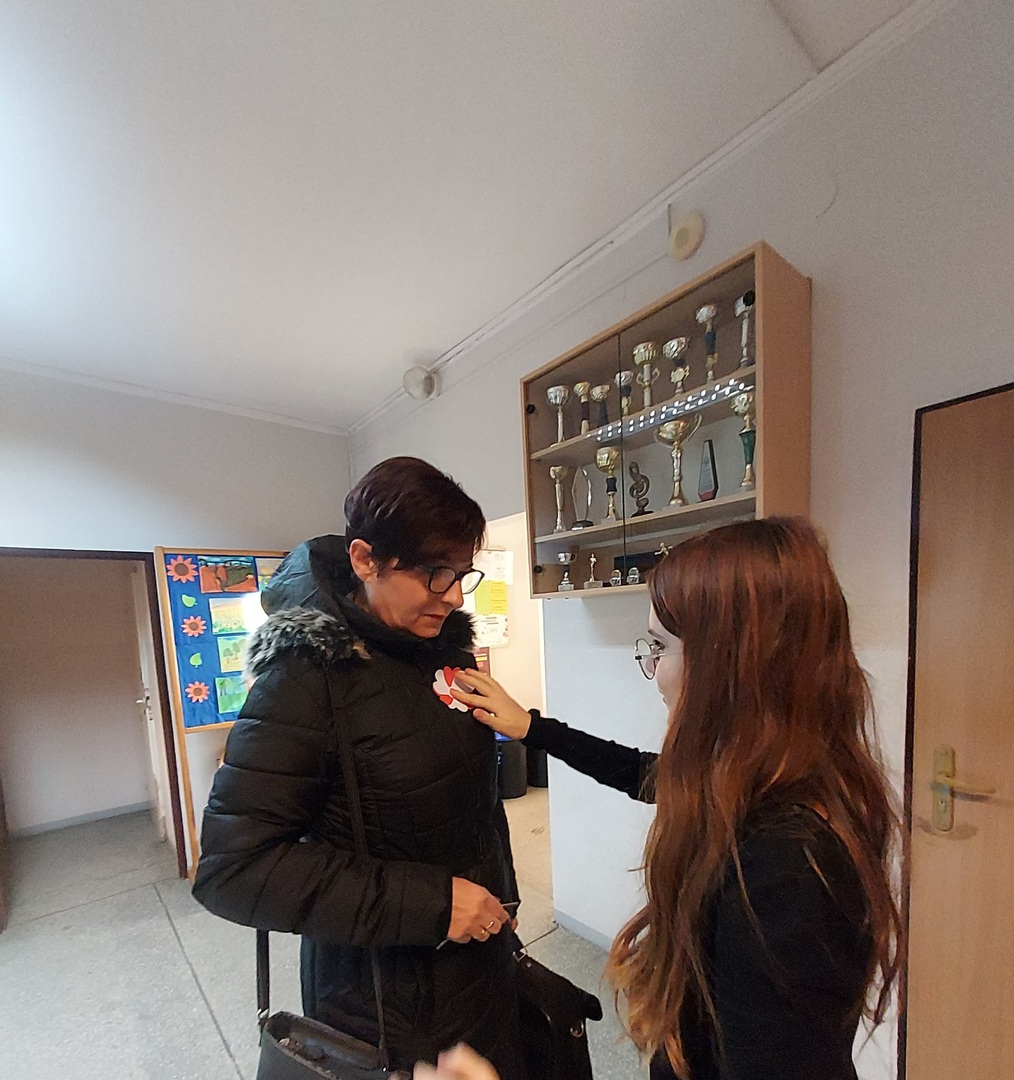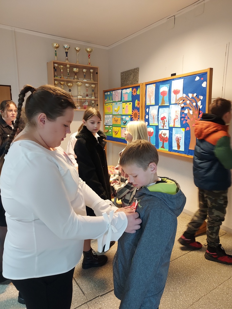Członkowie Szkolnego Koła Wolontariatu zadbali, aby biel i czerwień - barwy narodowe były widoczne na ubraniach całej społeczności szkolnej🤍❤