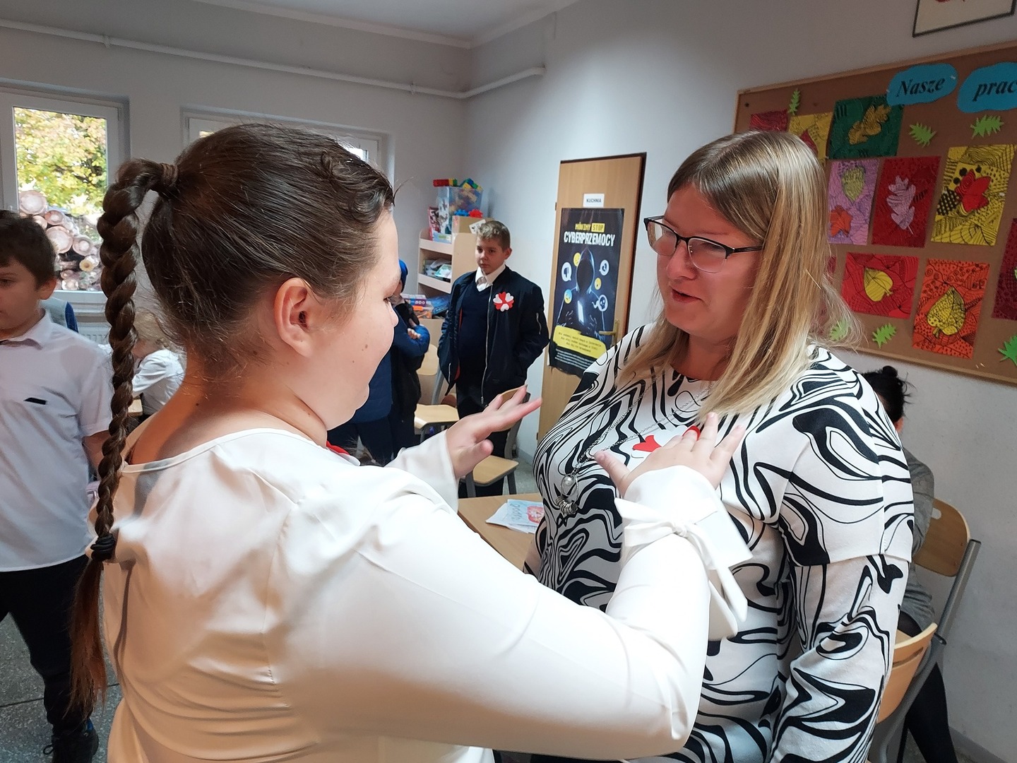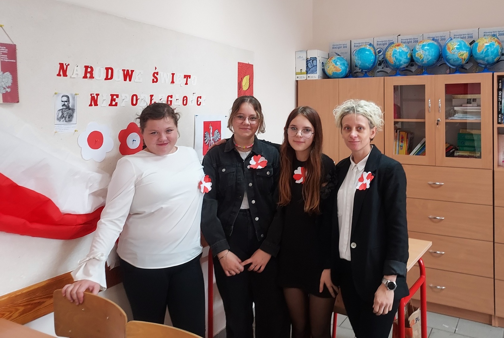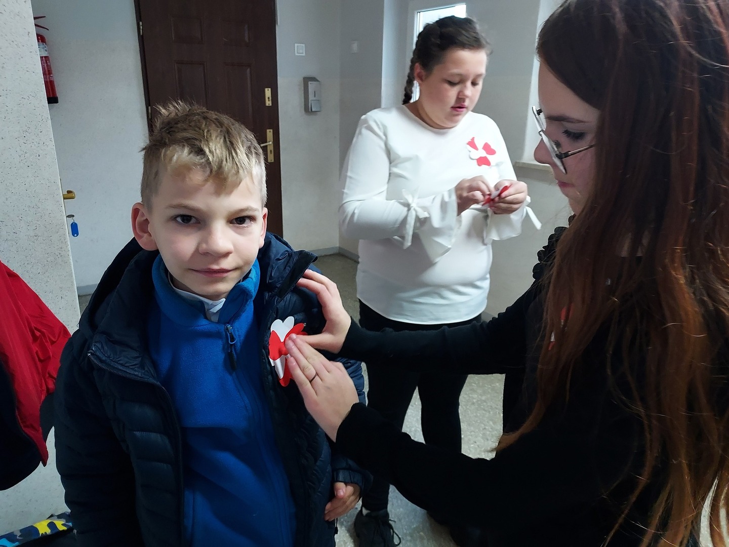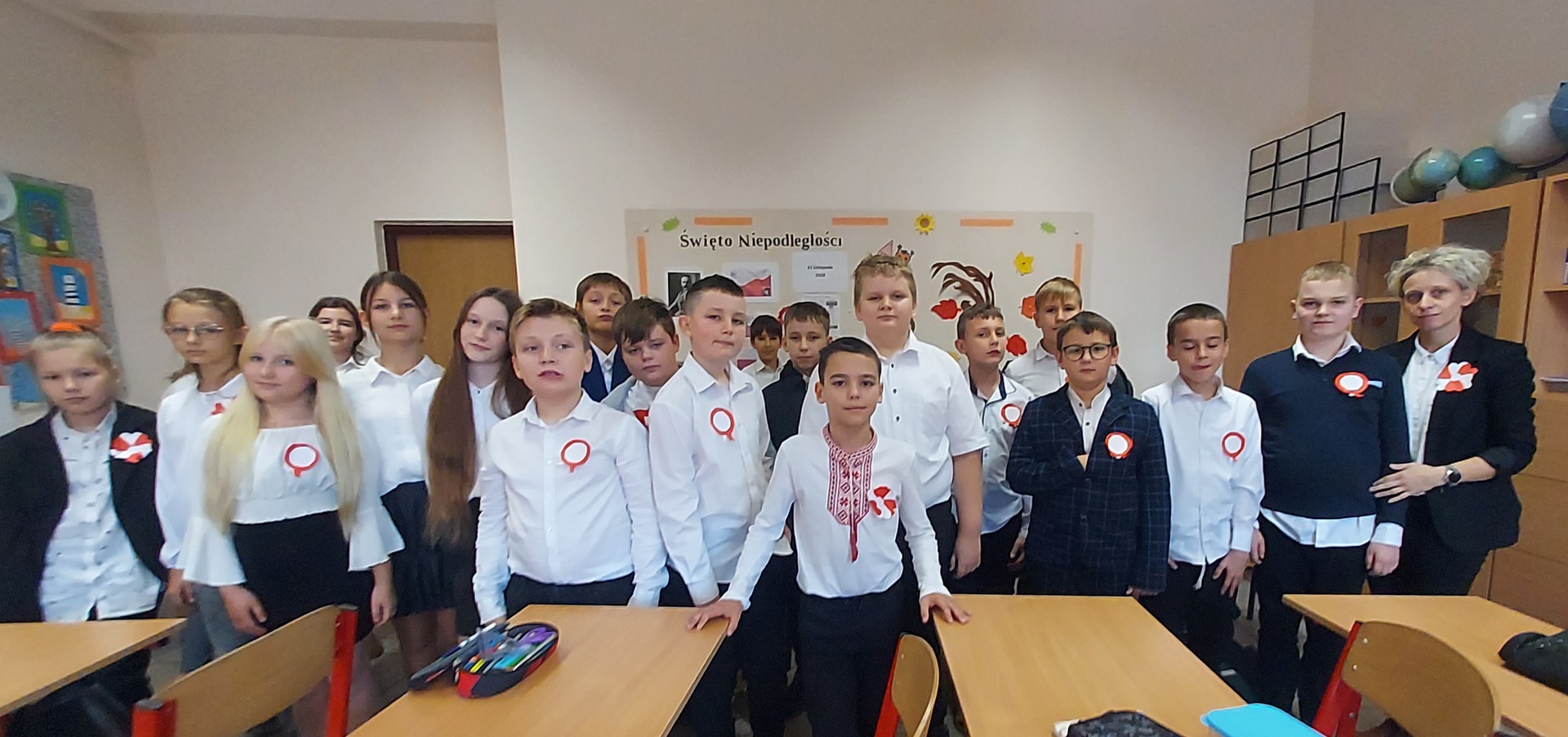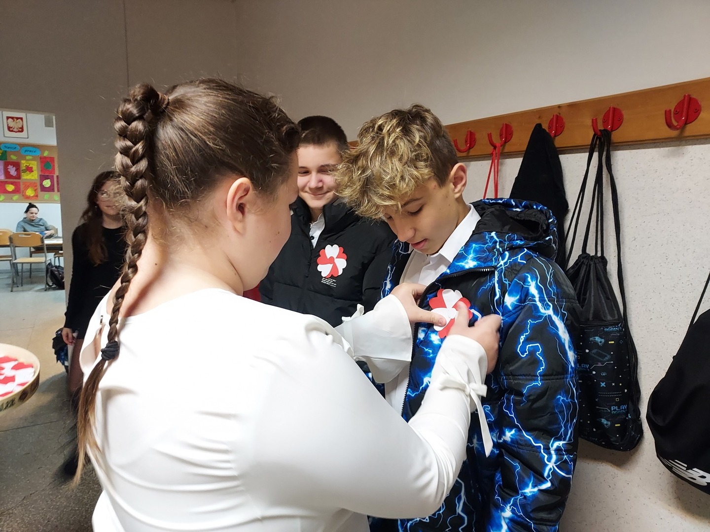 Członkowie Szkolnego Koła Wolontariatu zadbali, aby biel i czerwień - barwy narodowe były widoczne na ubraniach całej społeczności szkolnej🤍❤