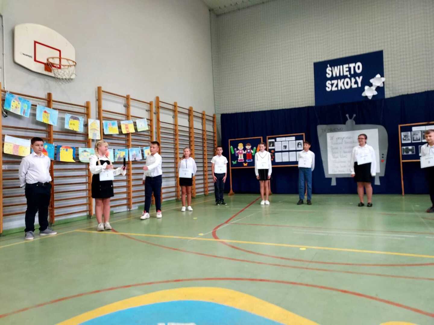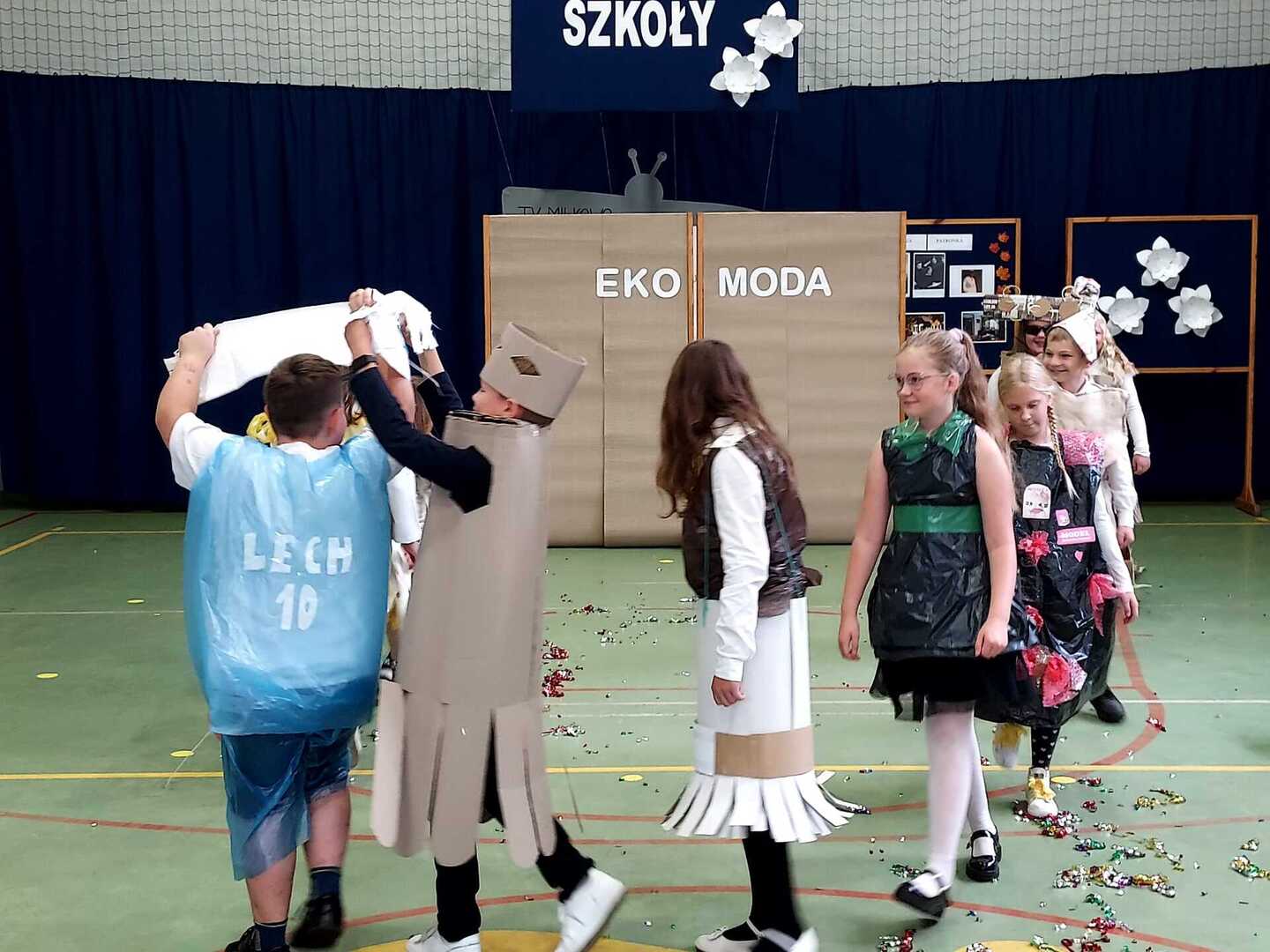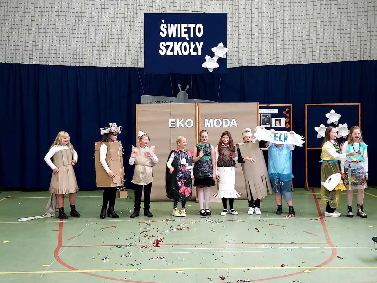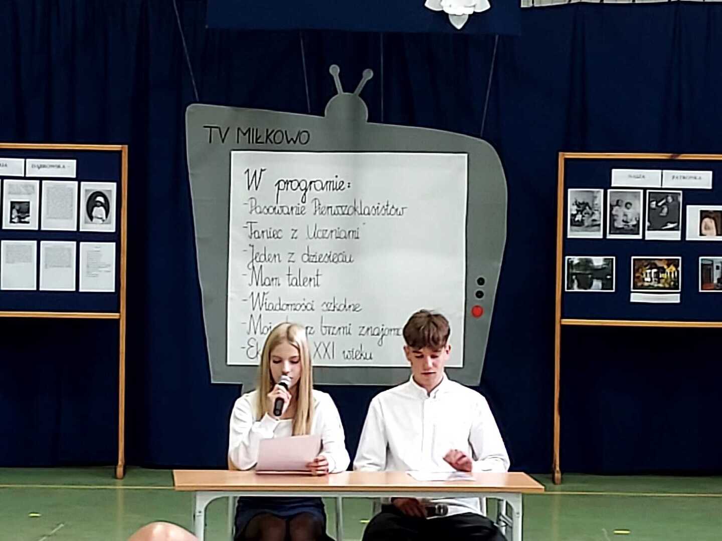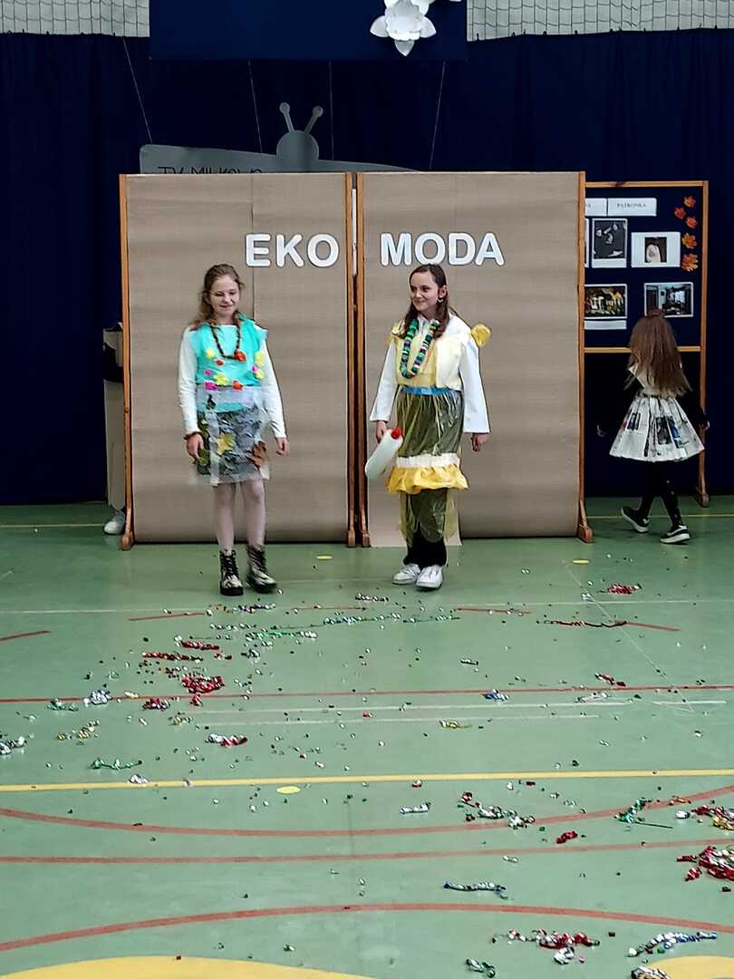 W drugiej części uroczystości odbyły się prezentacje działań projektowych. Nie zabrakło „Tańca z Uczniami” i śpiewu podczas emisji programów „Mam talent” i „Moja twarz brzmi znajomo”. Ponadto uczestnicy sprawdzili się w znanym polskim teleturnieju „Jeden z dziesięciu”. Uczniowie młodszych klas wykonali prace plastyczne, gdzie motywem przewodnim była ich ukochana szkoła. Można było podziwiać ich talenty artystyczne w galerii podczas uroczystości. Uznanie widzów również zyskał pokaz „Eko mody XXI wieku”. Jesteśmy przekonani, że różnorodność występów zaprezentowanych przez poszczególne klasy w pełni zrealizowały zamierzone cele projektu. Pozytywnych wrażeń i emocji nie brakowało.