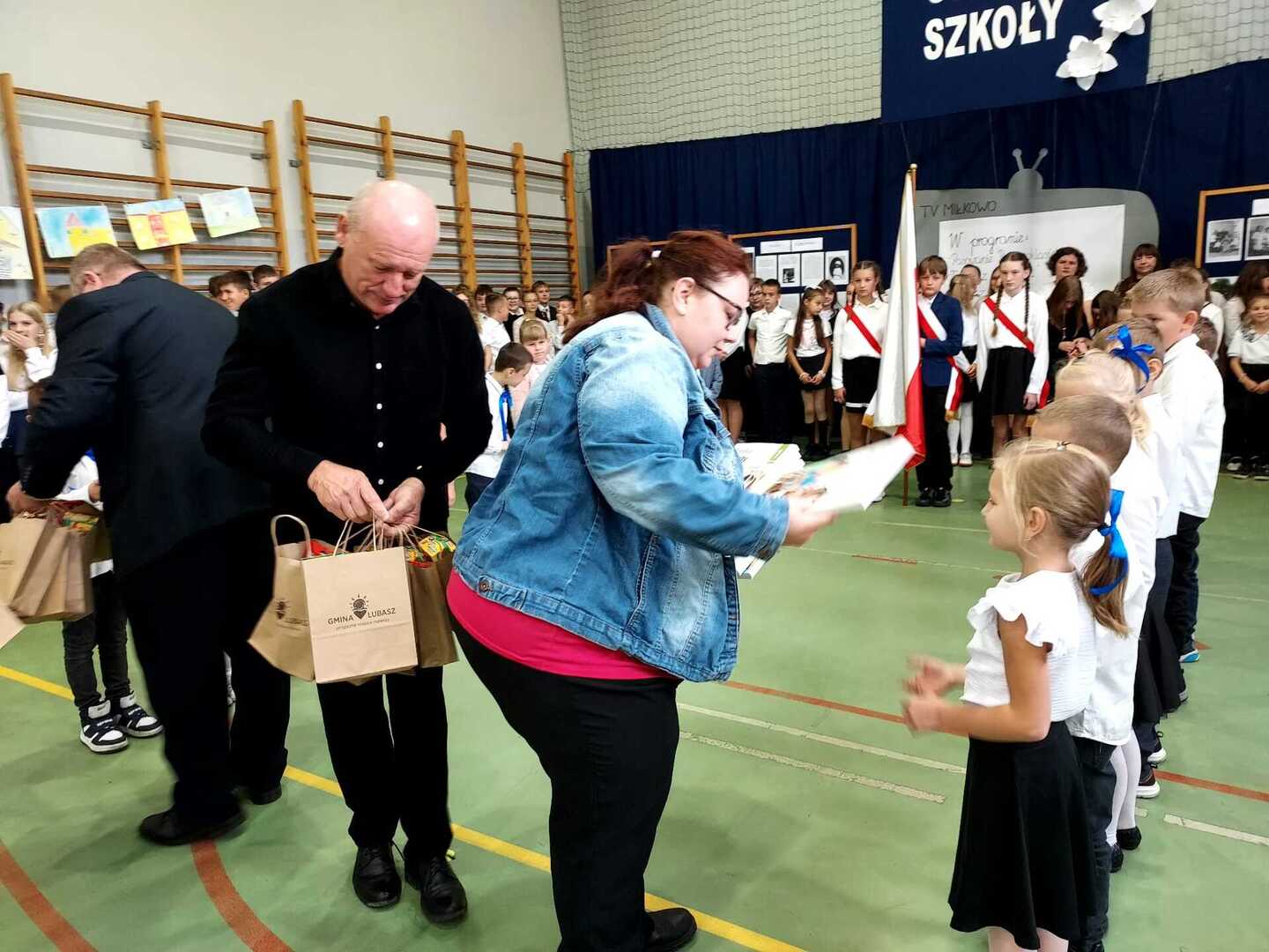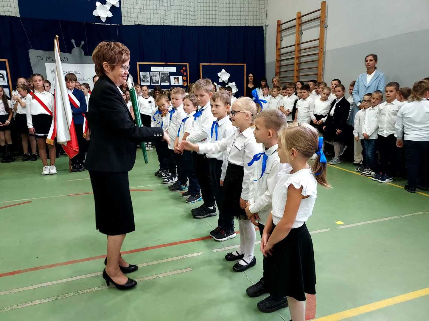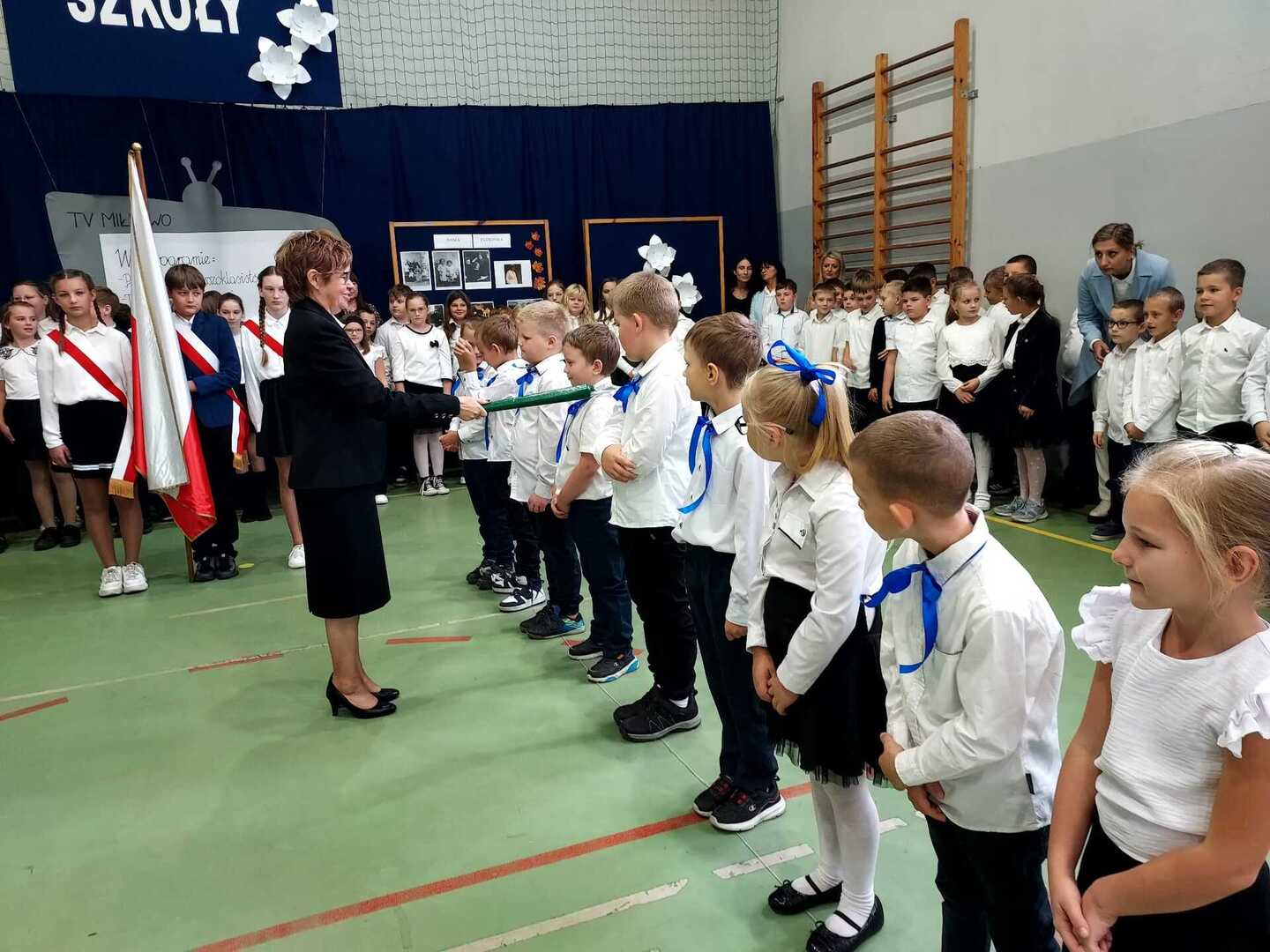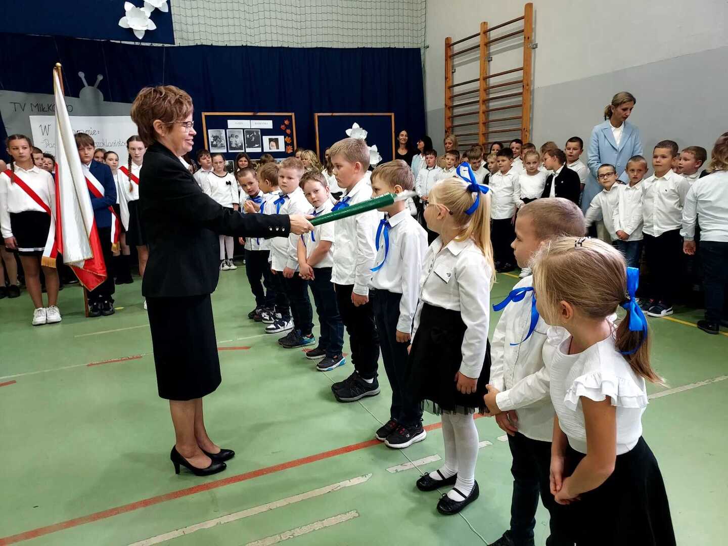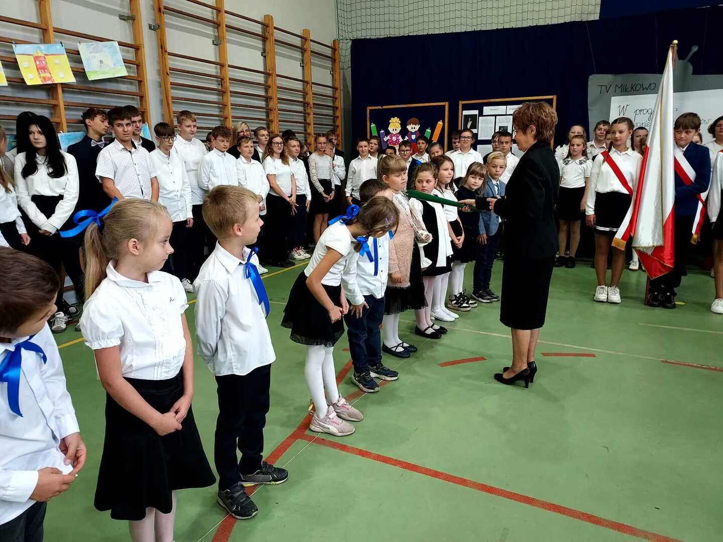 4 października 2024 r. w Naszej Szkole odbył się Dzień Patrona. W części oficjalnej Pani Iwona Wleklak powitała serdecznie Wójta Gminy Lubasz Pana Marcina Filodę, Panią Dyrektor Jolantę Zmyśloną, Dyrektora Gminnego Ośrodka Kultury w Lubaszu Pana Szymona Szweda, Radnych Gminy Lubasz, sołtysów wsi, członków Rady Rodziców, emerytowanych pracowników szkoły, uczniów, nauczycieli i rodziców. W swym przemówieniu Pani Dyrektor znacząco podkreśliła, iż słowa Patronki „Być dobrym dla drugiego człowieka” są drogowskazem do realizacji w szkole dydaktyczno-wychowawczych zamierzeń. Następnie nadszedł moment najważniejszy dla uczniów klasy I, którzy zostali przyjęci w poczet społeczności szkolnej poprzez ślubowanie i pasowanie na ucznia. Ukoronowaniem dokonanego aktu, było wręczenie pierwszoklasistom pamiątkowych dyplomów oraz upominków rzeczowych ufundowanych przez Wójta Gminy Lubasz Pana Marcina Filodę i Radę Rodziców PSP w Miłkowie.