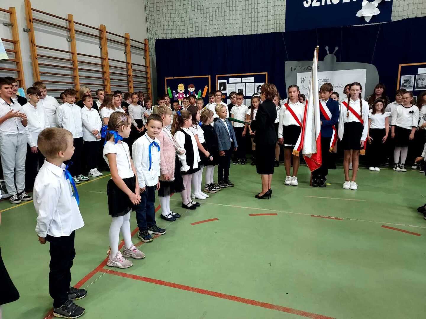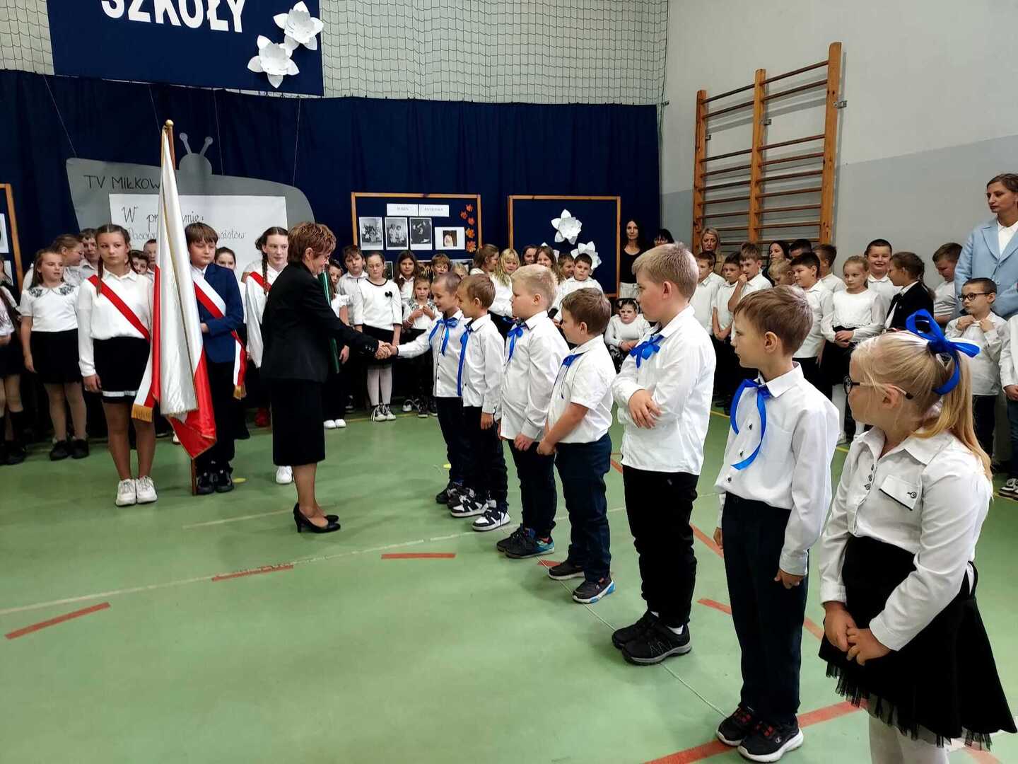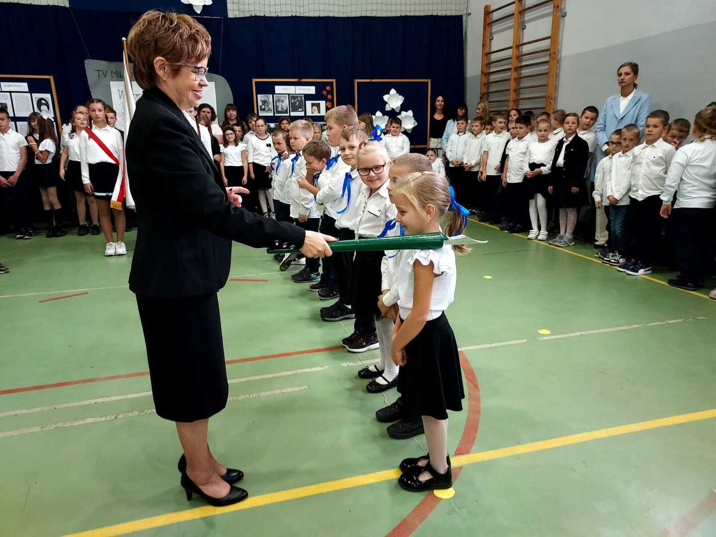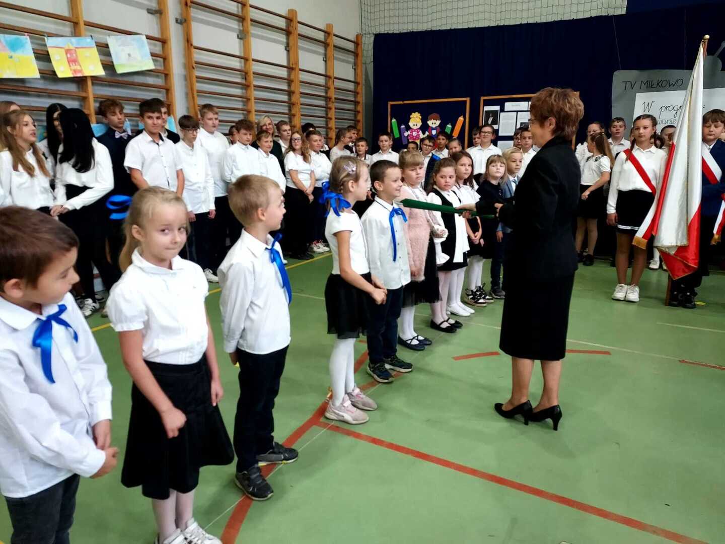 4 października 2024 r. w Naszej Szkole odbył się Dzień Patrona. W części oficjalnej Pani Iwona Wleklak powitała serdecznie Wójta Gminy Lubasz Pana Marcina Filodę, Panią Dyrektor Jolantę Zmyśloną, Dyrektora Gminnego Ośrodka Kultury w Lubaszu Pana Szymona Szweda, Radnych Gminy Lubasz, sołtysów wsi, członków Rady Rodziców, emerytowanych pracowników szkoły, uczniów, nauczycieli i rodziców. W swym przemówieniu Pani Dyrektor znacząco podkreśliła, iż słowa Patronki „Być dobrym dla drugiego człowieka” są drogowskazem do realizacji w szkole dydaktyczno-wychowawczych zamierzeń. Następnie nadszedł moment najważniejszy dla uczniów klasy I, którzy zostali przyjęci w poczet społeczności szkolnej poprzez ślubowanie i pasowanie na ucznia. Ukoronowaniem dokonanego aktu, było wręczenie pierwszoklasistom pamiątkowych dyplomów oraz upominków rzeczowych ufundowanych przez Wójta Gminy Lubasz Pana Marcina Filodę i Radę Rodziców PSP w Miłkowie.
