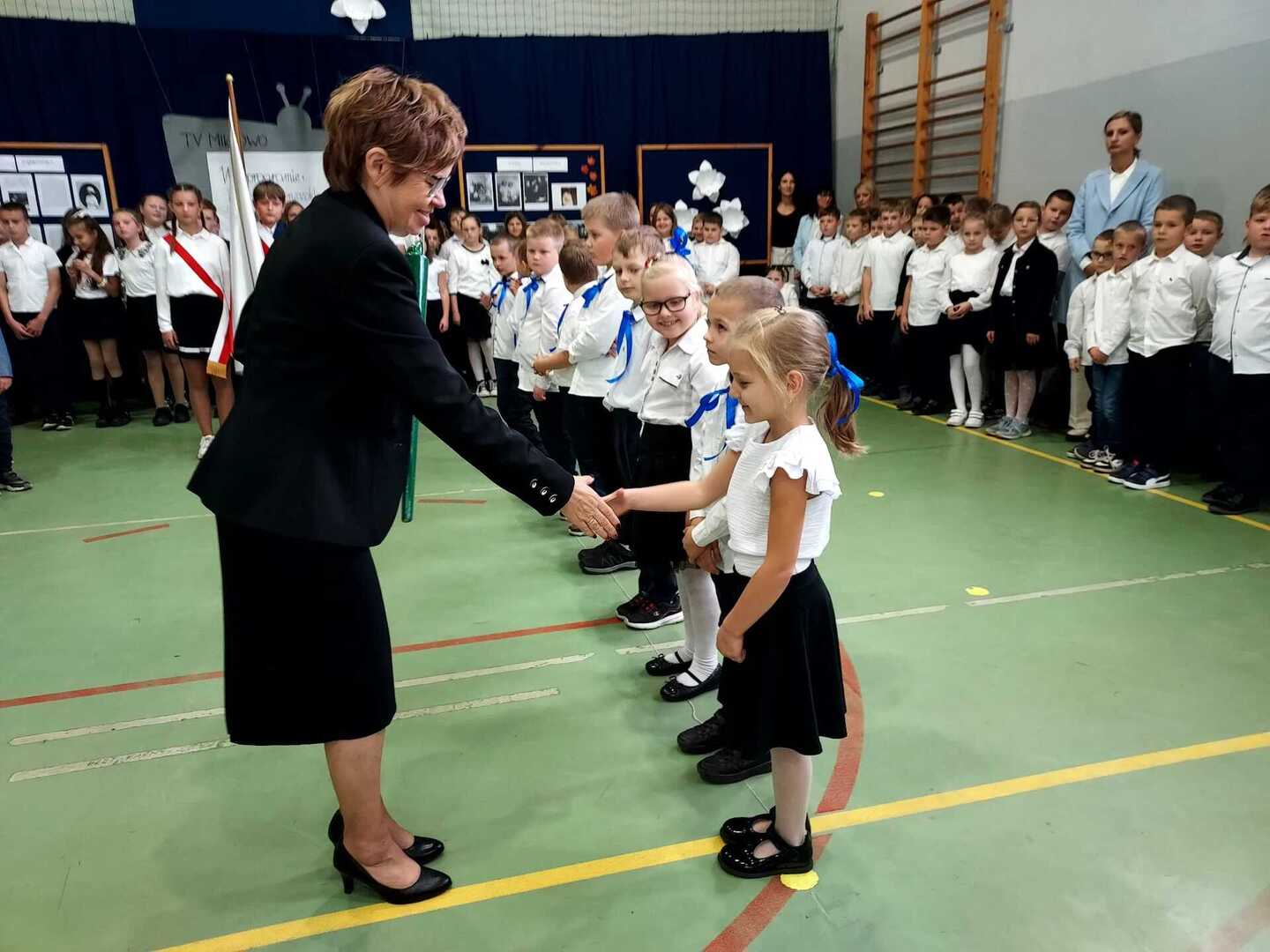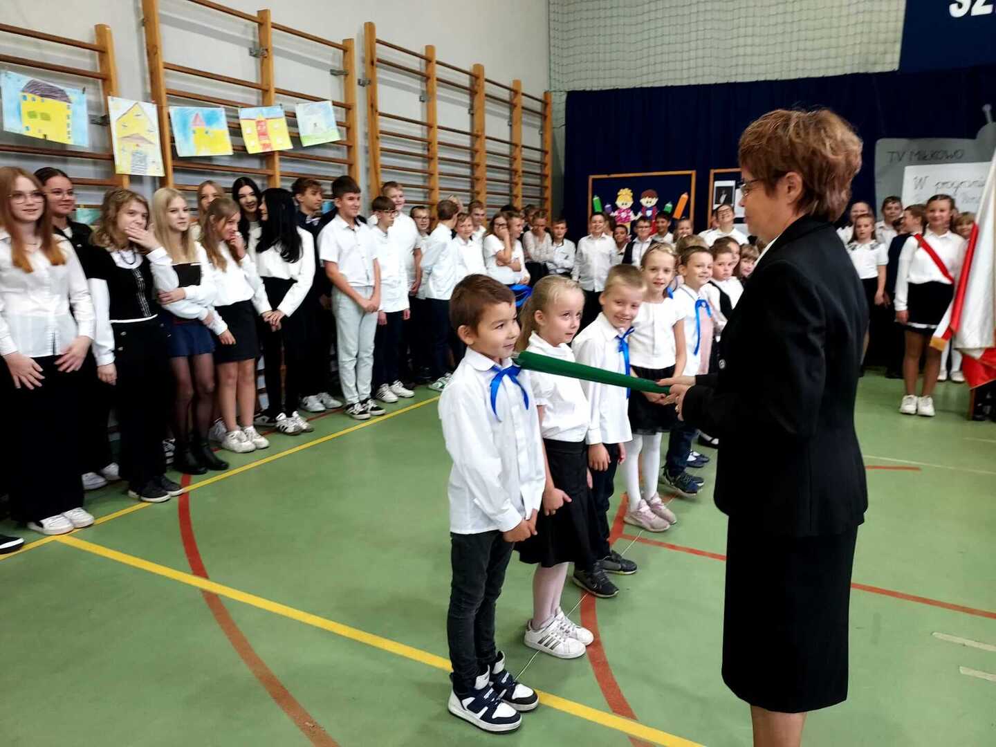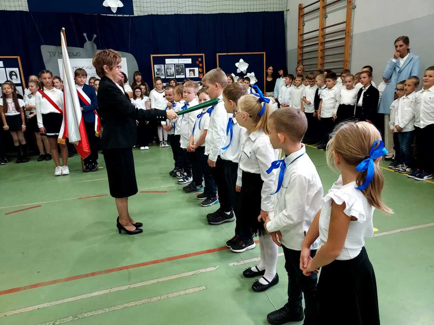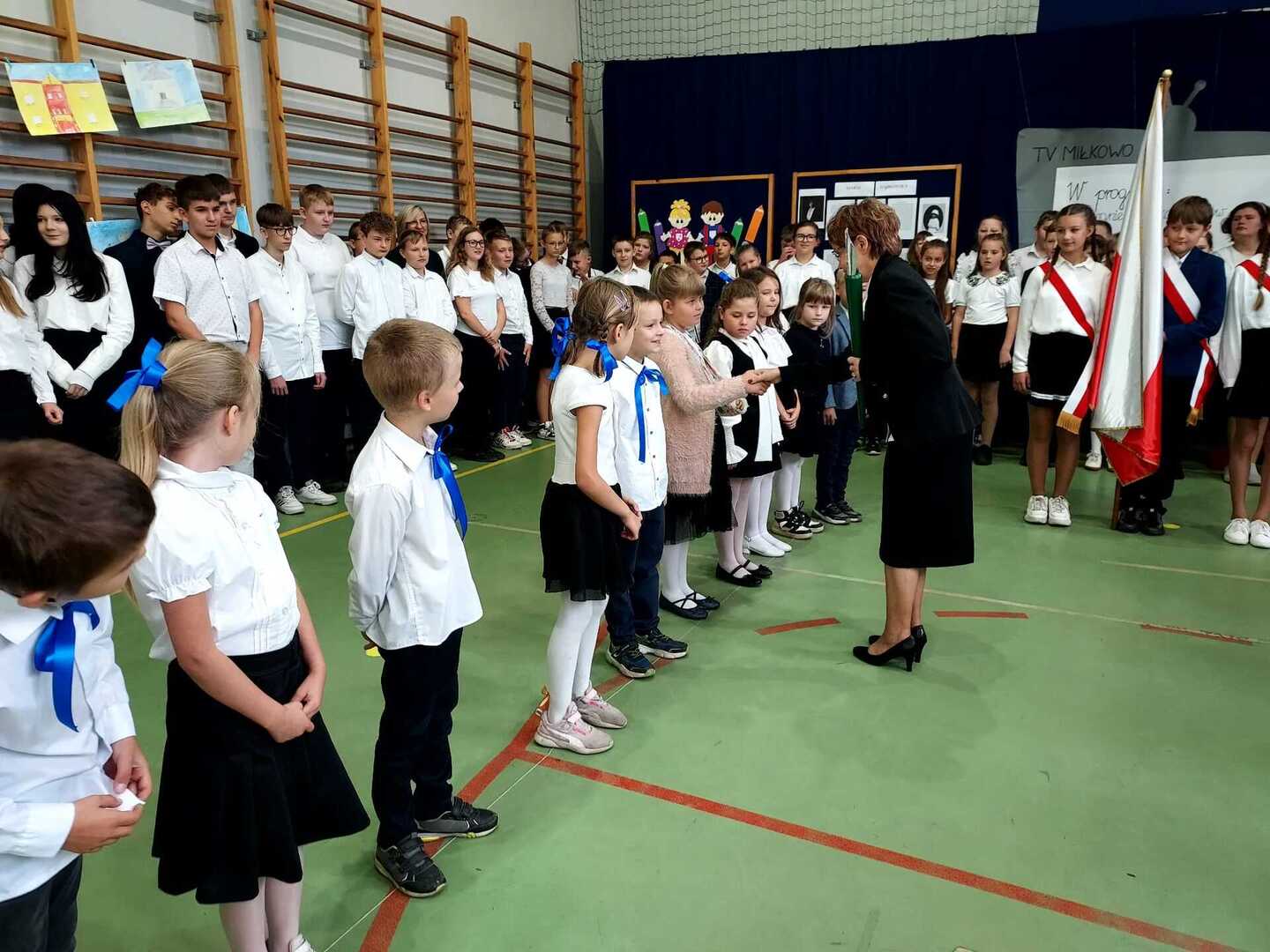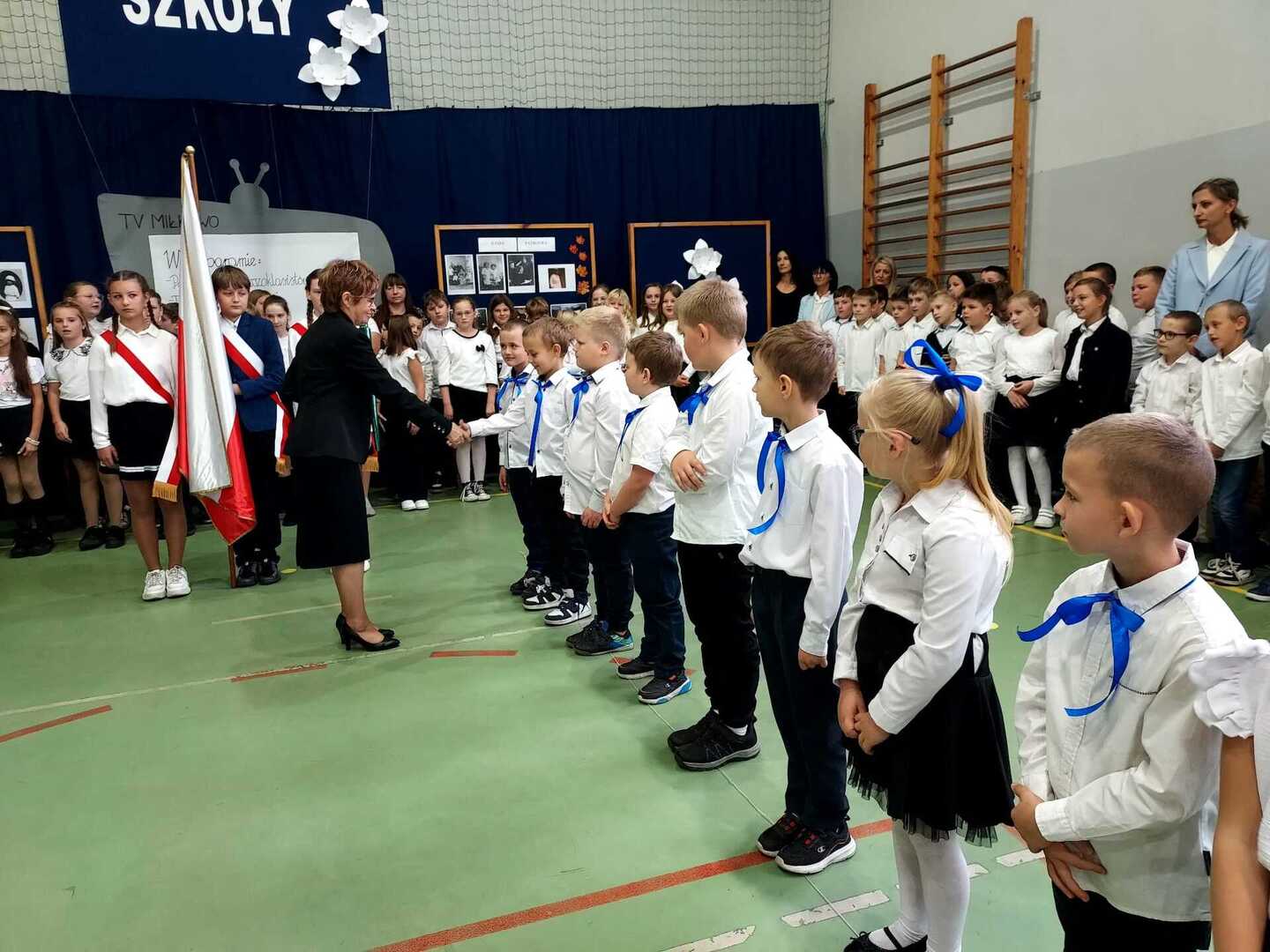 4 października 2024 r. w Naszej Szkole odbył się Dzień Patrona. W części oficjalnej Pani Iwona Wleklak powitała serdecznie Wójta Gminy Lubasz Pana Marcina Filodę, Panią Dyrektor Jolantę Zmyśloną, Dyrektora Gminnego Ośrodka Kultury w Lubaszu Pana Szymona Szweda, Radnych Gminy Lubasz, sołtysów wsi, członków Rady Rodziców, emerytowanych pracowników szkoły, uczniów, nauczycieli i rodziców. W swym przemówieniu Pani Dyrektor znacząco podkreśliła, iż słowa Patronki „Być dobrym dla drugiego człowieka” są drogowskazem do realizacji w szkole dydaktyczno-wychowawczych zamierzeń. Następnie nadszedł moment najważniejszy dla uczniów klasy I, którzy zostali przyjęci w poczet społeczności szkolnej poprzez ślubowanie i pasowanie na ucznia. Ukoronowaniem dokonanego aktu, było wręczenie pierwszoklasistom pamiątkowych dyplomów oraz upominków rzeczowych ufundowanych przez Wójta Gminy Lubasz Pana Marcina Filodę i Radę Rodziców PSP w Miłkowie.