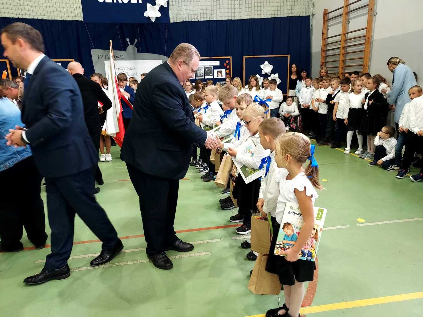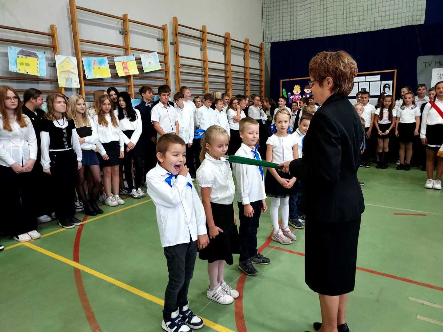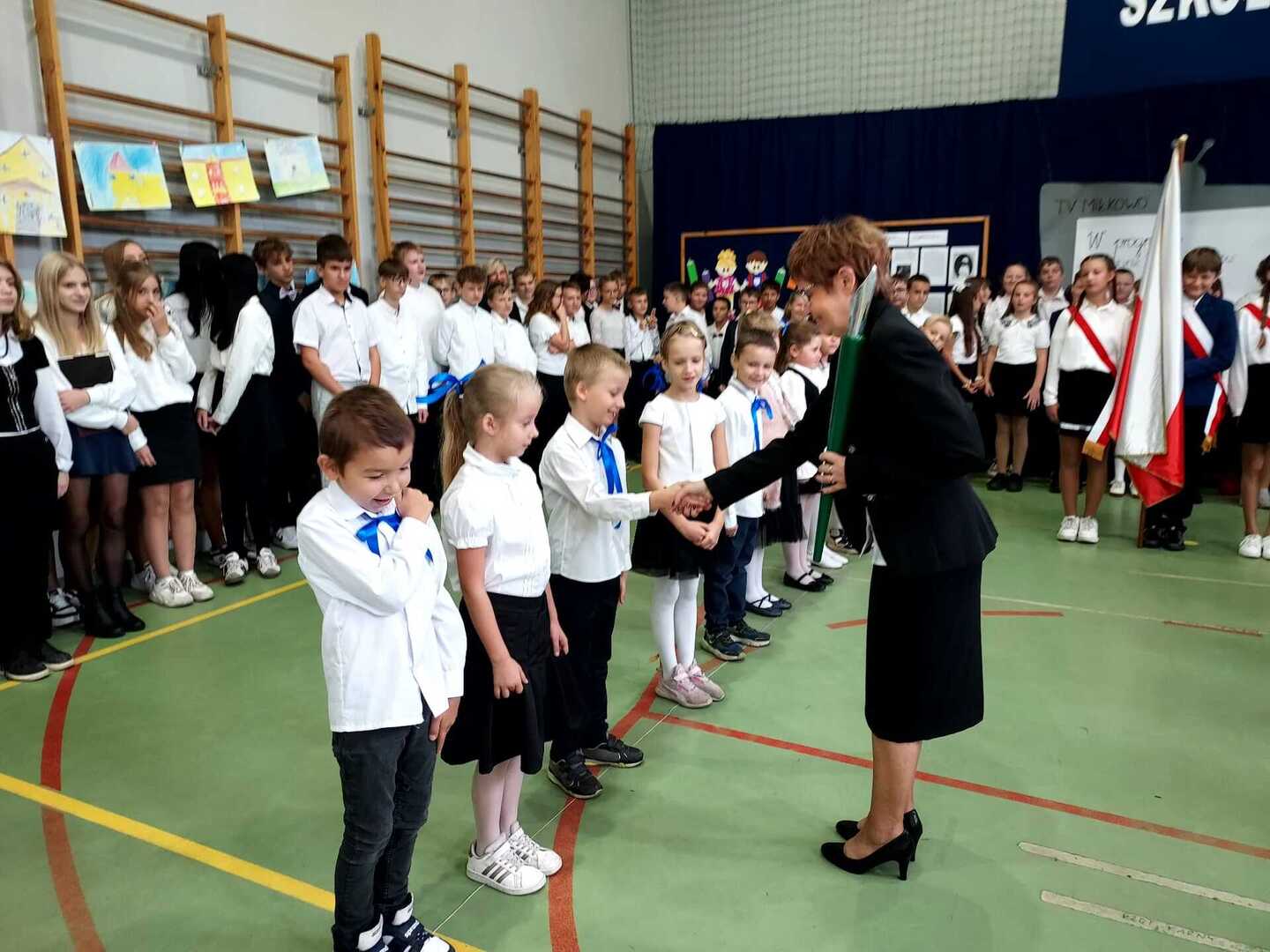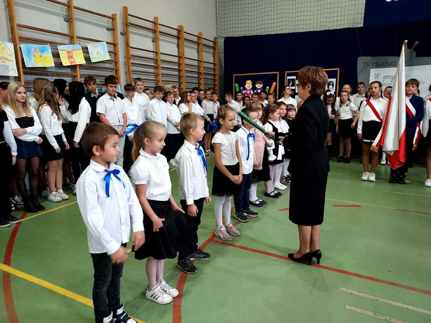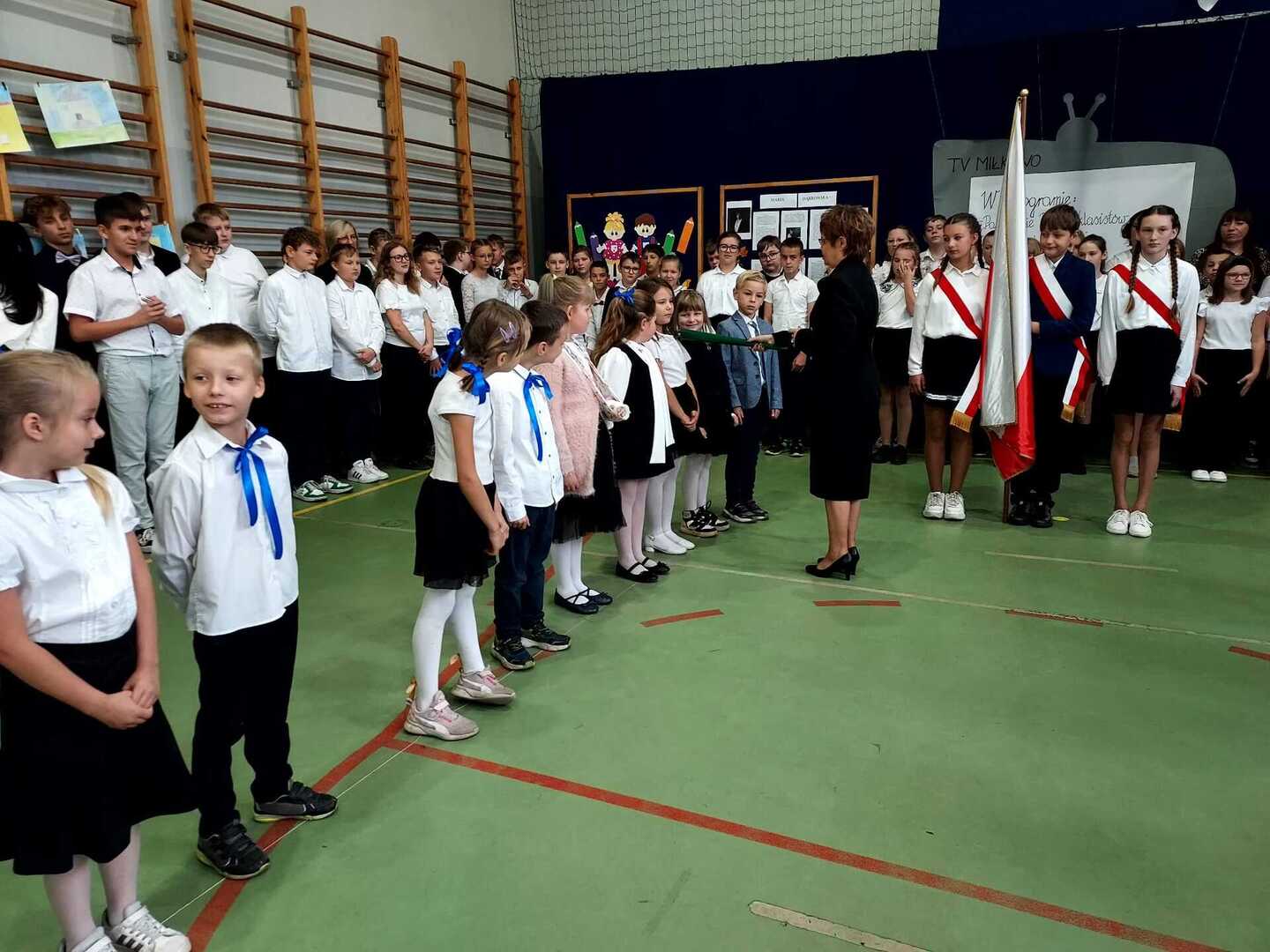 4 października 2024 r. w Naszej Szkole odbył się Dzień Patrona. W części oficjalnej Pani Iwona Wleklak powitała serdecznie Wójta Gminy Lubasz Pana Marcina Filodę, Panią Dyrektor Jolantę Zmyśloną, Dyrektora Gminnego Ośrodka Kultury w Lubaszu Pana Szymona Szweda, Radnych Gminy Lubasz, sołtysów wsi, członków Rady Rodziców, emerytowanych pracowników szkoły, uczniów, nauczycieli i rodziców. W swym przemówieniu Pani Dyrektor znacząco podkreśliła, iż słowa Patronki „Być dobrym dla drugiego człowieka” są drogowskazem do realizacji w szkole dydaktyczno-wychowawczych zamierzeń. Następnie nadszedł moment najważniejszy dla uczniów klasy I, którzy zostali przyjęci w poczet społeczności szkolnej poprzez ślubowanie i pasowanie na ucznia. Ukoronowaniem dokonanego aktu, było wręczenie pierwszoklasistom pamiątkowych dyplomów oraz upominków rzeczowych ufundowanych przez Wójta Gminy Lubasz Pana Marcina Filodę i Radę Rodziców PSP w Miłkowie.