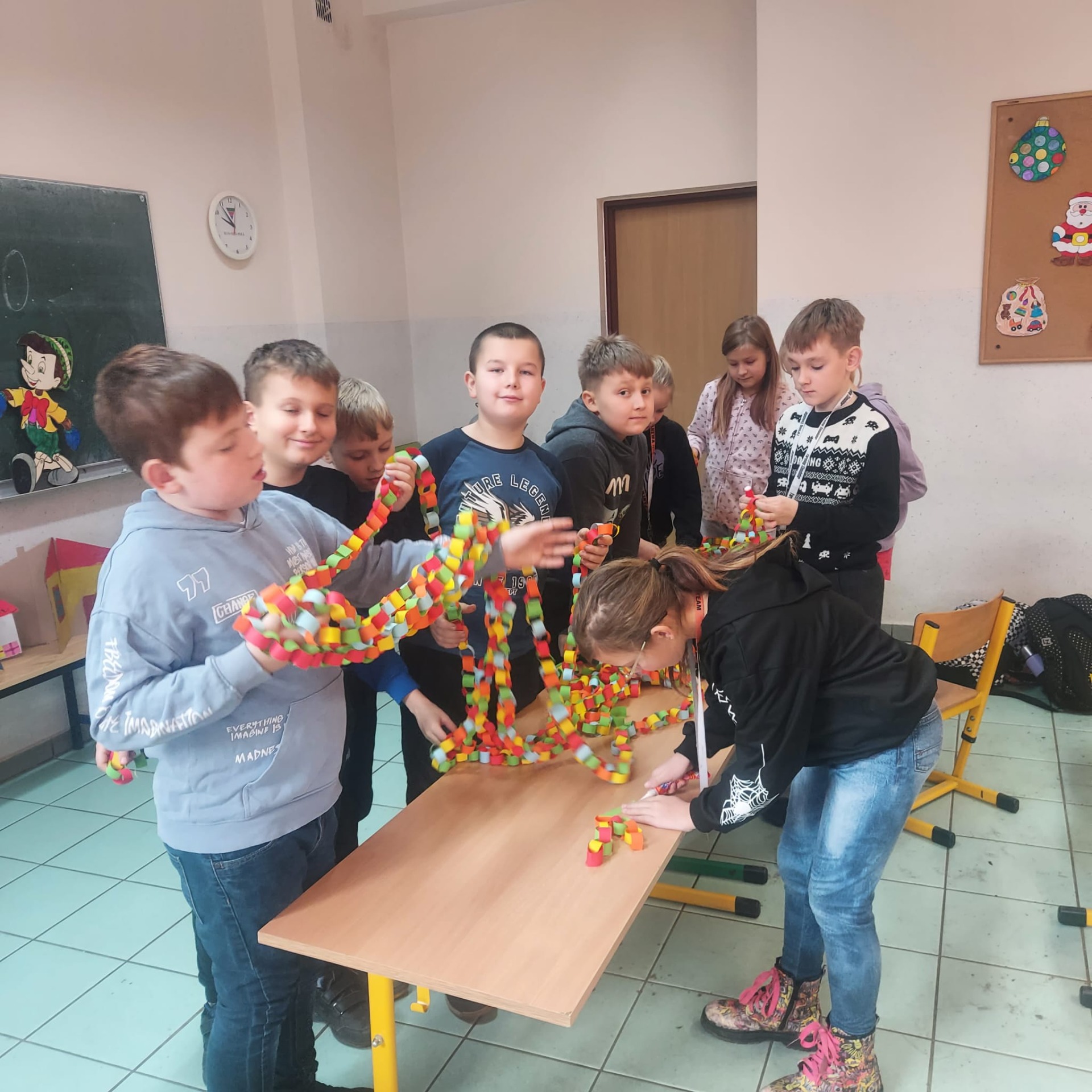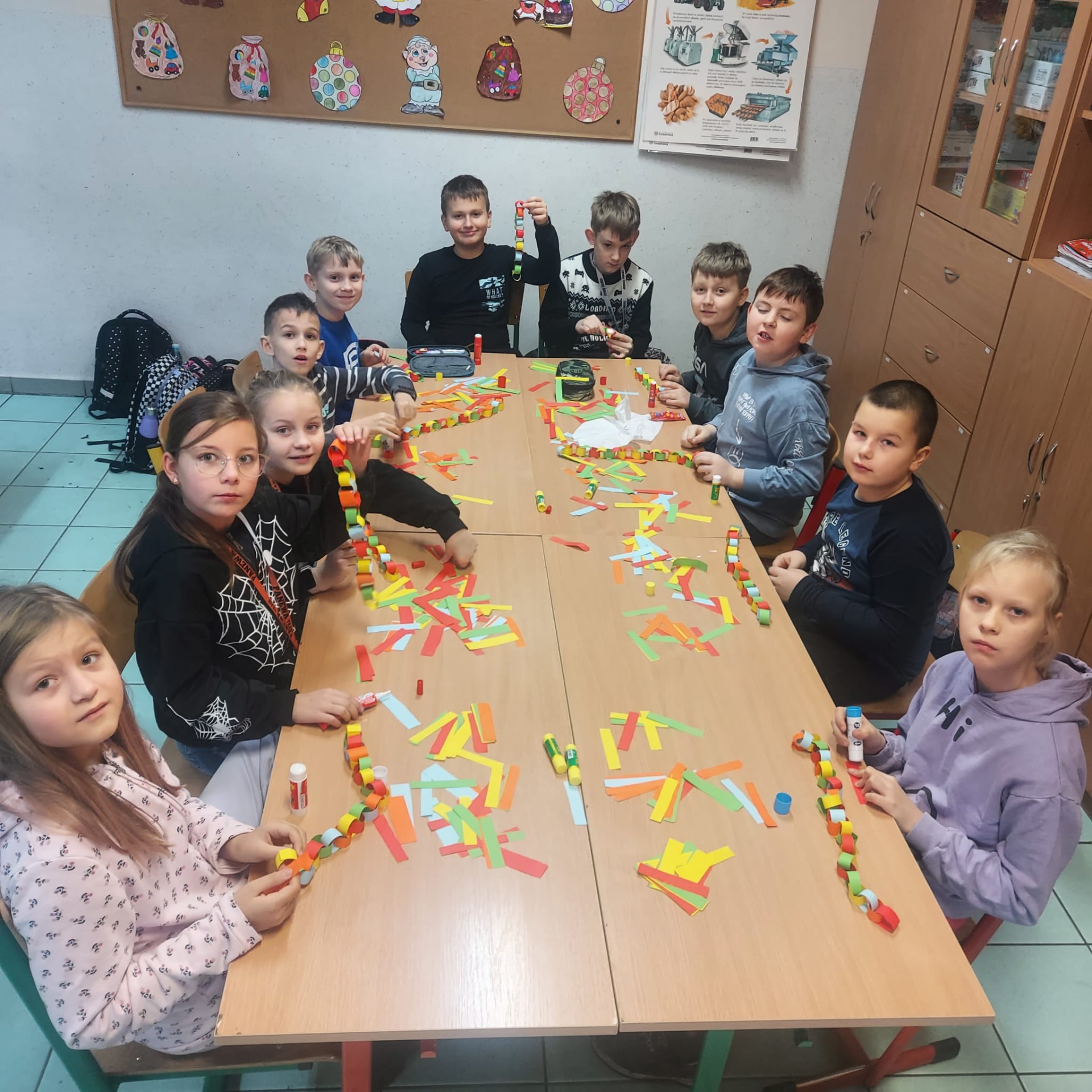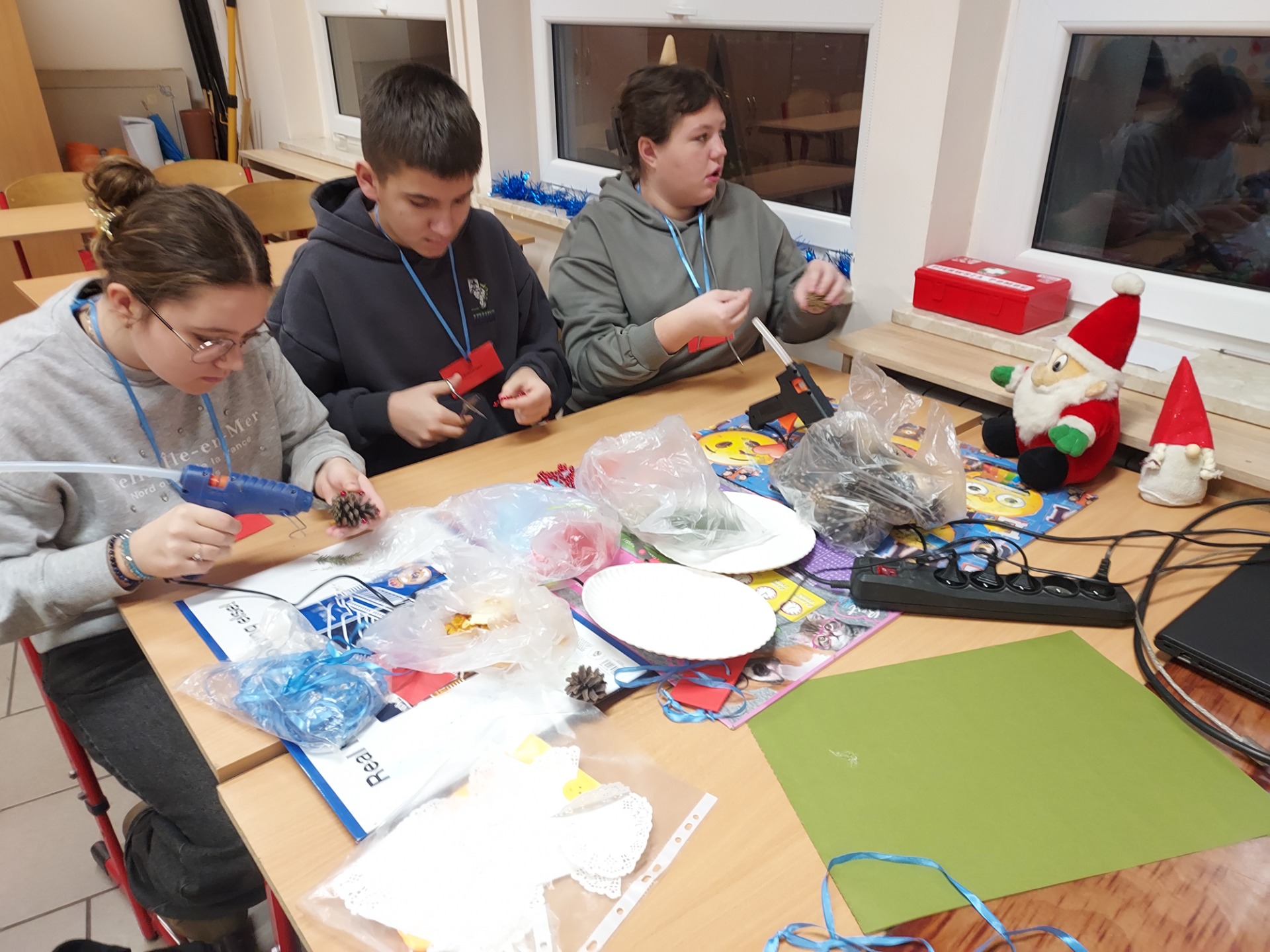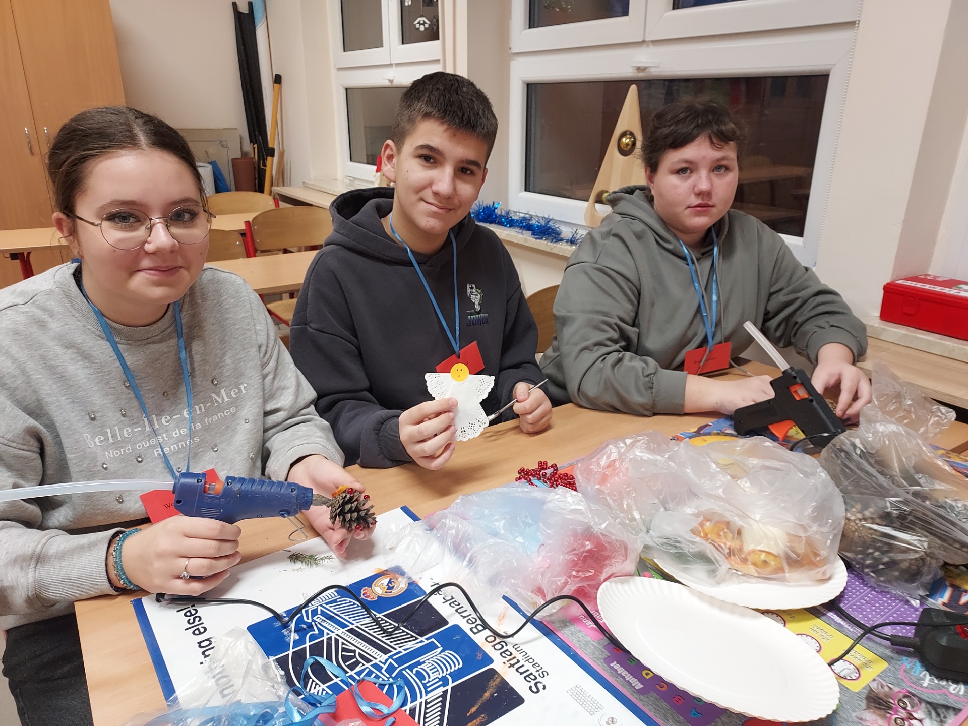 🌲🌲🌲Zaangażowanie uczniów i wolontariuszy w wykonanie ozdób choinkowych, które przyozdobią drzewko na kiermaszu świątecznym przed biblioteką w Lubaszu🌲🌲🌲