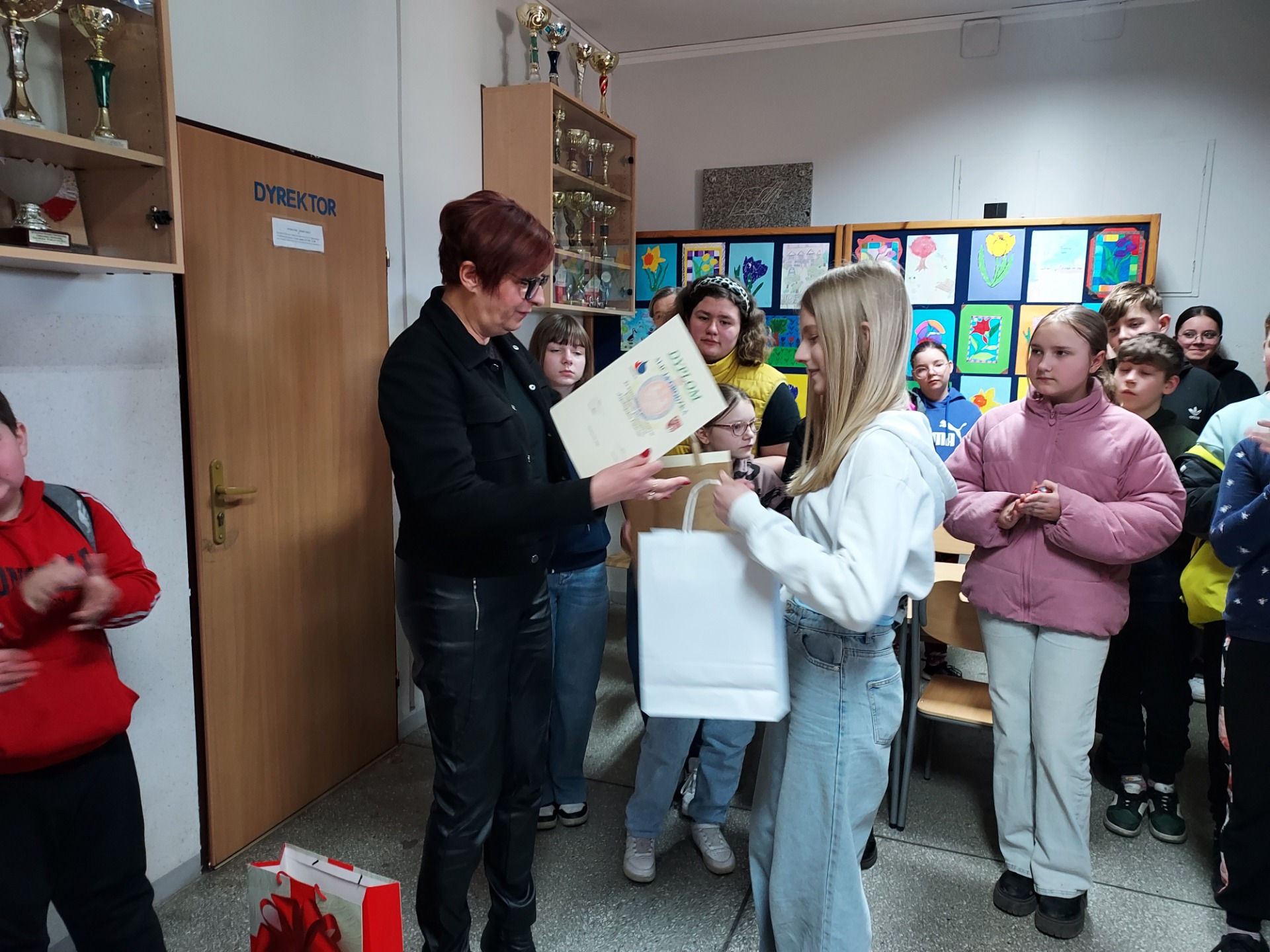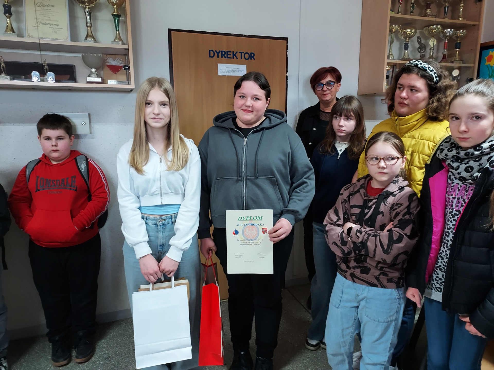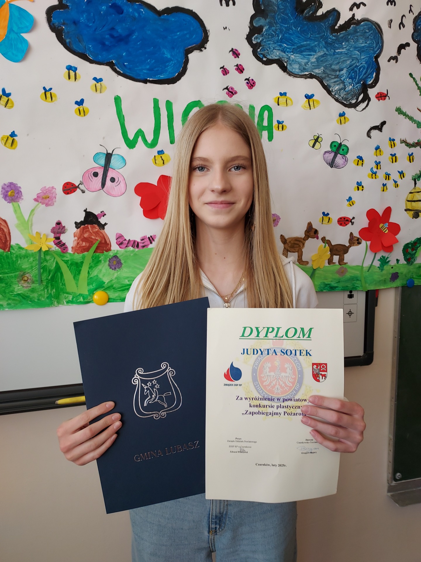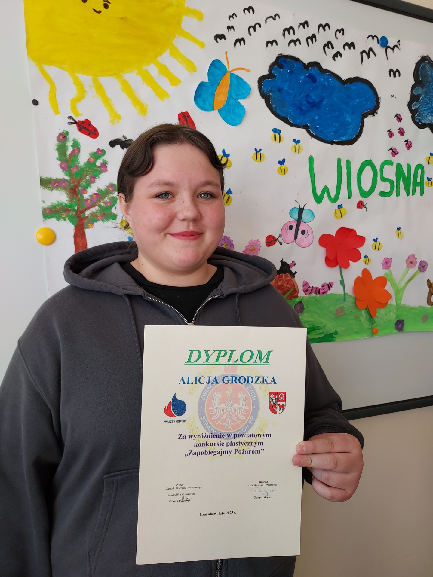 Nagrodzeni w konkursie plastycznym ,,Zapobiegajmy pożarom!"Alicja Grodzka i Judyta Sotek. GRATULUJEMY!!!
