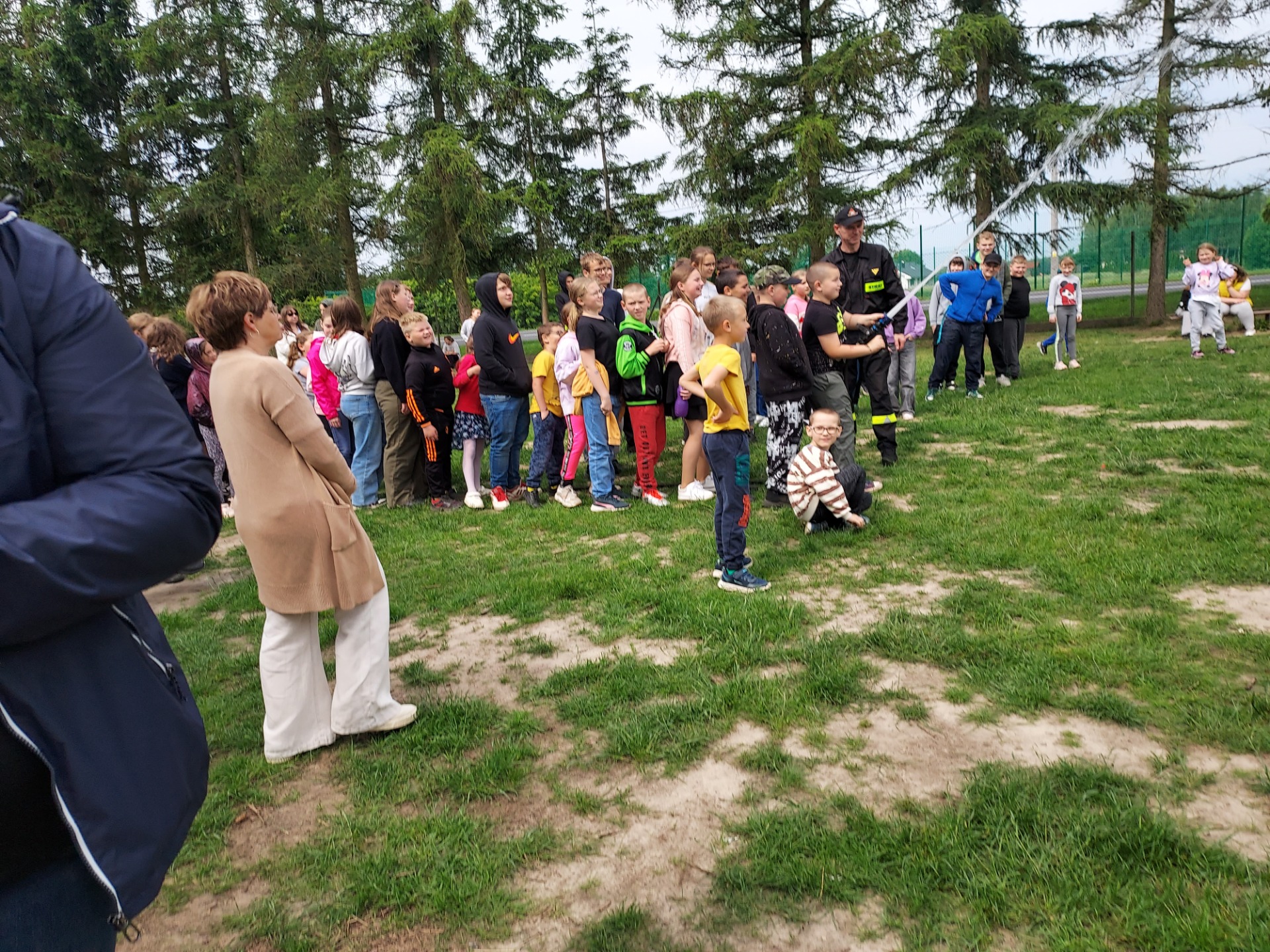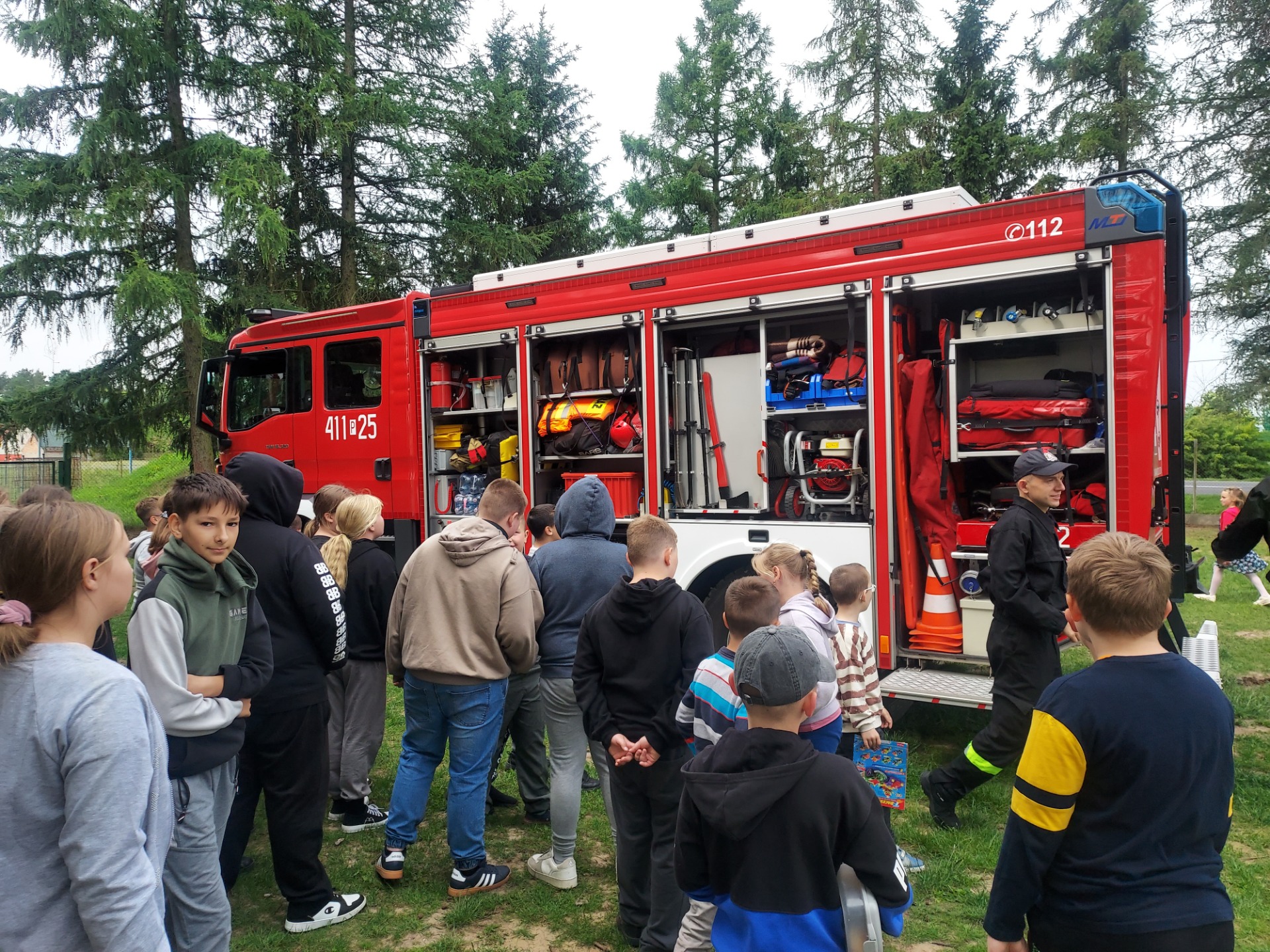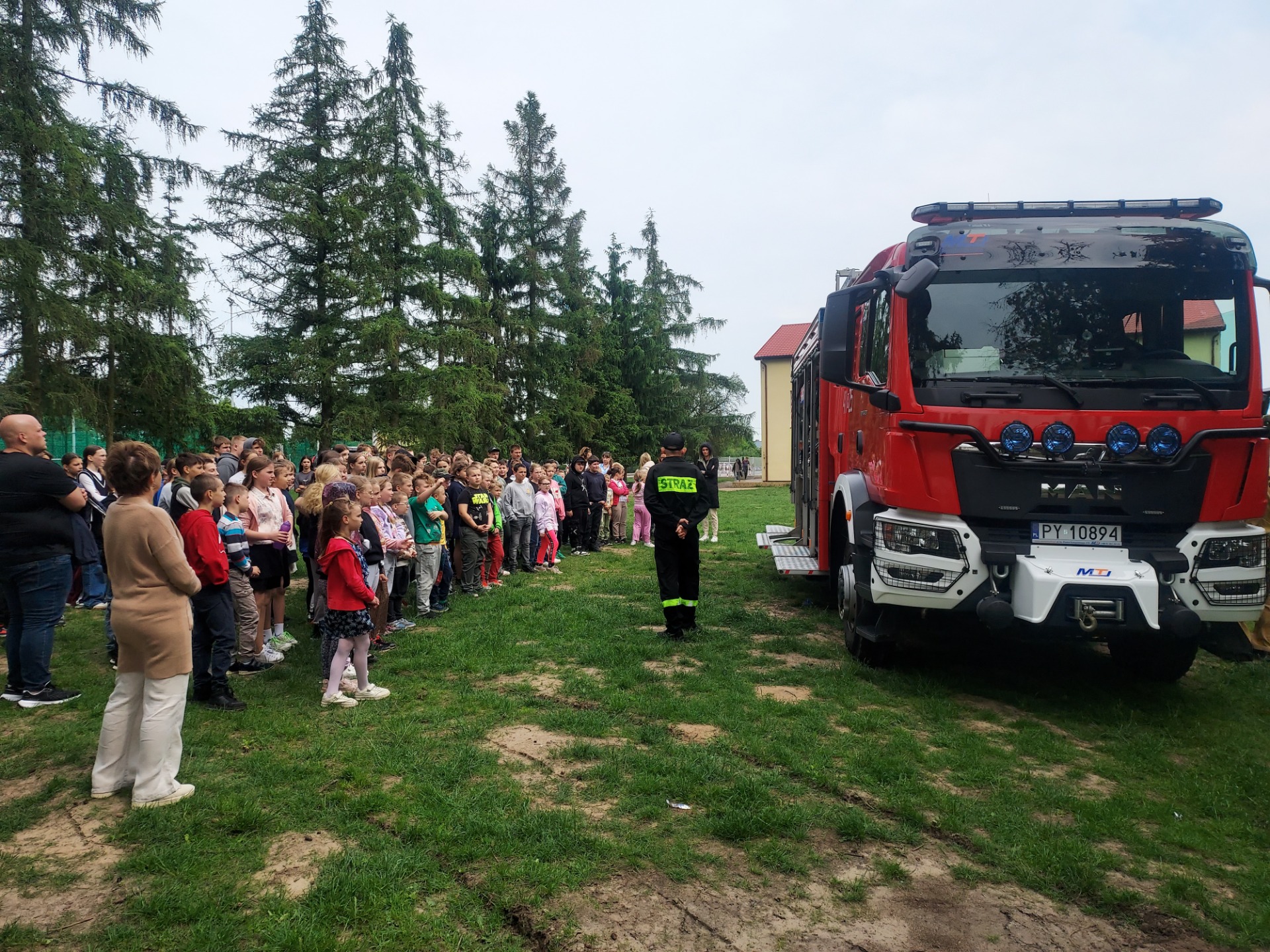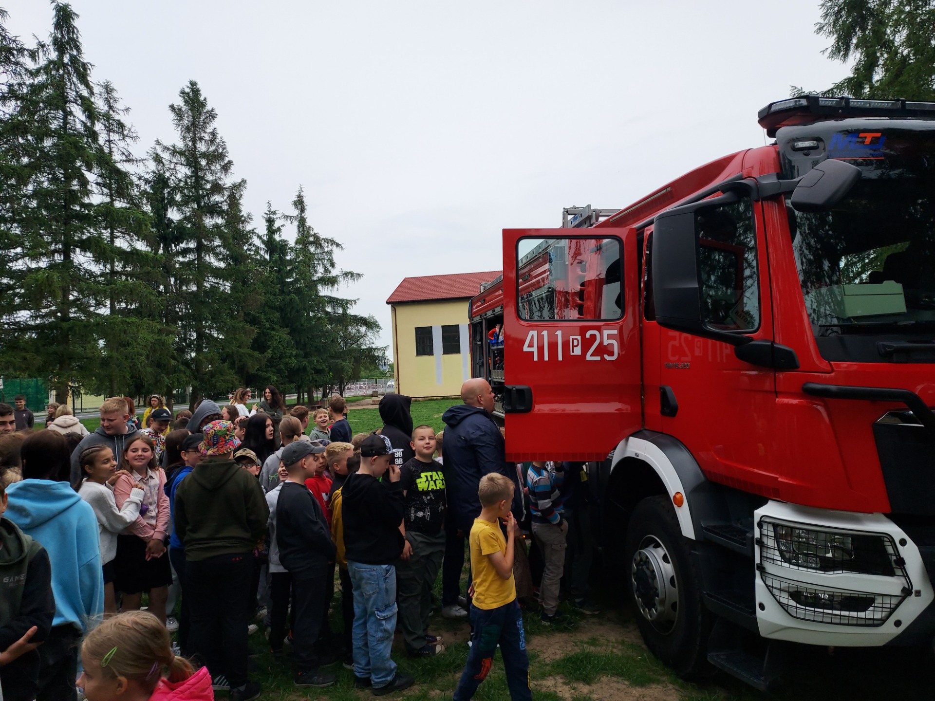 Strażacy zaprezentowali wóz strażacki, omawiając jego budowę oraz funkcje. Uczniowie z dużym zainteresowaniem oglądali specjalistyczny sprzęt ratowniczy i gaśniczy, a także dowiedzieli się, do czego służą poszczególne urządzenia. Jedną z największych atrakcji było zwiedzanie wnętrza wozu strażackiego, co wzbudziło duże emocje wśród dzieci.