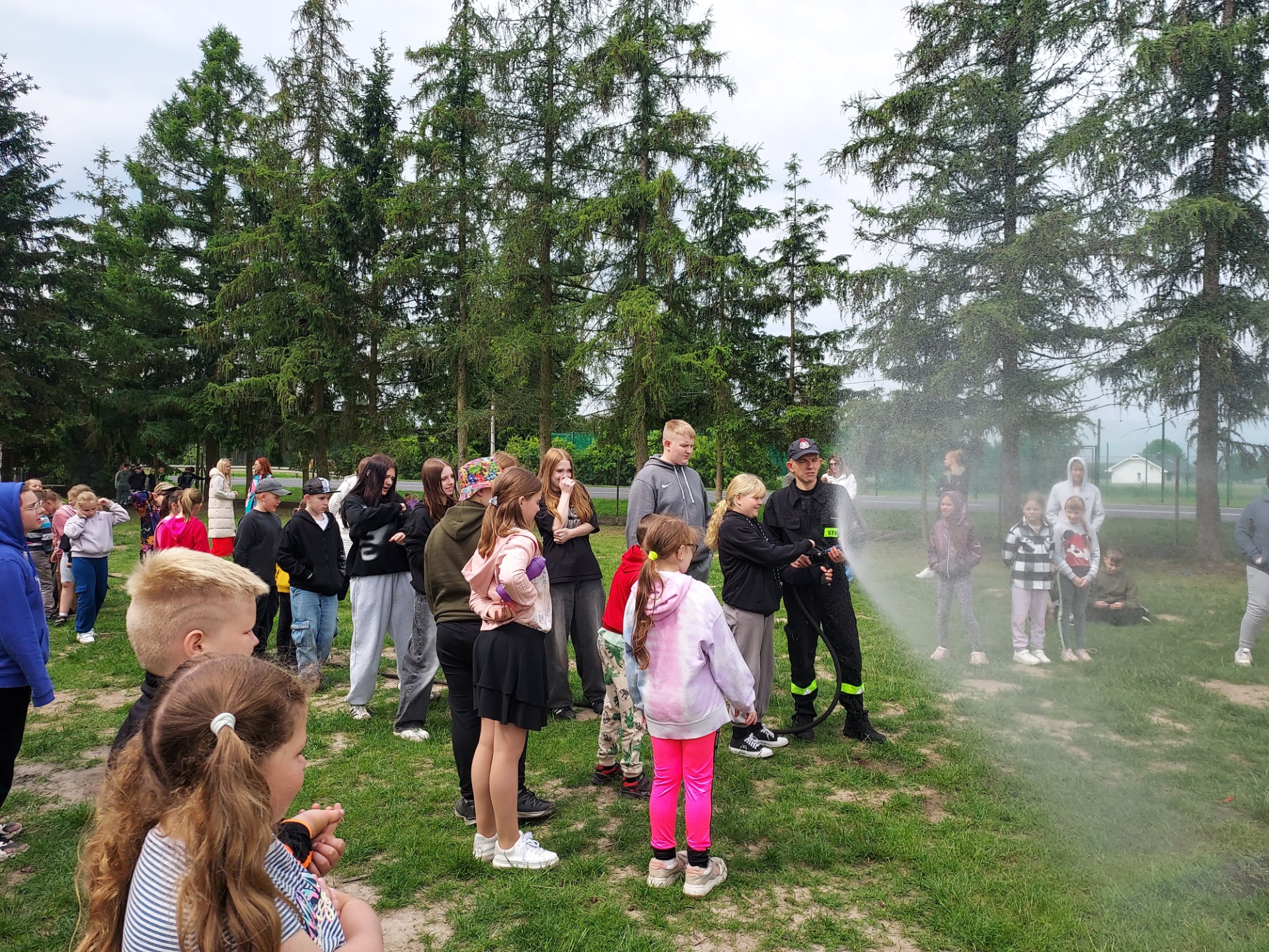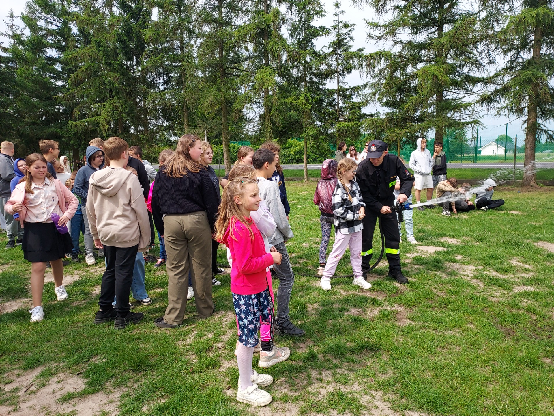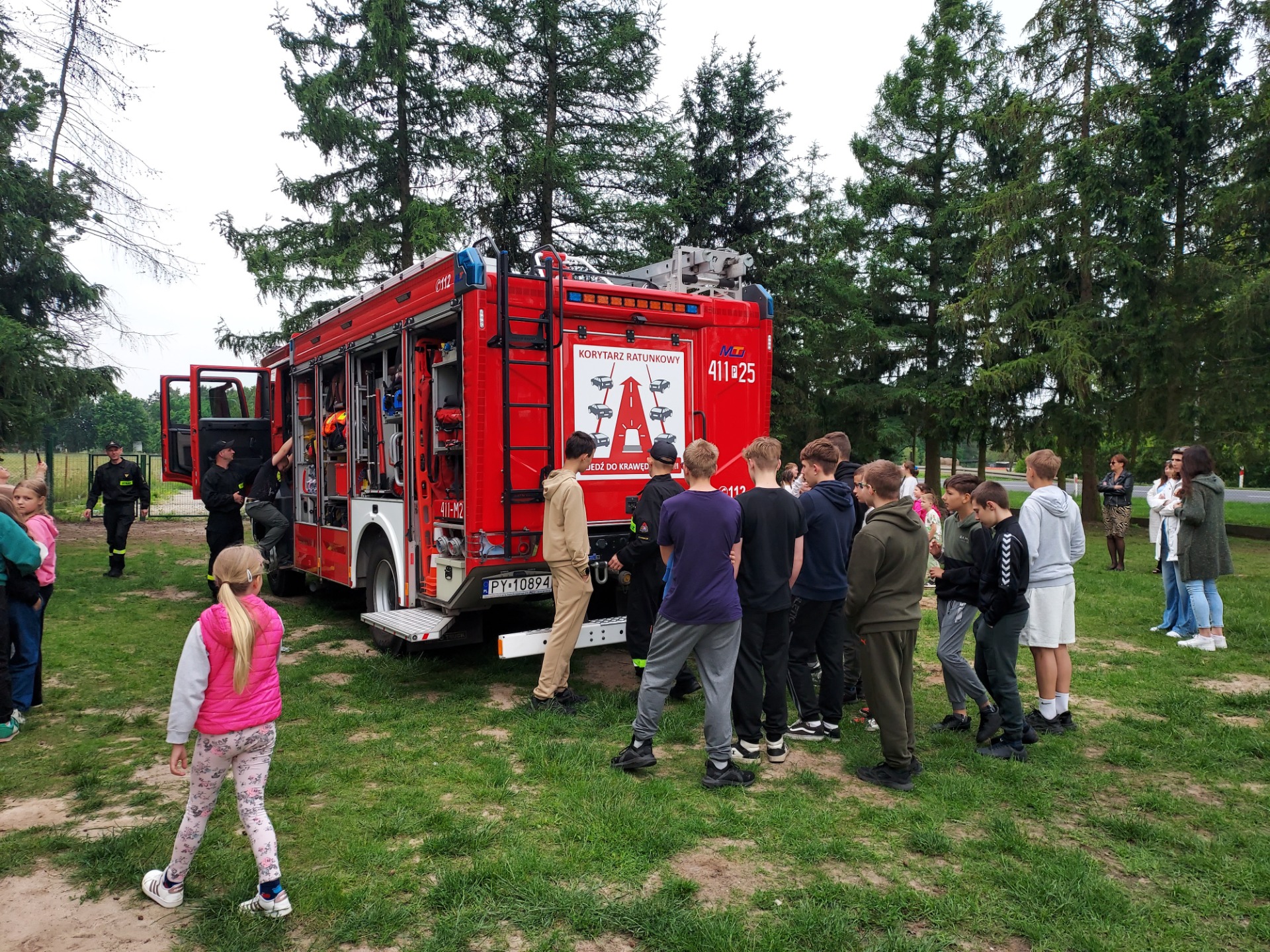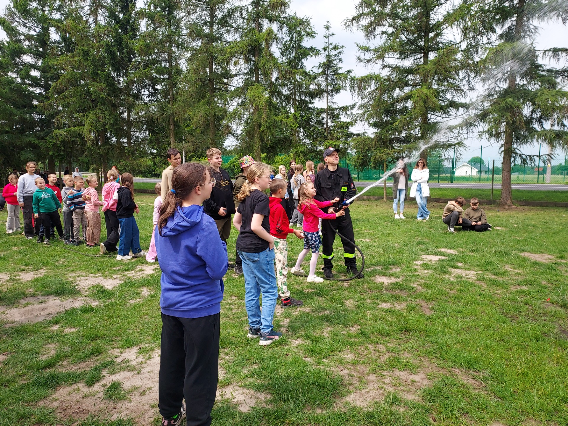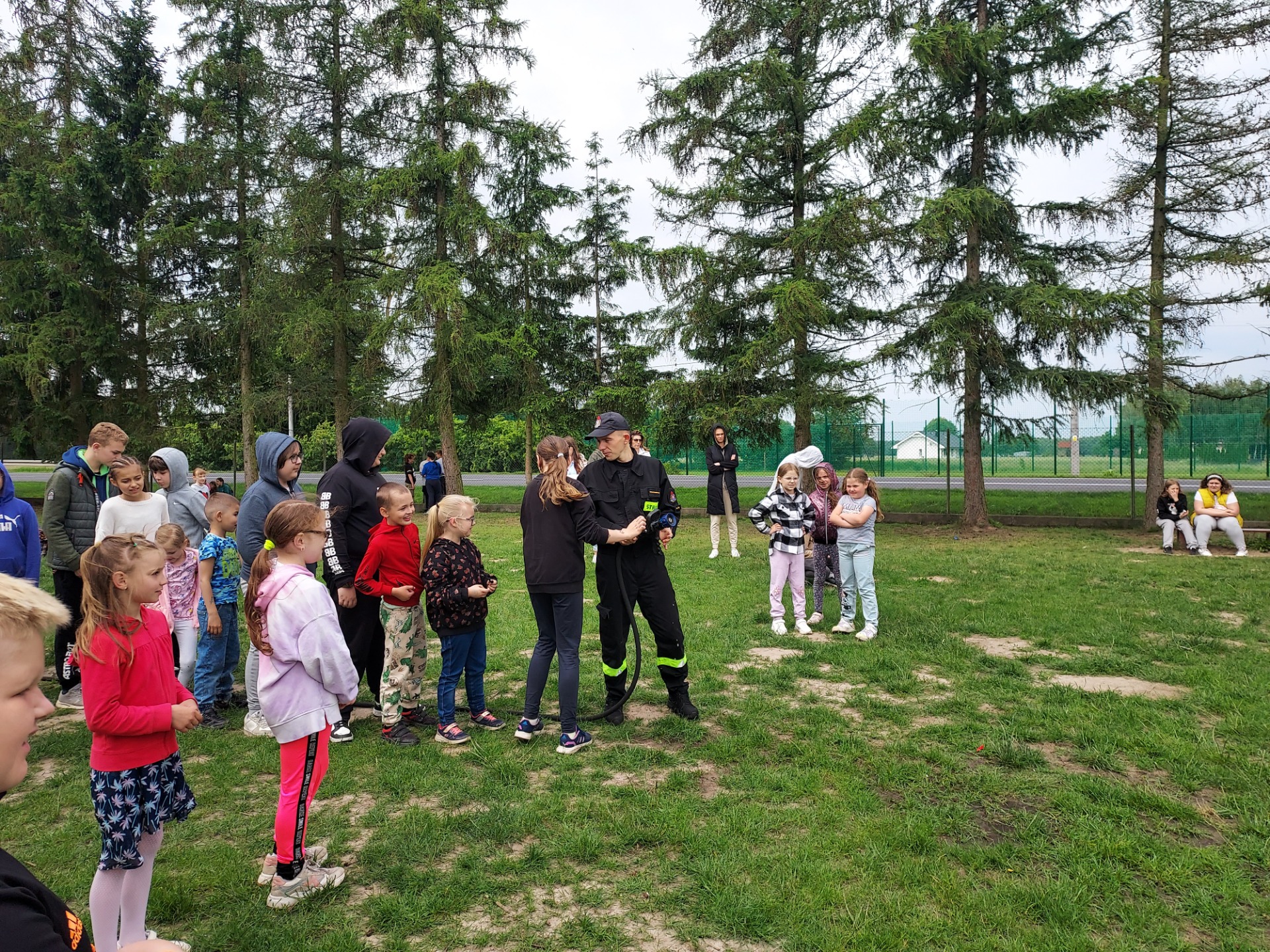 Strażacy zaprezentowali wóz strażacki, omawiając jego budowę oraz funkcje. Uczniowie z dużym zainteresowaniem oglądali specjalistyczny sprzęt ratowniczy i gaśniczy, a także dowiedzieli się, do czego służą poszczególne urządzenia. Jedną z największych atrakcji było zwiedzanie wnętrza wozu strażackiego, co wzbudziło duże emocje wśród dzieci.