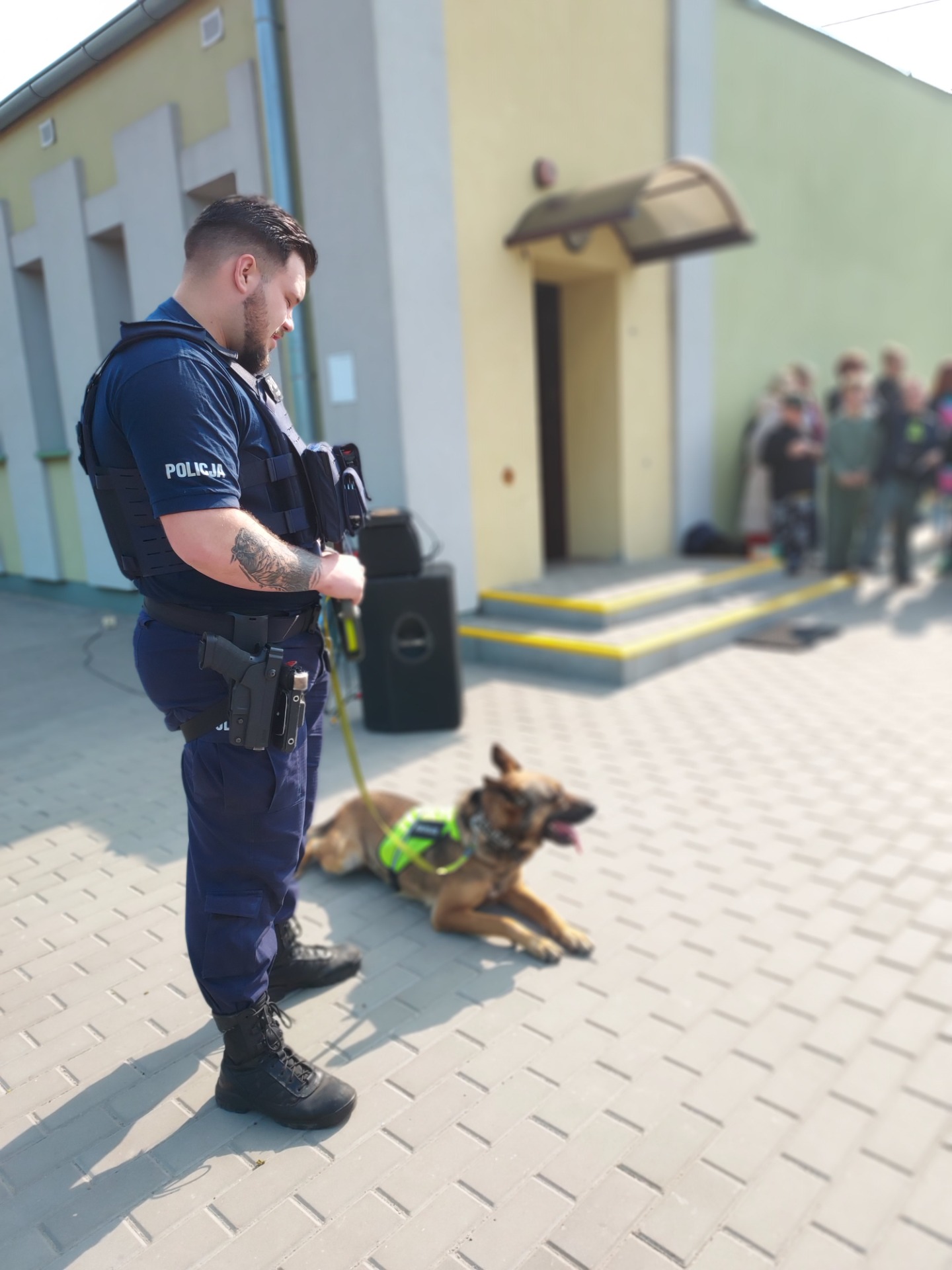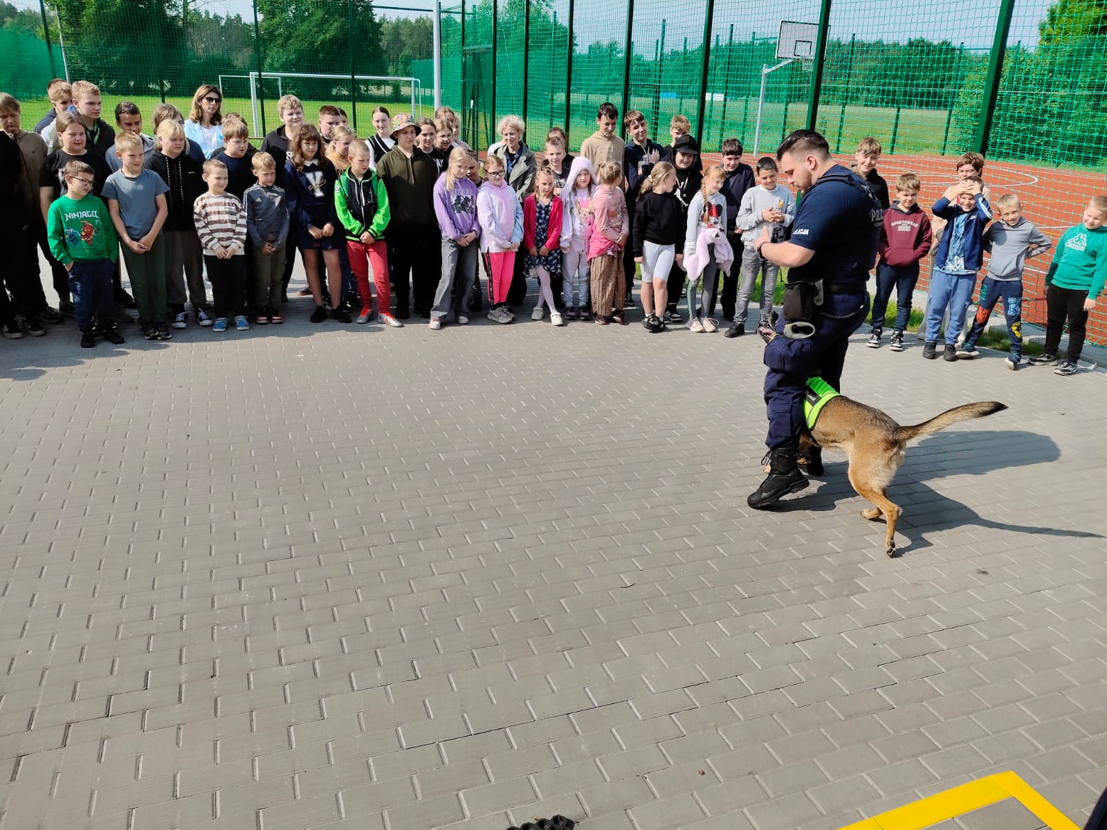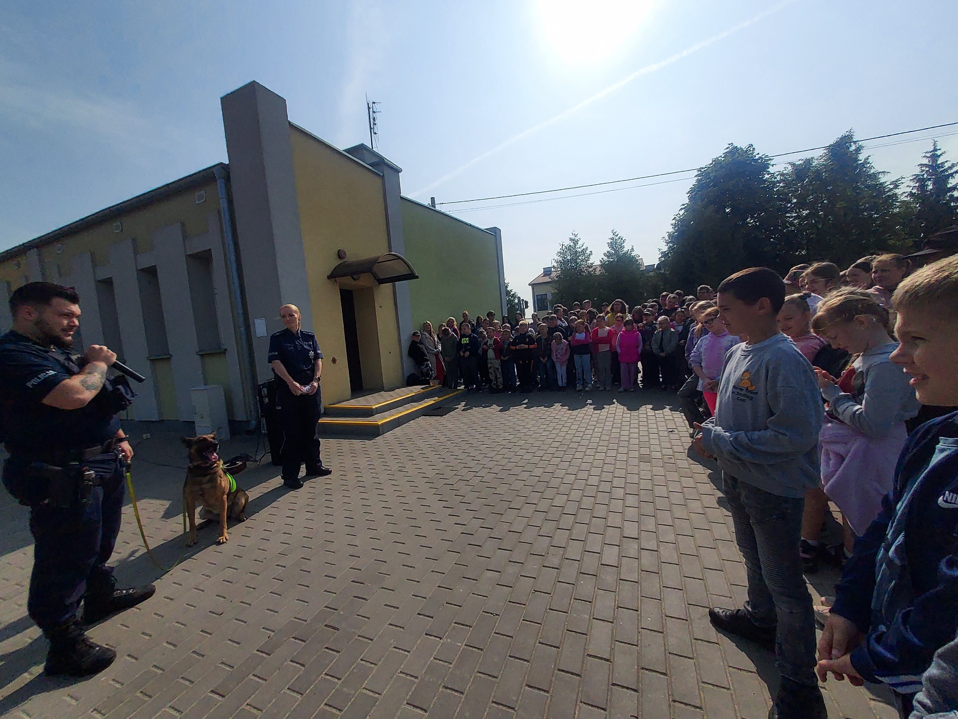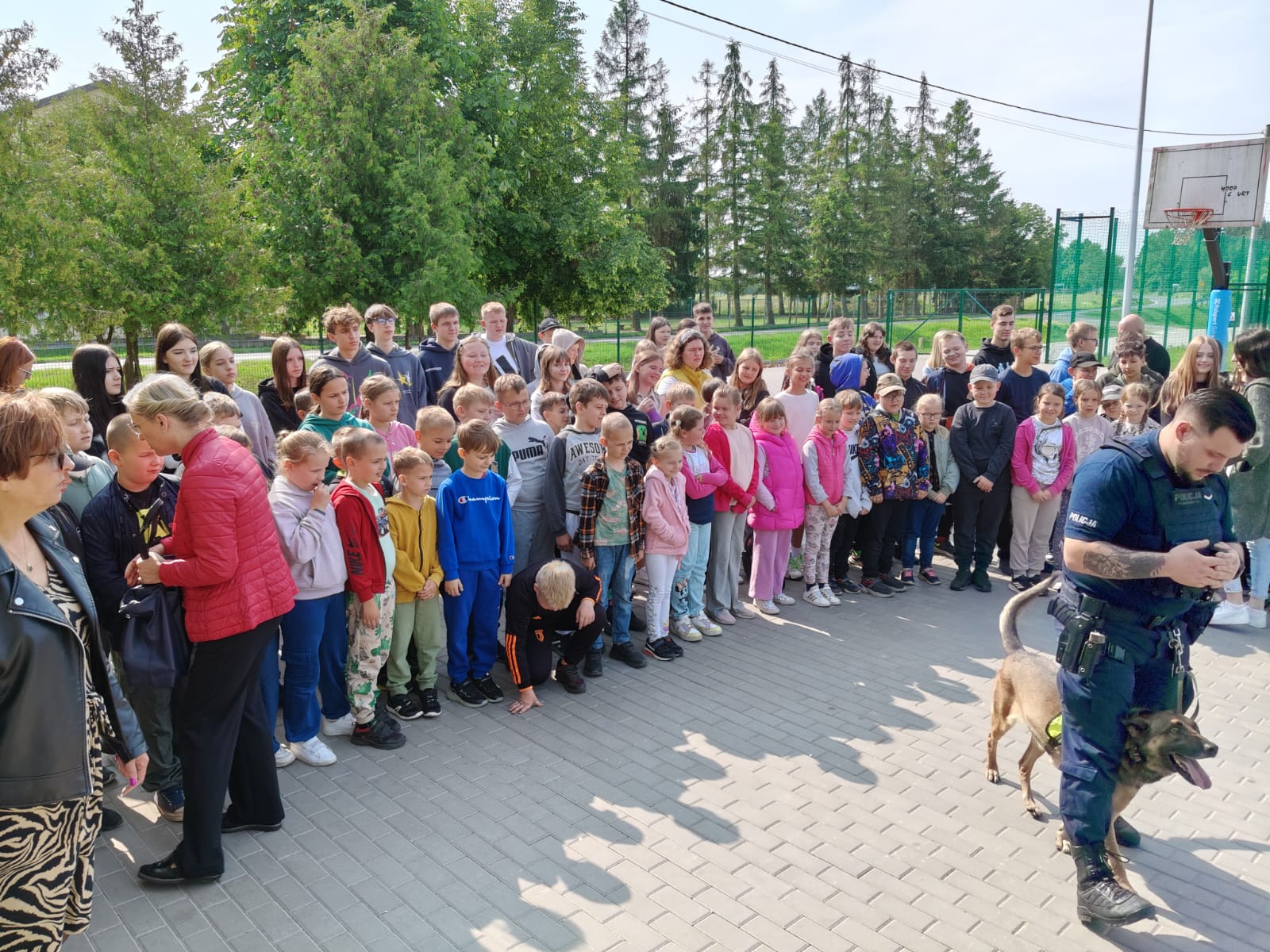 Podczas pogadanki uczniowie aktywnie uczestniczyli w zajęciach – losowali pytania związane z bezpieczeństwem i wspólnie udzielali odpowiedzi pod czujnym okiem funkcjonariuszy. Największą atrakcją spotkania był jednak policjant z psem służbowym. Uczniowie z ogromnym zainteresowaniem wysłuchali opowieści o pracy psa policyjnego o imieniu Cina.