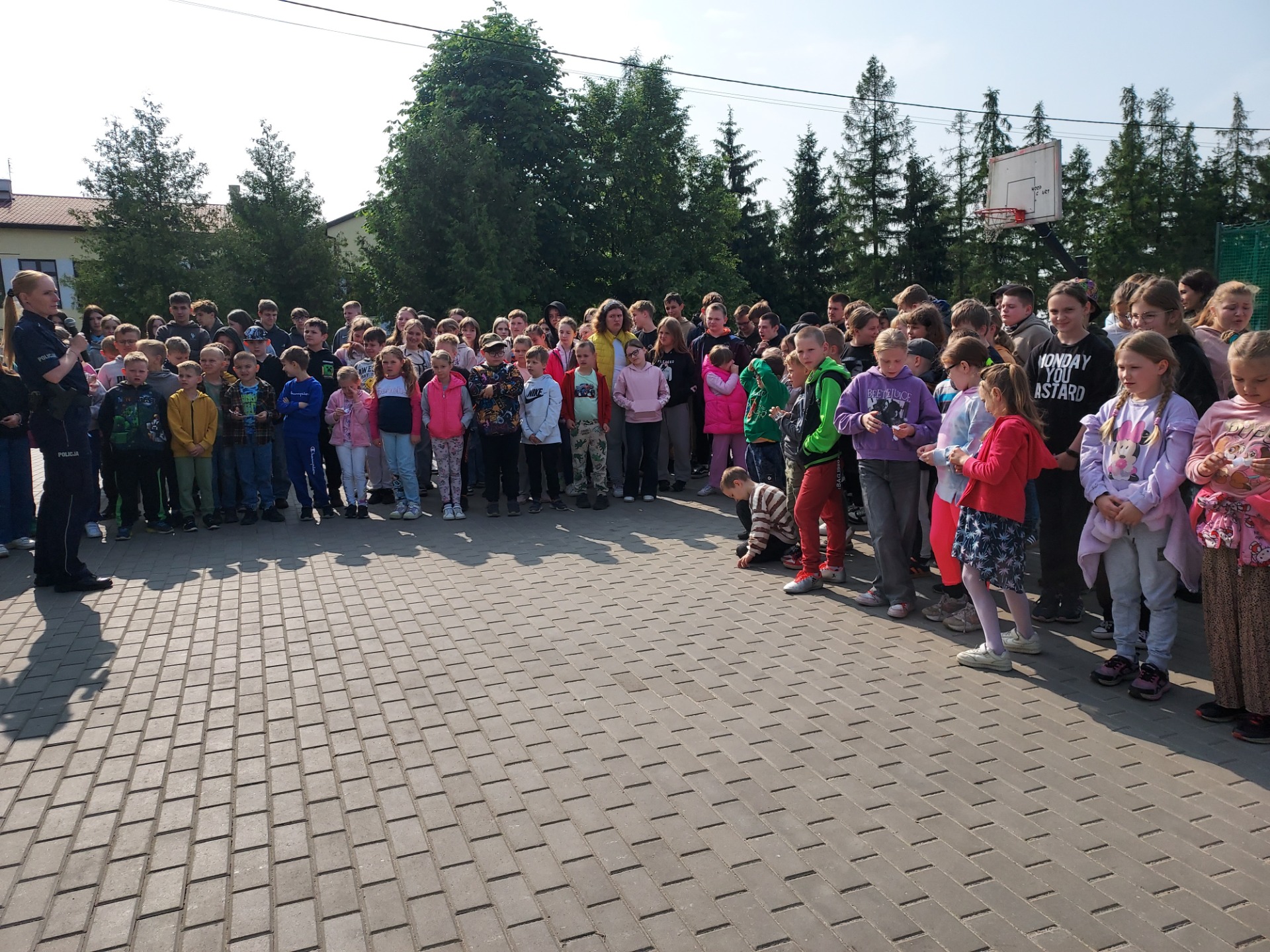 Dnia 10 czerwca naszą szkołę odwiedzili funkcjonariusze Policji w ramach spotkania edukacyjnego na temat bezpieczeństwa. Celem wizyty było uświadomienie uczniom, jak ważne jest przestrzeganie zasad bezpieczeństwa zarówno w szkole, jak i poza nią.