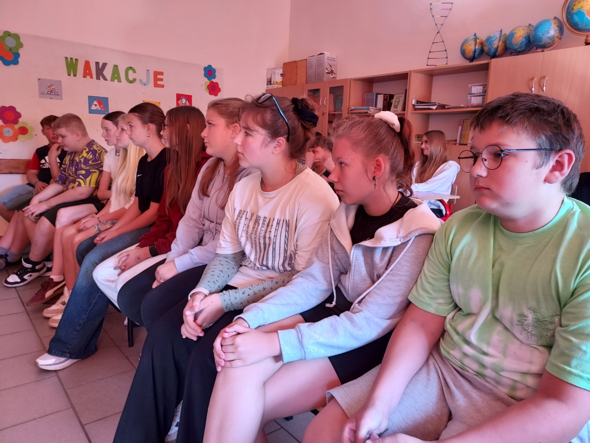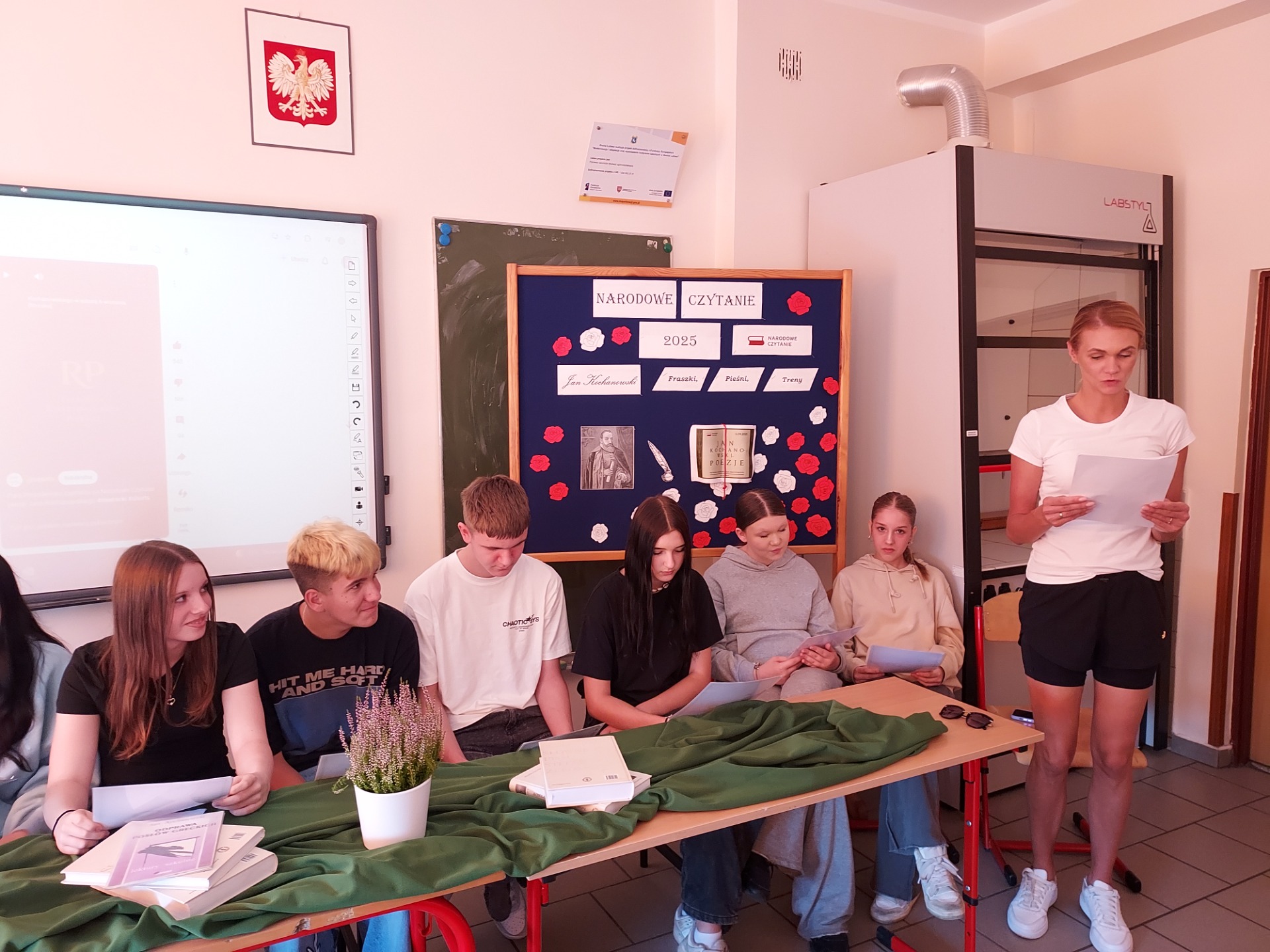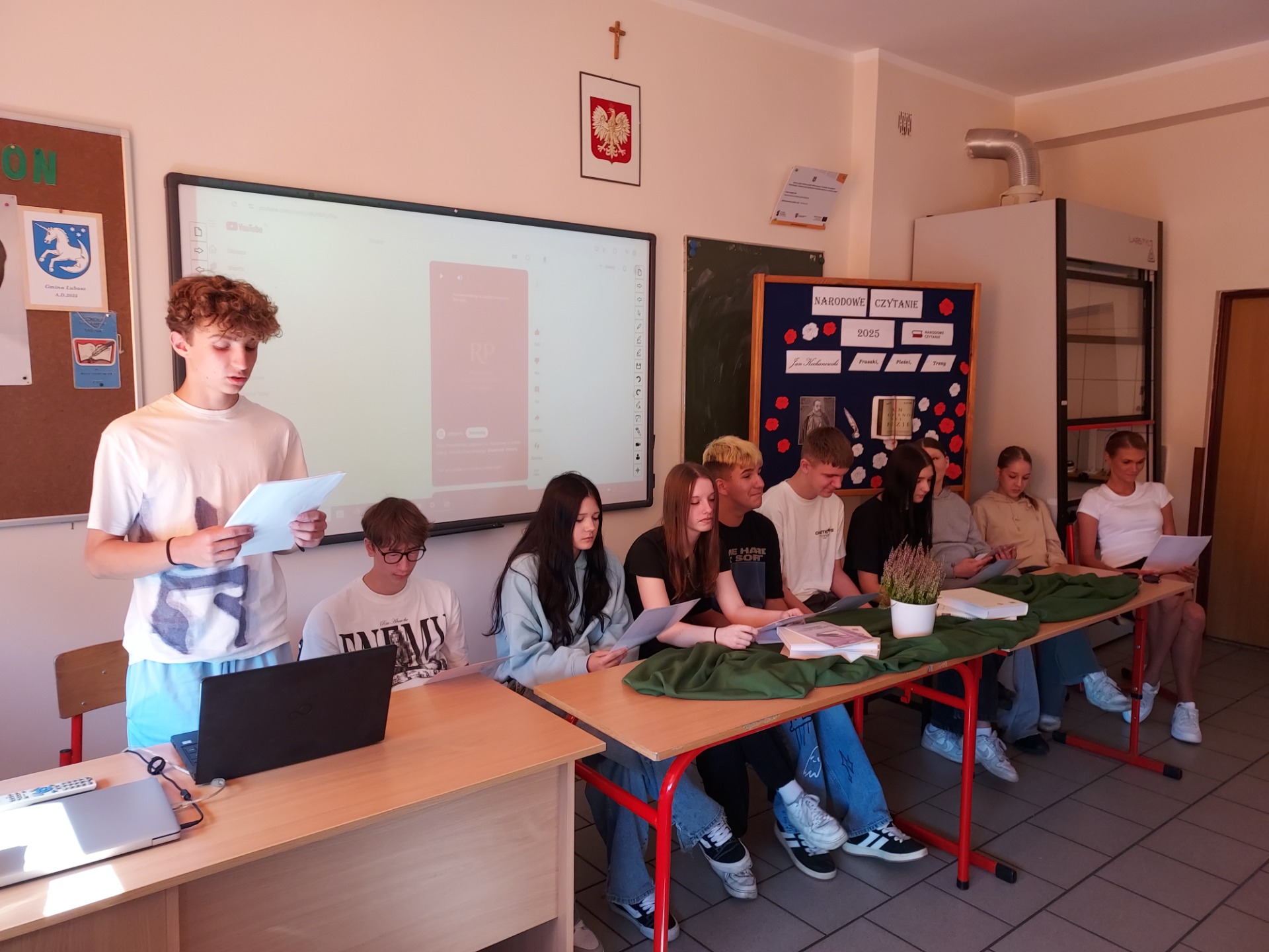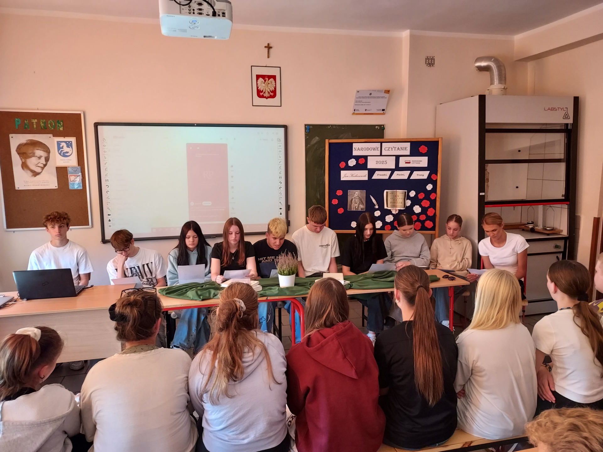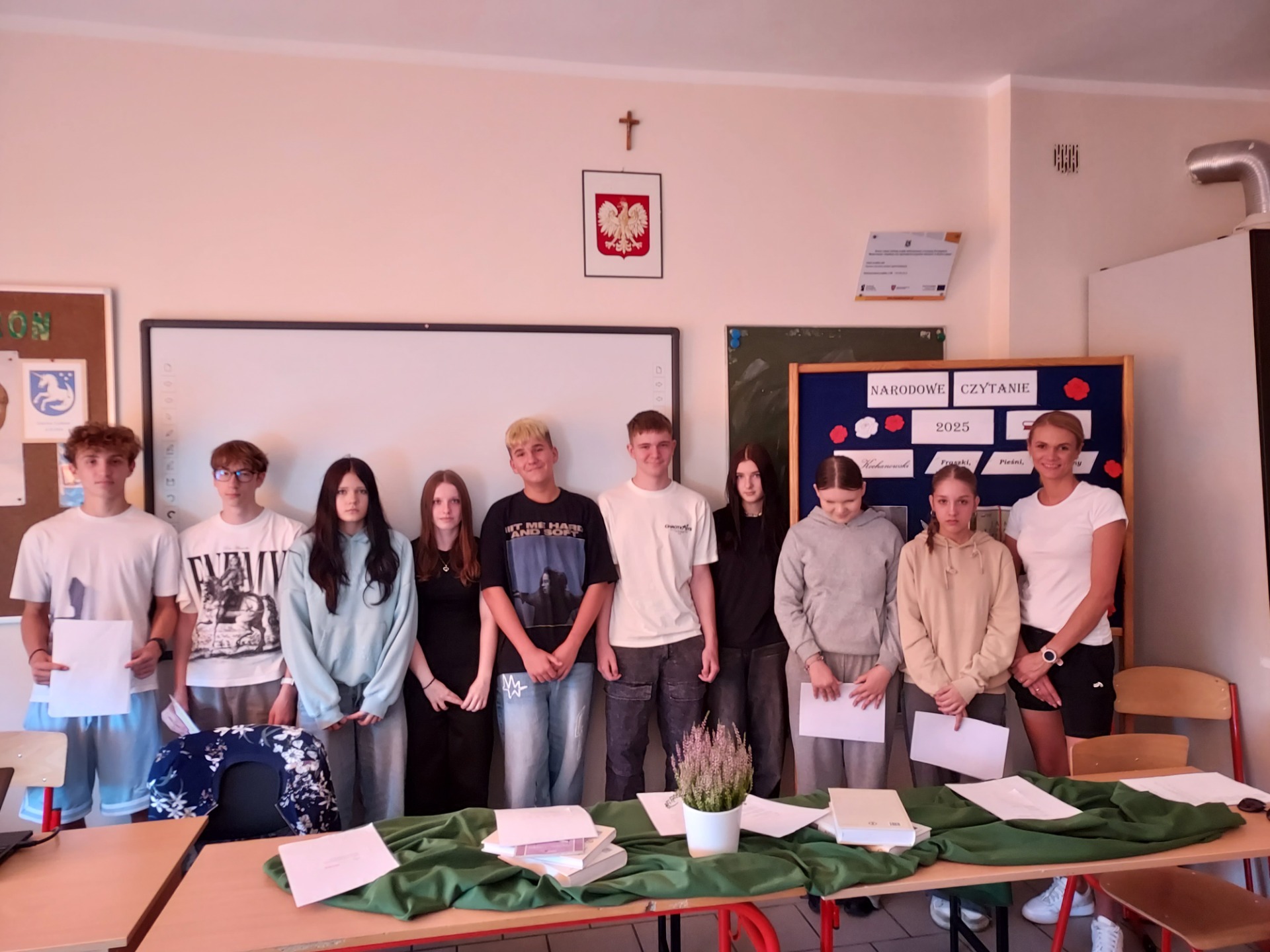 Uczniowie klasy VIII wspólnie z panią Mileną Skorupińską aktywnie włączyli się w obchody Narodowego Czytania poezji Jana Kochanowskiego. Wydarzenie to stało się okazją do spotkania z literaturą i pogłębienia wiedzy o twórczości jednego z najwybitniejszych poetów polskiego renesansu. Podczas tegorocznej akcji uczestnicy zaprezentowali uczniom klasy VII wybrane utwory Jana Kochanowskiego, m.in. fragmenty fraszek, trenów i pieśni. Ich recytacje zostały przygotowane z dużym zaangażowaniem i starannością, co podkreślało nie tylko walory artystyczne tekstów, ale również ich ponadczasowe przesłanie. Udział w wydarzeniu był nie tylko formą uczczenia dorobku Jana Kochanowskiego, lecz także świadectwem, że młodzież chętnie angażuje się w inicjatywy promujące literaturę i tradycję narodową.