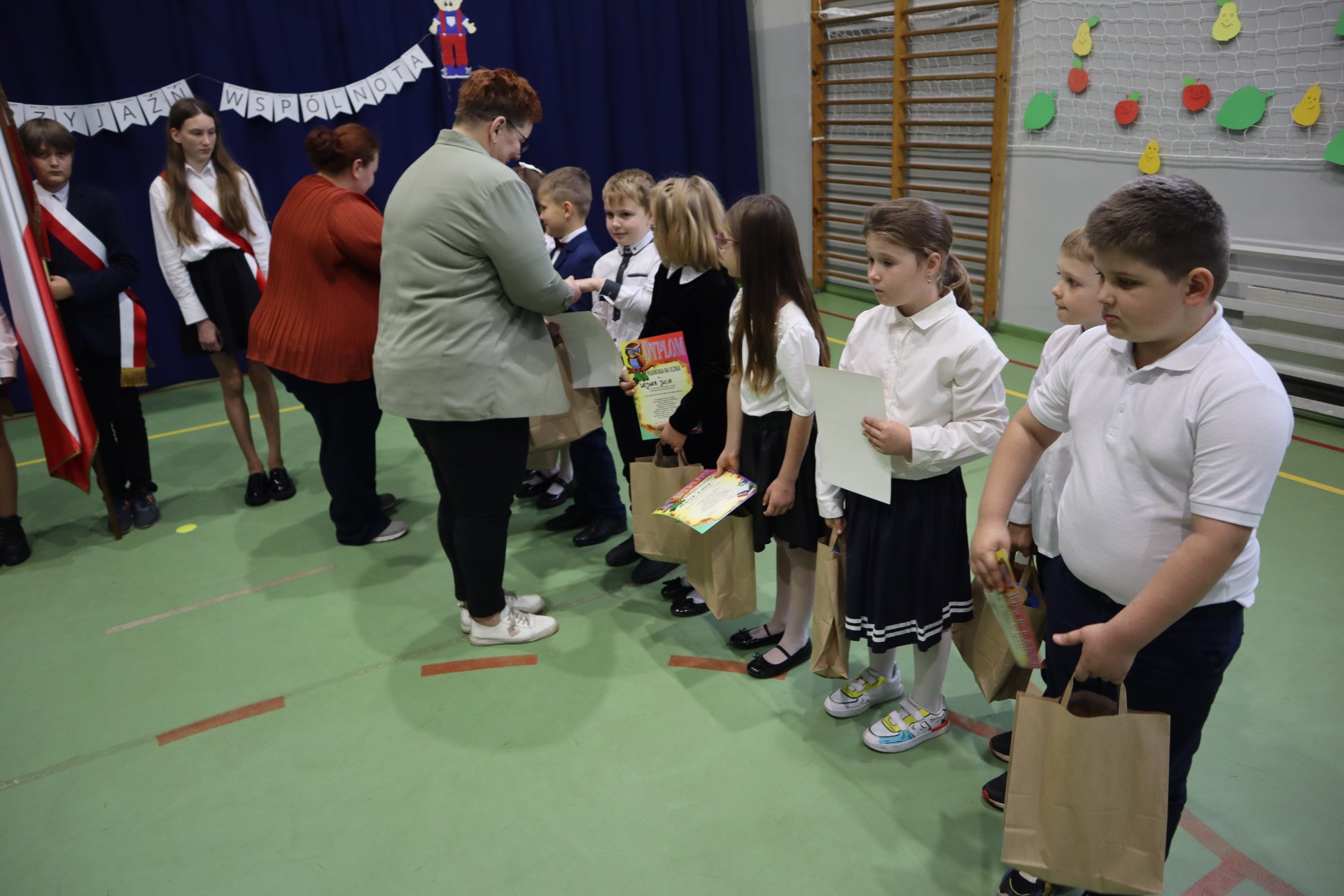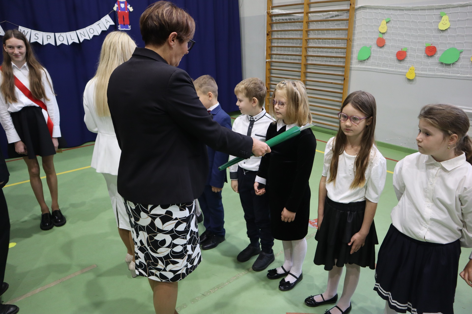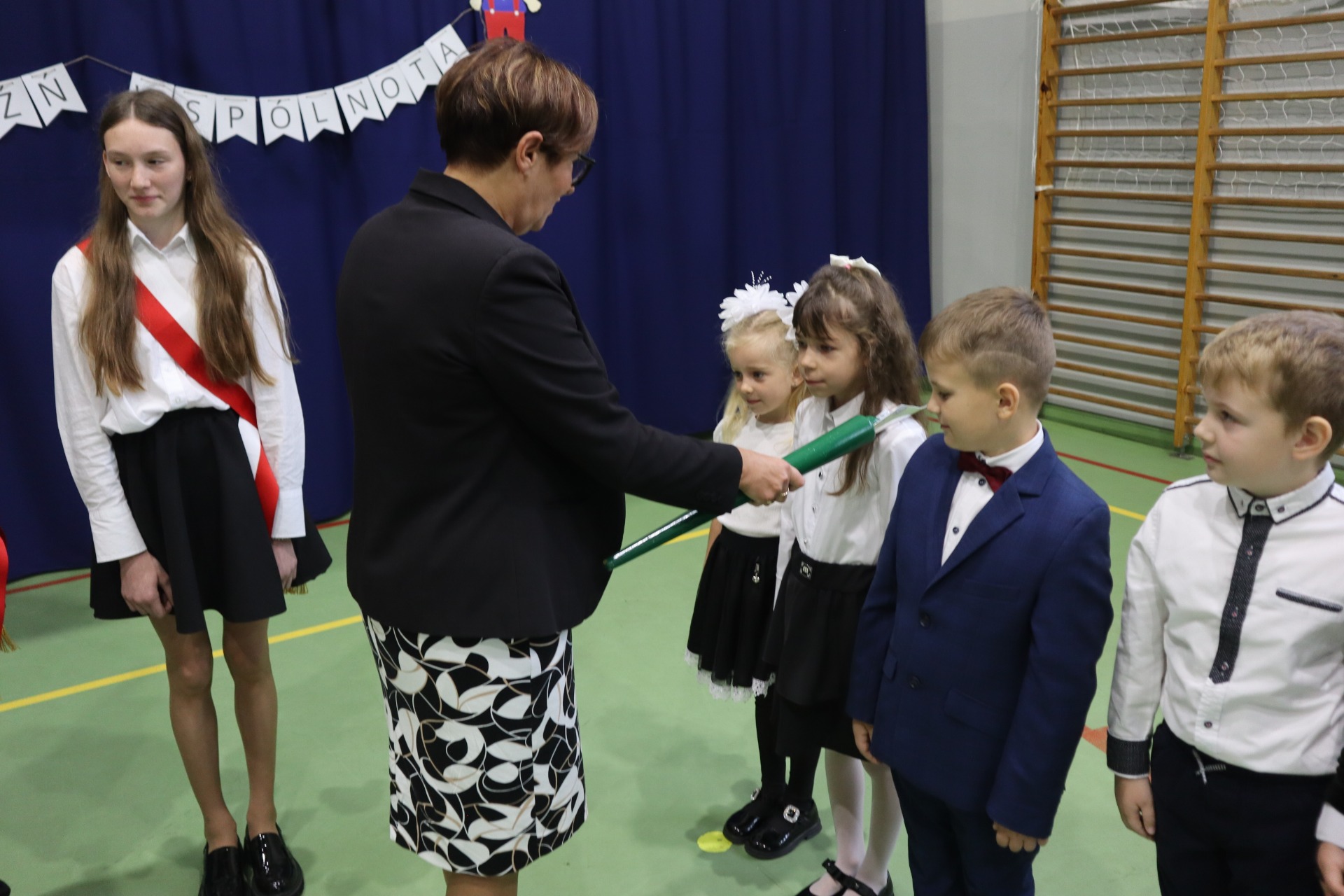 6 października 2025 roku odbyło się uroczyste Święto Szkoły. Był to wyjątkowy dzień, wypełniony radością, wzruszeniem i poczuciem wspólnoty. Uroczystość rozpoczęła Pani Dyrektor Jolanta Zmyślona, która serdecznie przywitała Wójta gminy Lubasz – Pana Marcina Filodę, Dyrektora Gminnego Ośrodka Kultury w Lubaszu – Pana Szymona Szweda, Radnych gminy Lubasz, sołtysów wsi, członków Rady Rodziców, emerytowanych pracowników szkoły, nauczycieli, uczniów oraz rodziców. Najważniejszym momentem części oficjalnej było ślubowanie i pasowanie uczniów klasy pierwszej, którzy zostali przyjęci do grona społeczności szkolnej. Pierwszoklasiści otrzymali pamiątkowe dyplomy oraz upominki rzeczowe. W drugiej części uroczystości zaprezentowano efekty działań projektowych przygotowanych przez poszczególne klasy. Myślą przewodnią tegorocznego święta były słowa: „Uczmy się dostrzegać wartość w pracy, przyjaźni i wspólnocie.” Uczniowie w ramach wspólnych projektów klasowych zdobywali nową wiedzę, uczyli się współpracy, a całej pracy towarzyszyła atmosfera przyjaźni i zaangażowania. Powstało wiele ciekawych dzieł plastycznych inspirowanych postacią Marii Dąbrowskiej. W tym roku szczególnie podkreślono także rozwój infrastruktury szkoły – piękne boiska i tereny zielone są dowodem nowoczesnego charakteru naszej placówki.
