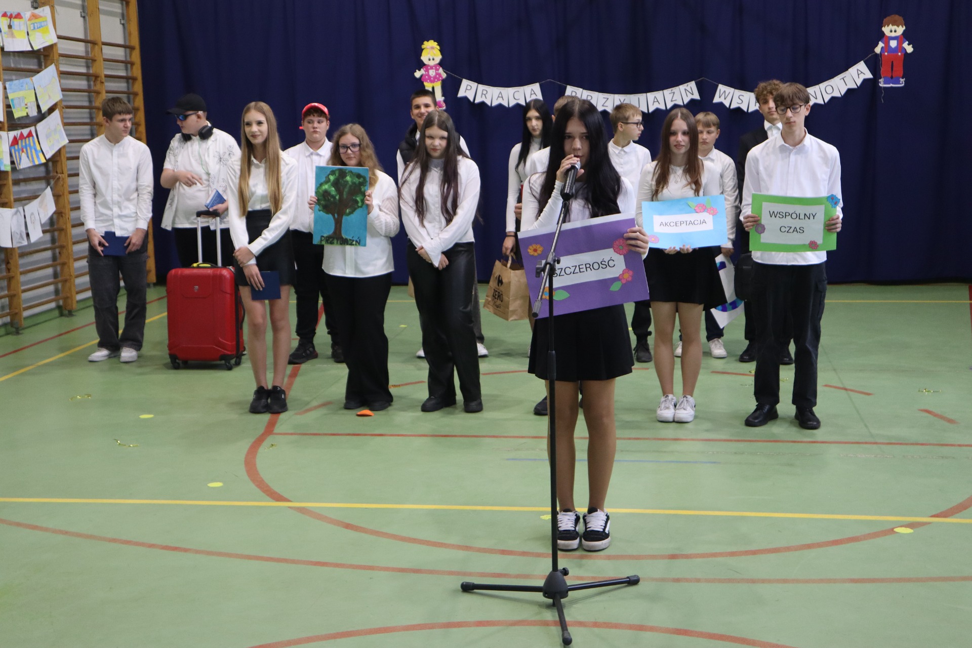 Podczas drugiej części uroczystości, klasa VII zaprezentowała program pt.: „Pociąg wiedzy o Marii Dąbrowskiej”. Klasa II zaśpiewała piosenkę o przyjaźni, przypominając, jak ważne jest mieć kogoś bliskiego. Klasa V zaprezentowała pokaz ruchowy – pełen rytmu, energii i uśmiechu. Klasa III przedstawiła muzyczną interpretację promującą zdrowy styl życia. Klasa VI zapoznała zebranych z zawodowymi marzeniami, ukazując bogactwo pasji uczniów. Klasa IV zaprezentowała swoje talenty wokalne, zachwycając publiczność śpiewem. Na zakończenie uczniowie najstarszej klasy wykonali montaż słowny podkreślający, że praca uczy wytrwałości, a przyjaźń daje siłę.