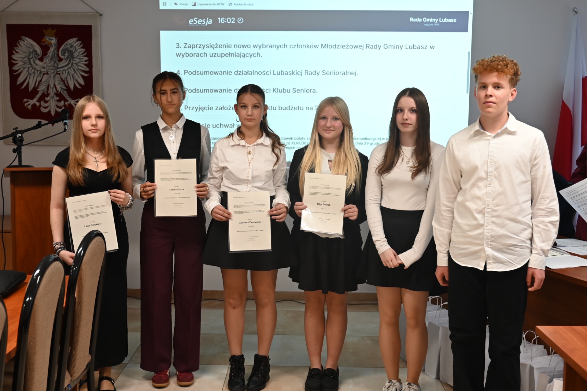 Udział Młodzieżowej Rady Gminy Lubasz w sesji Rady Gminy - Ślubowanie