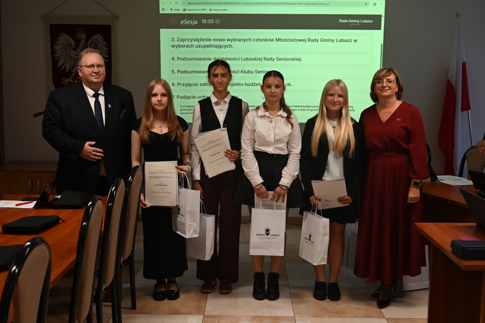 Od czwartku tj. 23 października Młodzieżowa Rada Gminy działa w pełnym składzie. Rada składa się z 11 radnych. Ośmioro to uczniowie Publicznej Szkoły Podstawowej im. ppłk. Z. Orłowskiego w Lubaszu i troje to uczniowie z Publicznej Szkoły Podstawowej im. M. Dąbrowskiej w Miłkowie. Pełen skład został uzupełniony w wyborach uzupełniających 25 września. Nad prawidłowym przebiegiem wyborów czuwała komisja powołana Zarządzeniem Wójta Gminy Lubasz Pana Marcina Filody. W wyniku wyborów do Młodzieżowej Rady Gminy Lubasz zostali wybrani radni: Amelia Gacek i Lena Dmytrasz ze Szkoły Podstawowe w Lubaszu oraz Olga Dłużak i Zuzanna Pawlaczyk ze Szkoły Podstawowej w Miłkowie. Młodzi radni złożyli ślubowanie podczas sesji Rady Gminy. Akty nominacji na radnego MRG wręczyli przewodniczący komisji wyborczych: Wioletta Tworek – przewodnicząca komisji ze Szkoły Podstawowej w Miłkowie i Bruno Oleszczak – przewodniczący ze Szkoły Podstawowej w Lubaszu. Serdecznie gratulujemy nowo wybranym radnym. Życzymy realizacji wielu pomysłów oraz satysfakcji z wykonywanych działań.