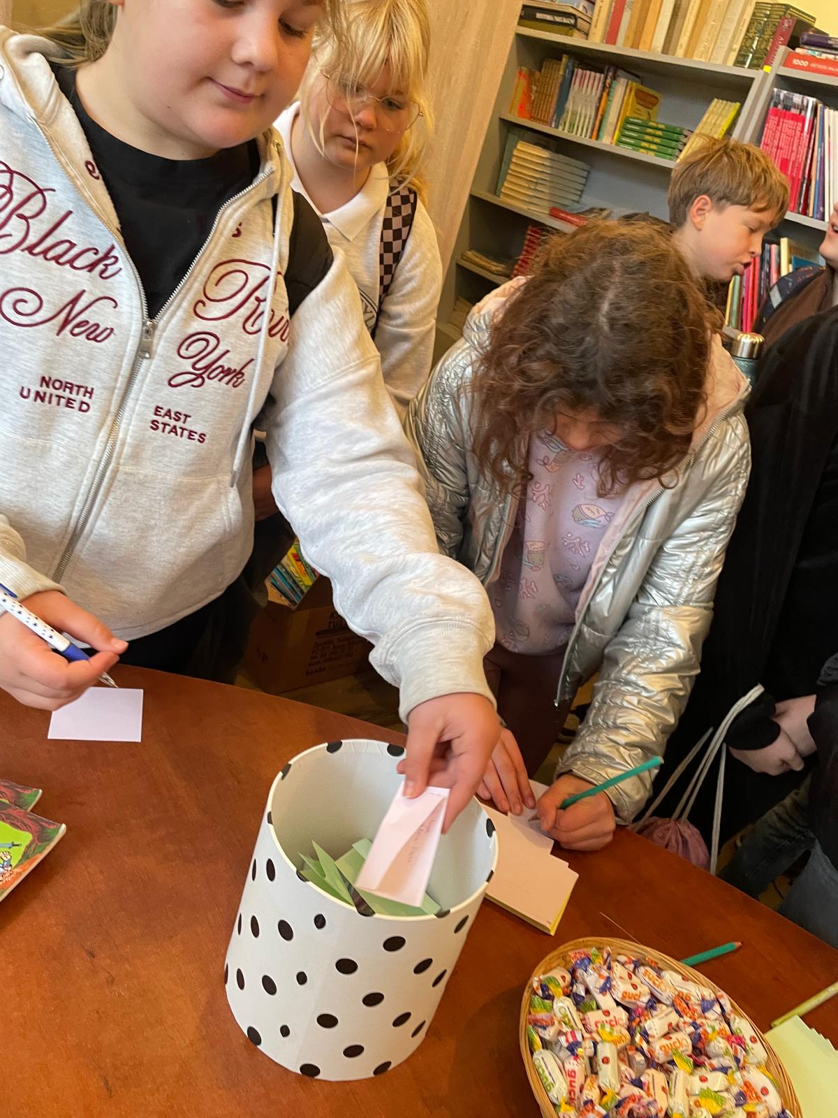W bibliotece szkolnej głosujemy na ulubioną książkę.