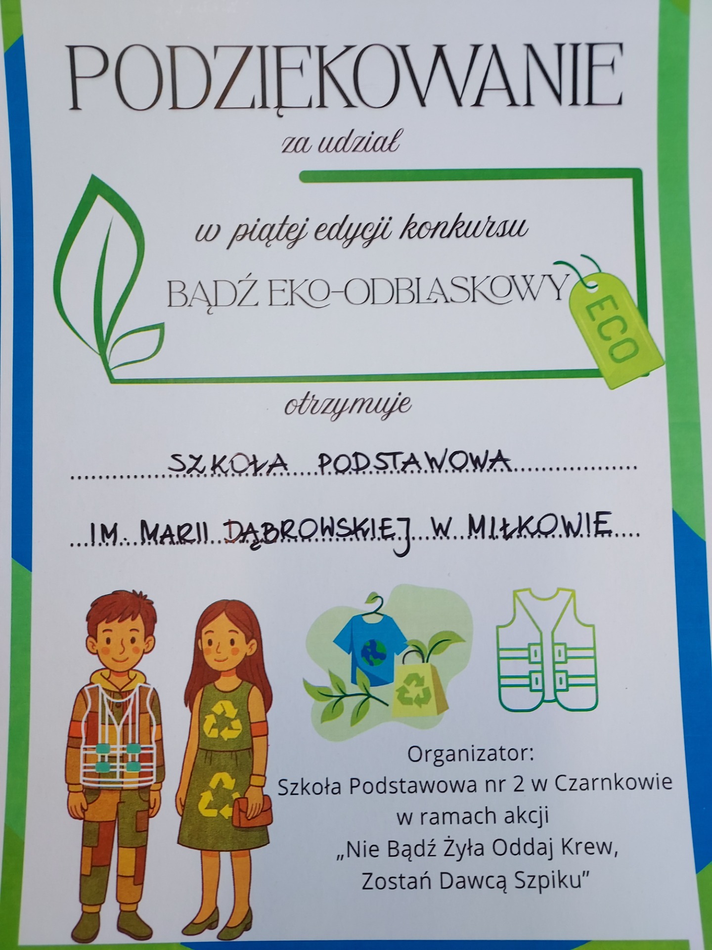 Osiągnięcia uczniów naszej szkoły w V edycji konkursu ,,BĄDŹ EKO-ODBLASKOWY":